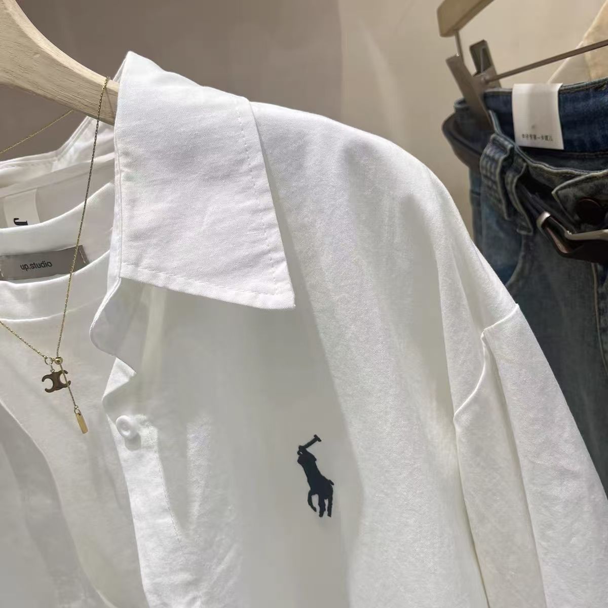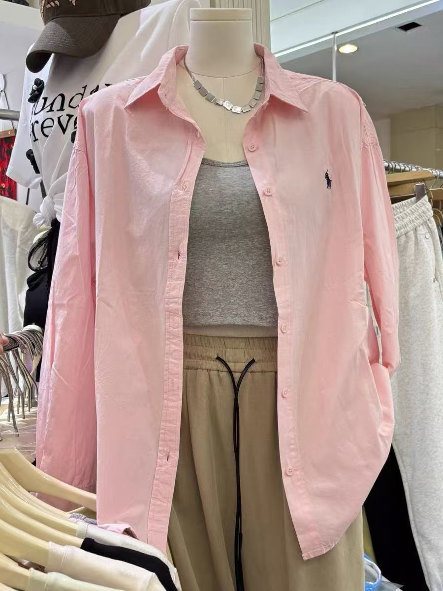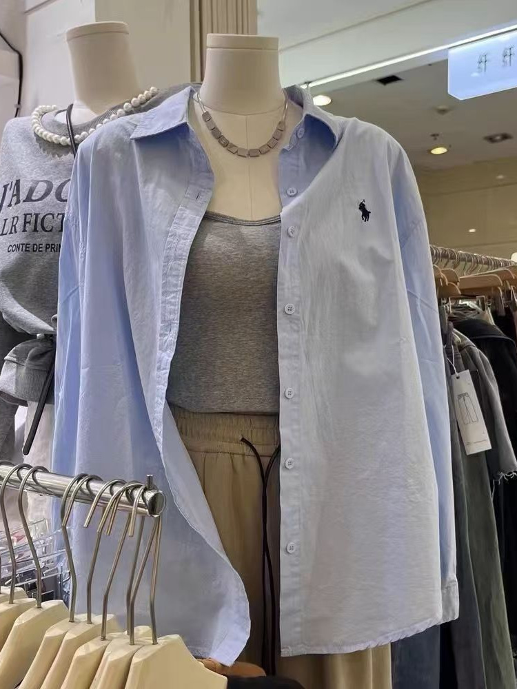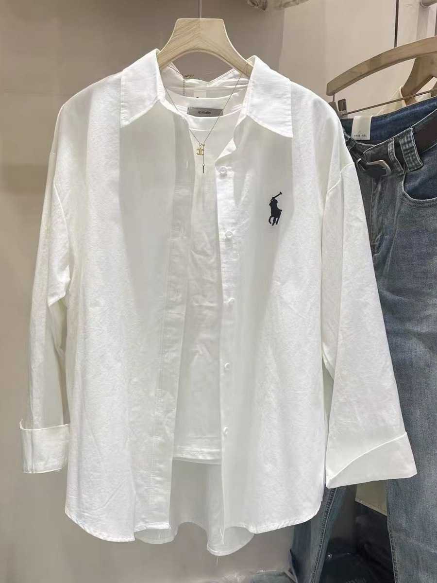 프랑스 스타일 포니 자수 코튼 셔츠 여성의 봄과 여름 스택 디자인 센스 셔츠 여성의 초가을 선 스크린 코트 탑스토어 가기