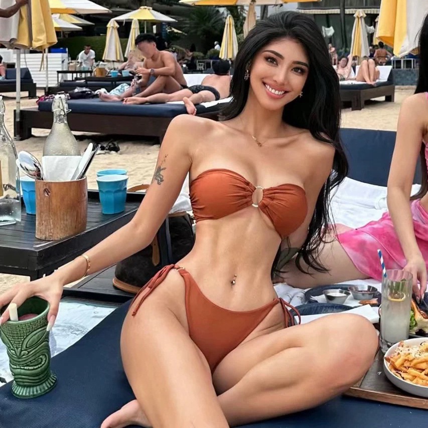 수영복 여성 섹시 스플릿 트라이앵글 비키니 튜브 탑 비치 스트랩 작은 가슴 푸시 업 비치 휴가 온천