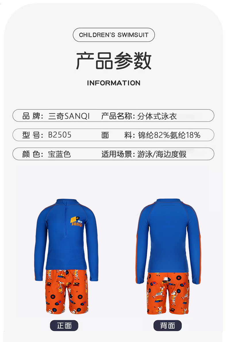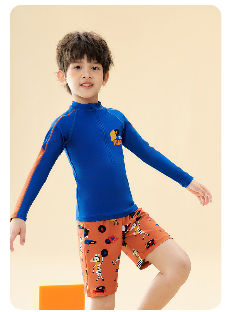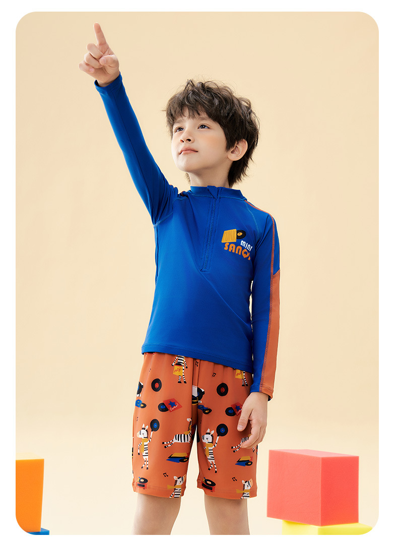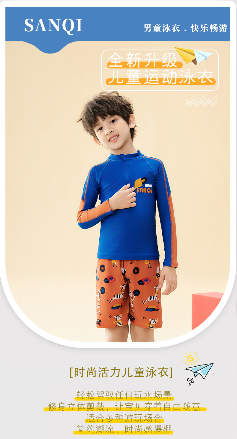 Sanqi 어린이 수영복 소년 2025 새로운 긴팔 자외선 차단제 스플릿 중대형 어린이 수영복 속건성 소년 수영복