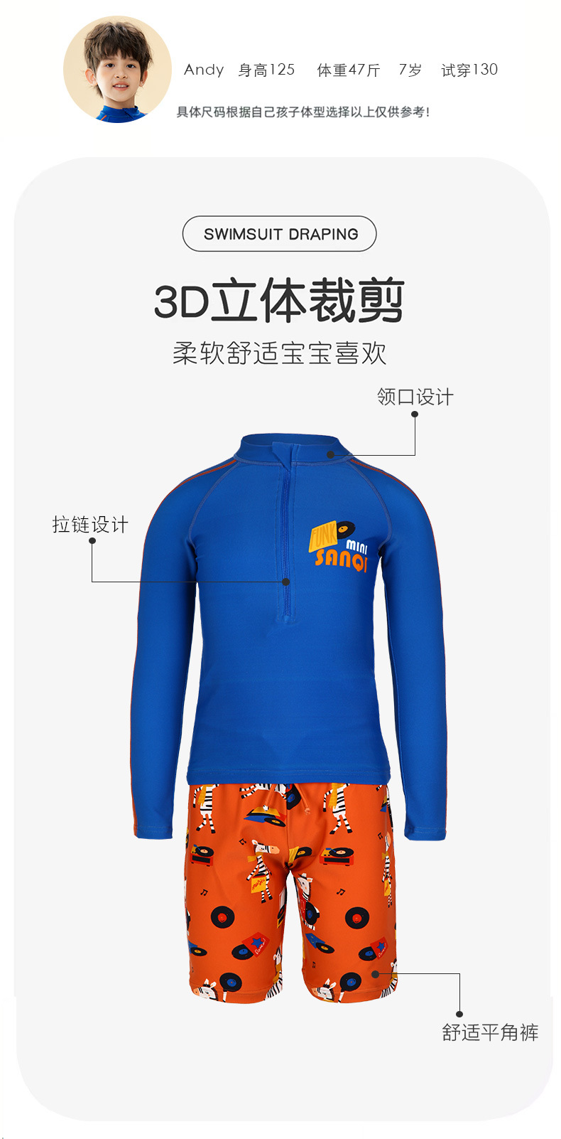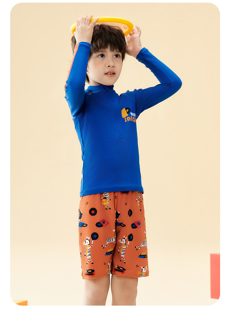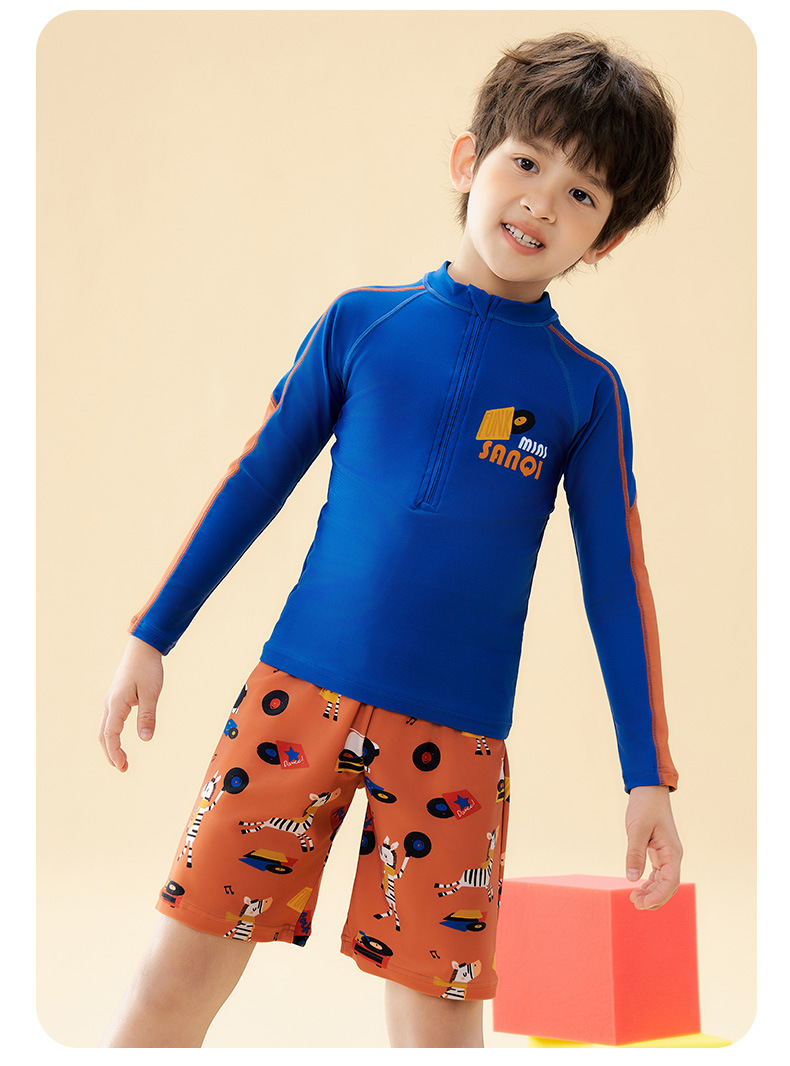 Sanqi 어린이 수영복 소년 2025 새로운 긴팔 자외선 차단제 스플릿 중대형 어린이 수영복 속건성 소년 수영복