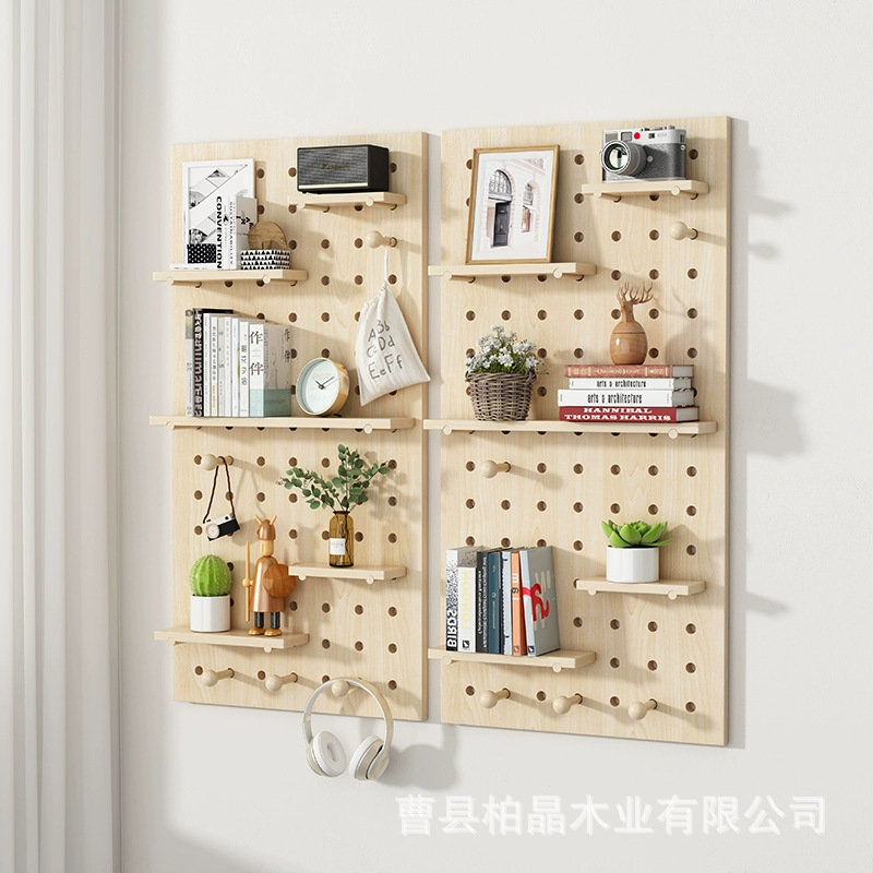 단단한 나무 구멍 보드 벽걸이형 입구 디스플레이 랙 벽걸이형 단단한 나무 보관 랙