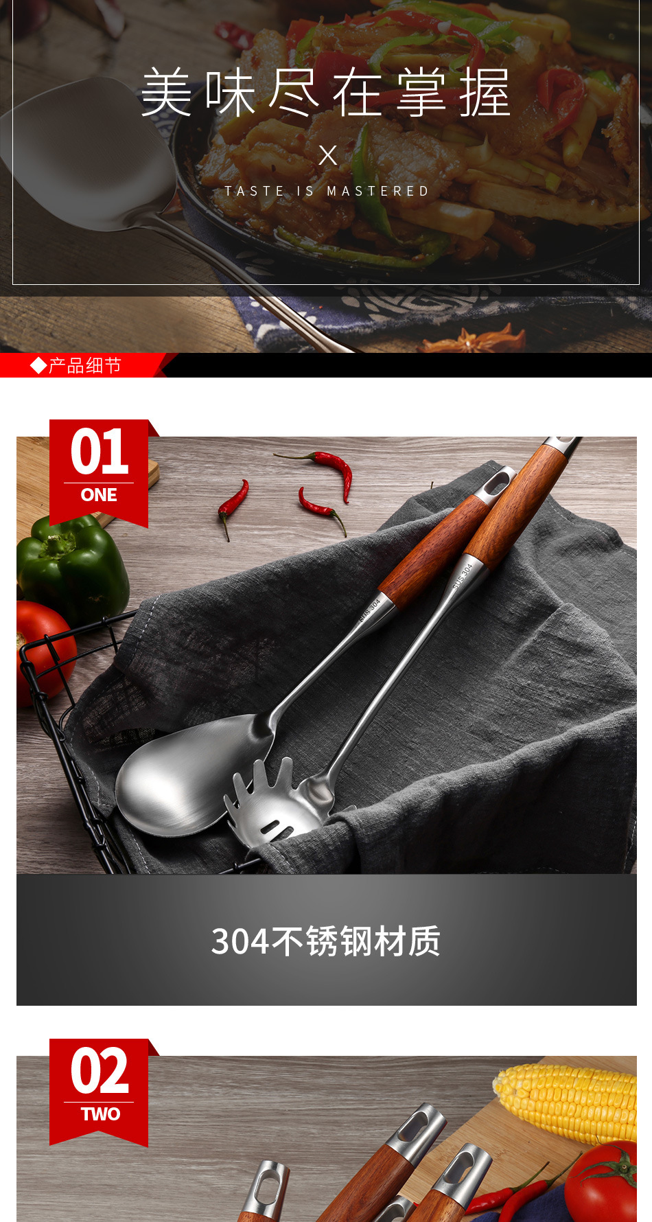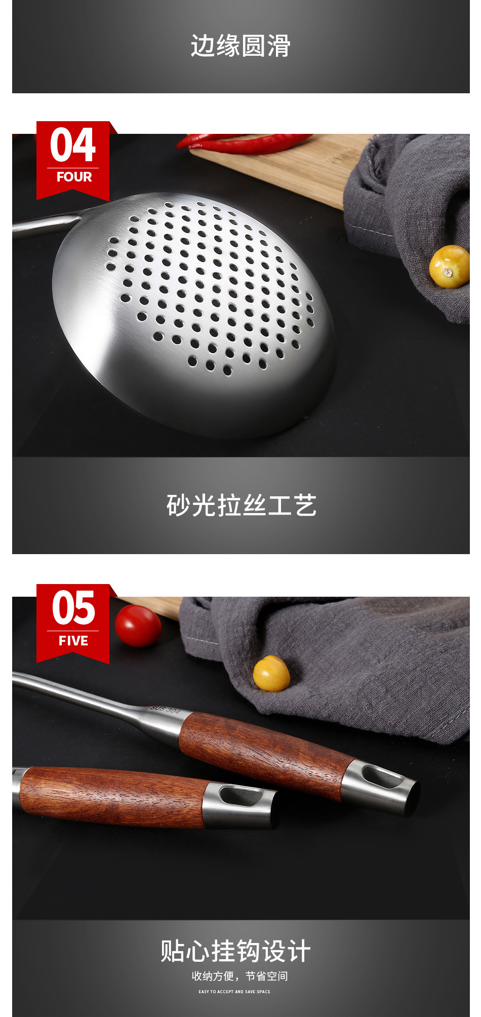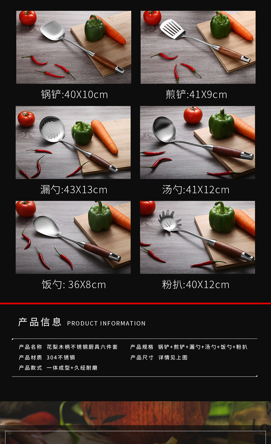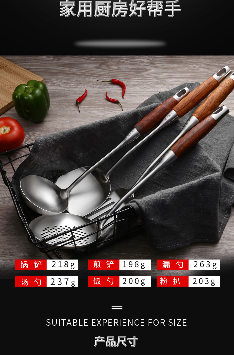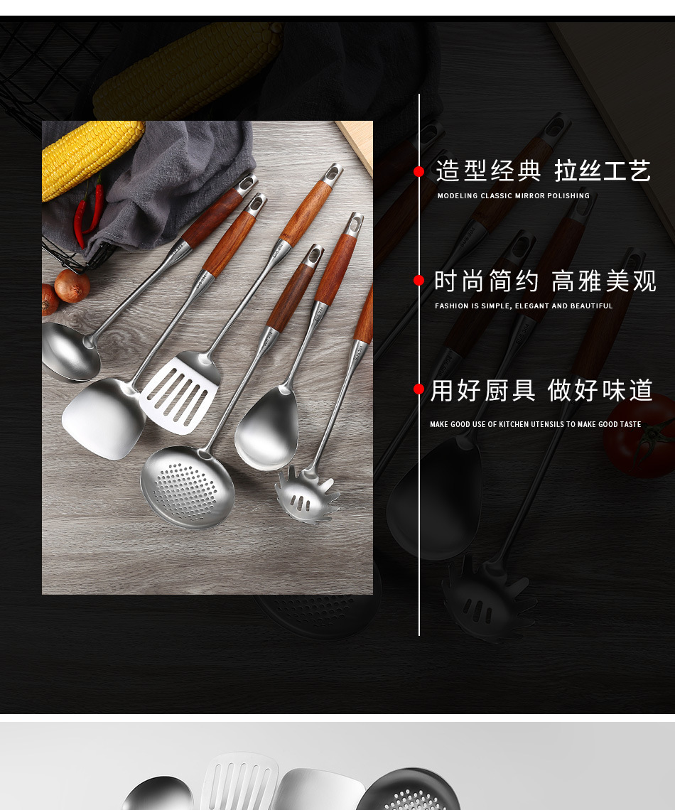 배나무 304 스테인레스 스틸 주방 용품 세트 가정용 주걱 소쿠리 프라이팬 주걱 요리 스푼 주방 요리 도구스토어 가기