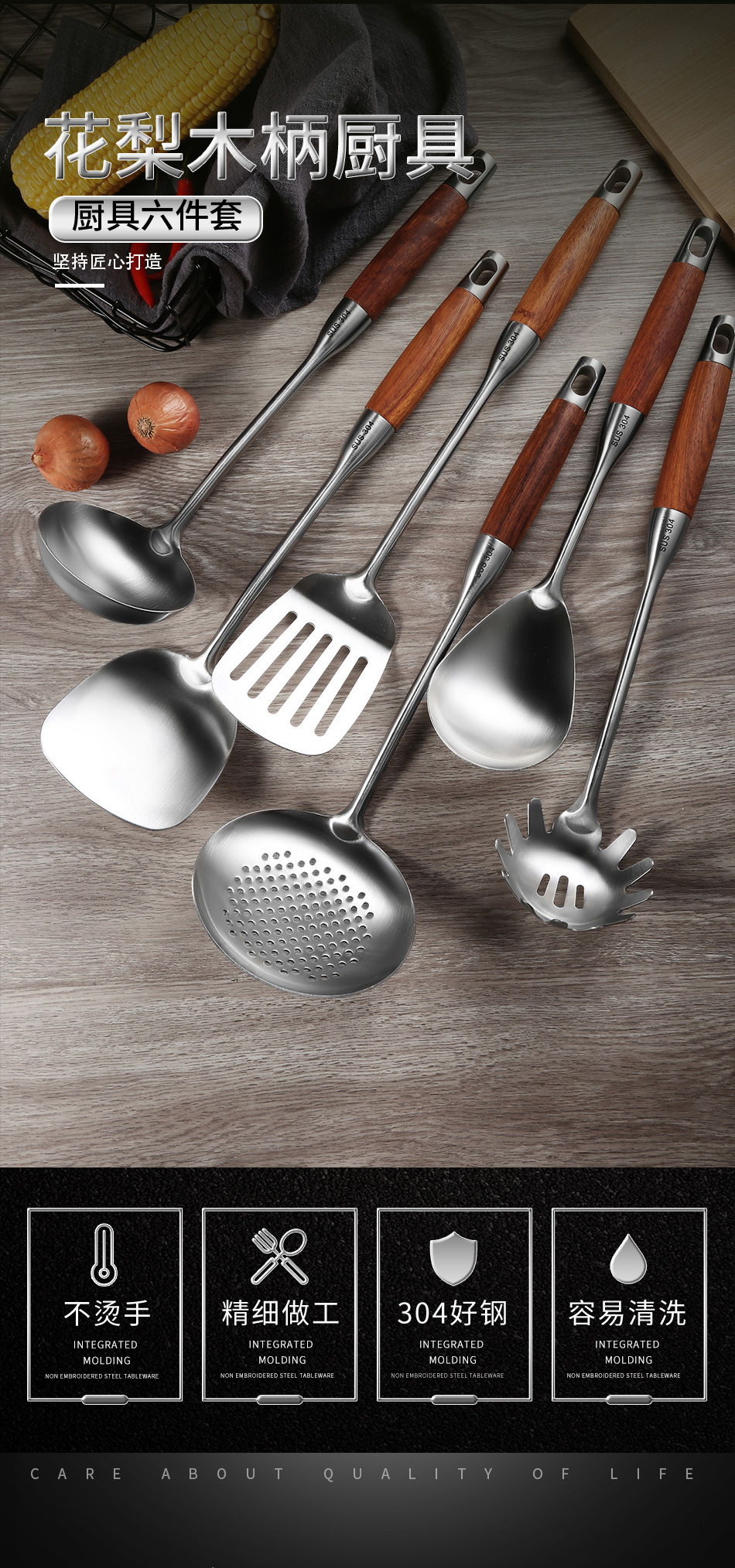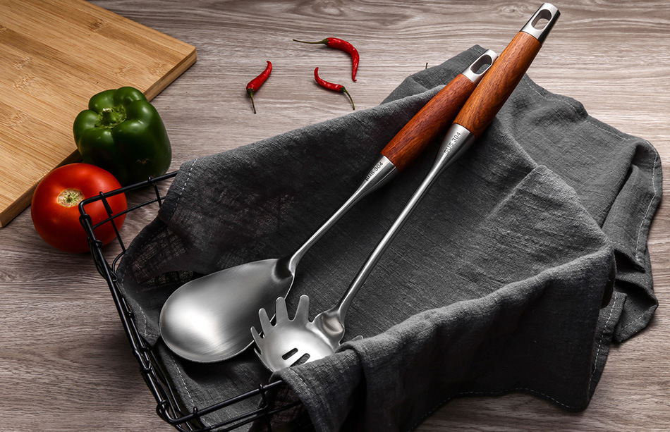 배나무 304 스테인레스 스틸 주방 용품 세트 가정용 주걱 소쿠리 프라이팬 주걱 요리 스푼 주방 요리 도구