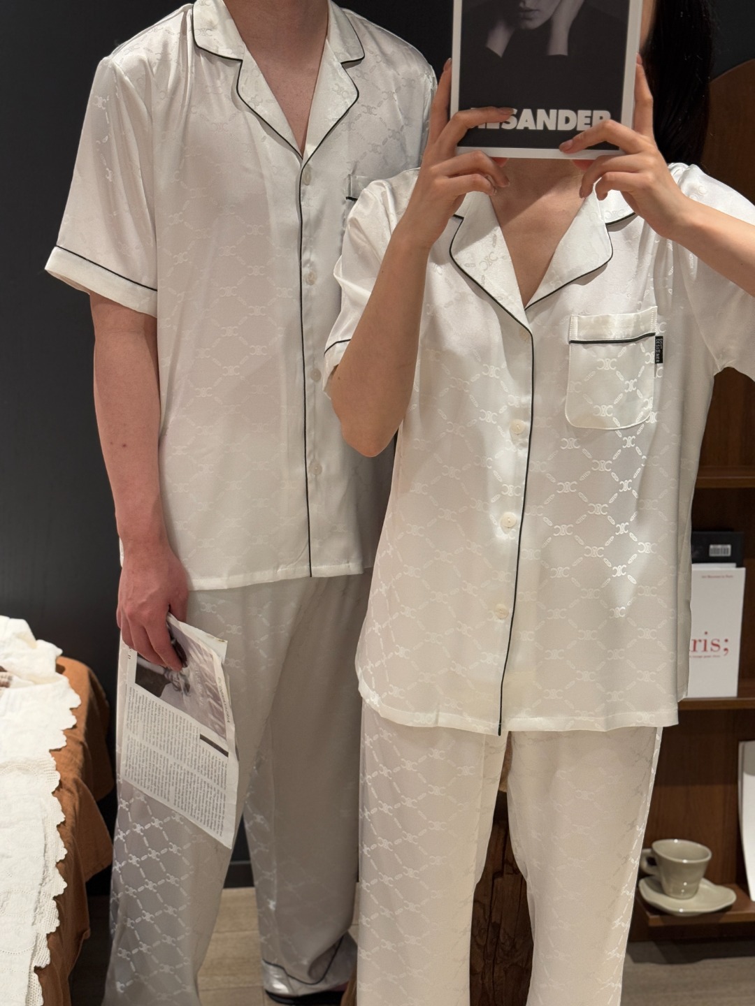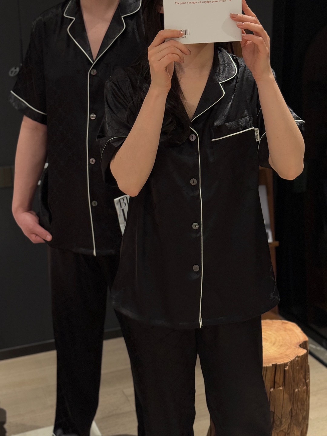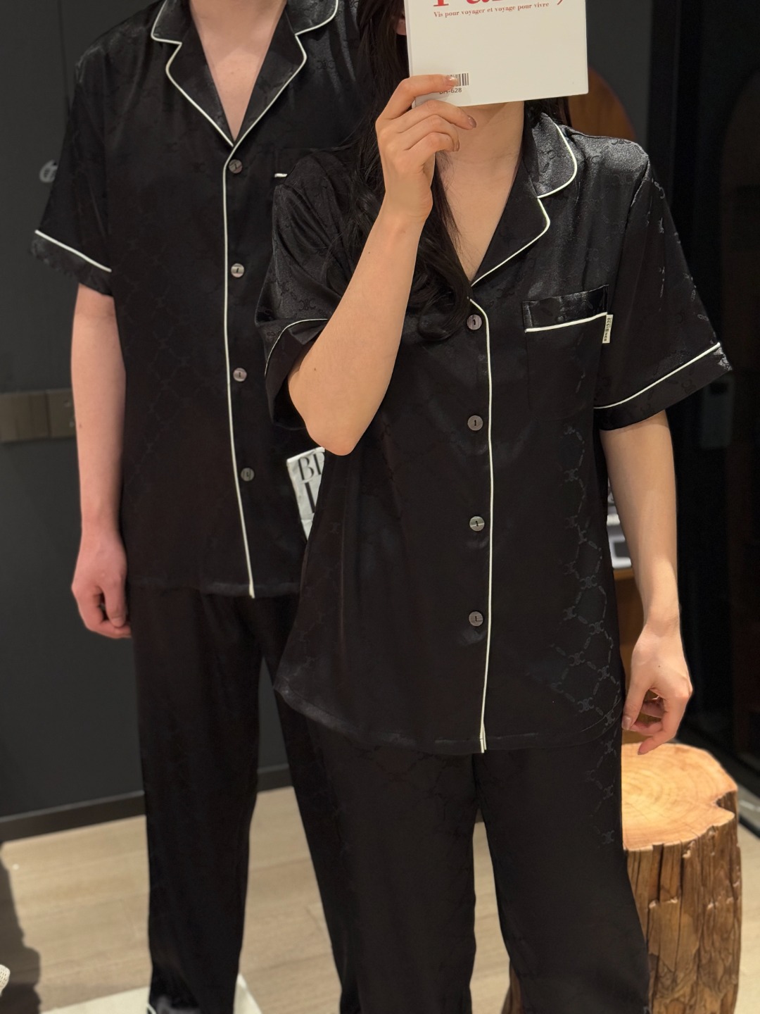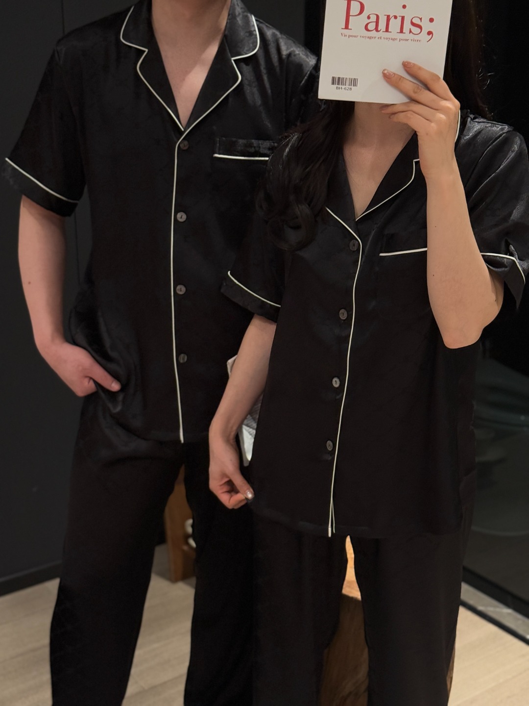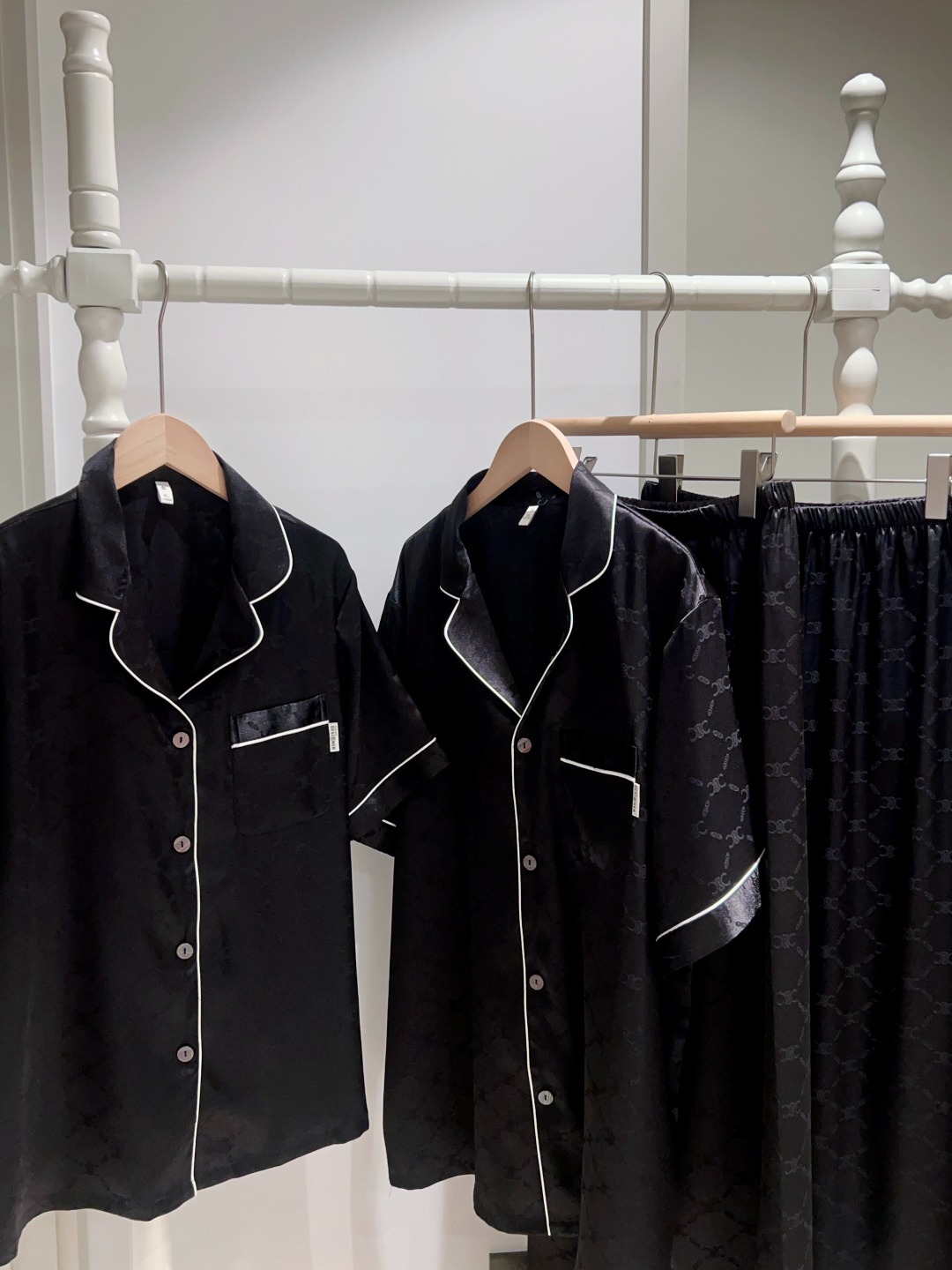 하이 엔드 아이스 실크 커플 잠옷 여성 봄과 여름 얇은 반팔 바지 자카드 세트 아이스 실크 남성용 홈 옷스토어 가기