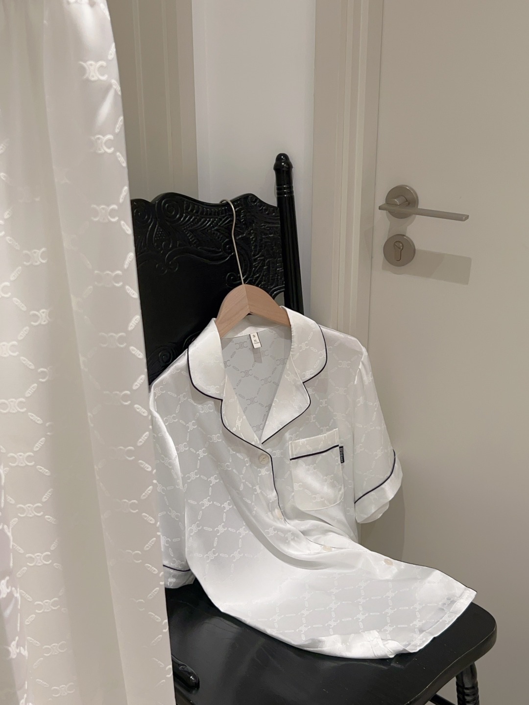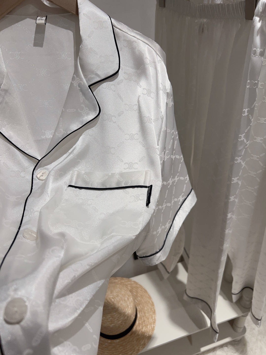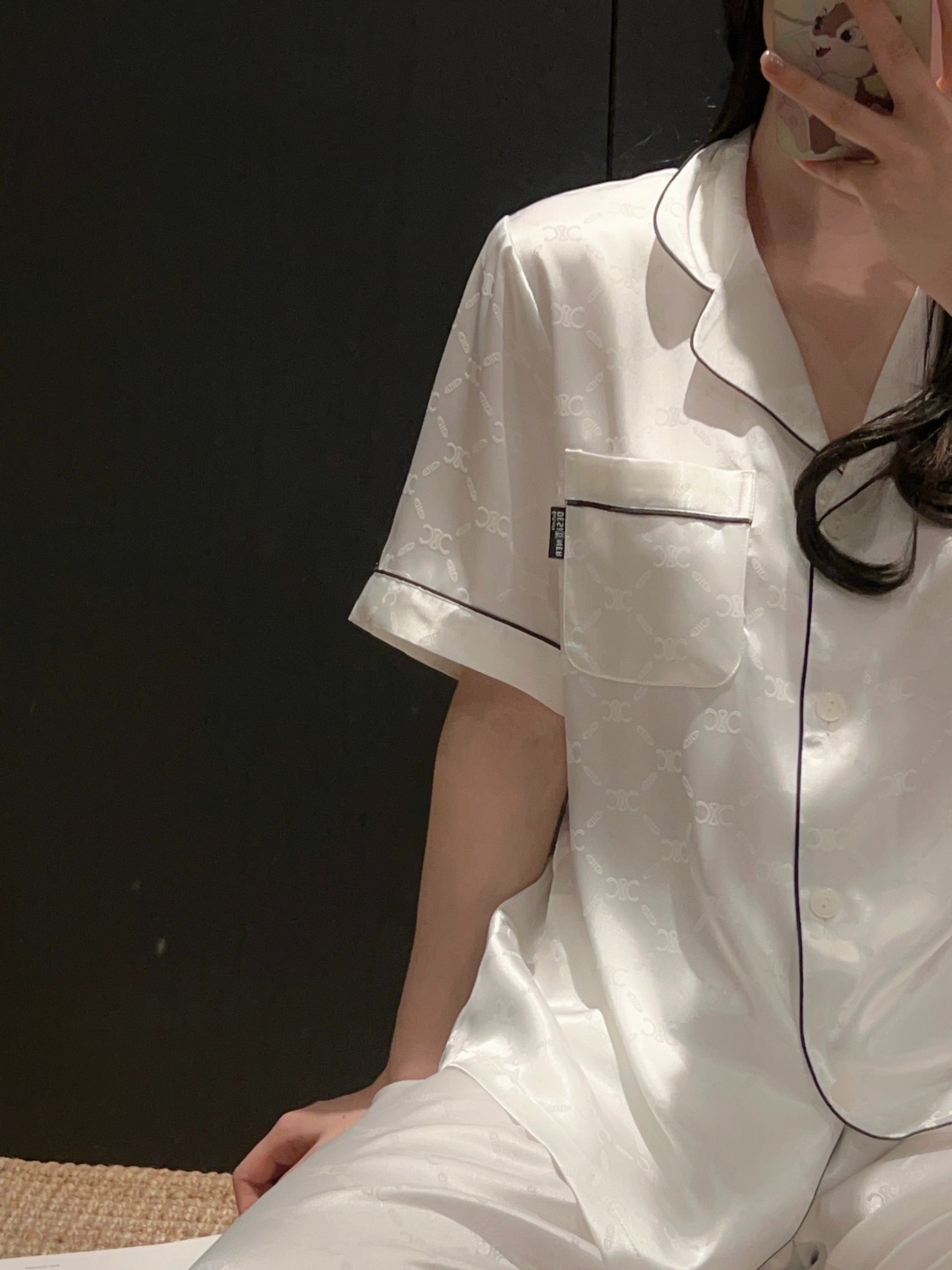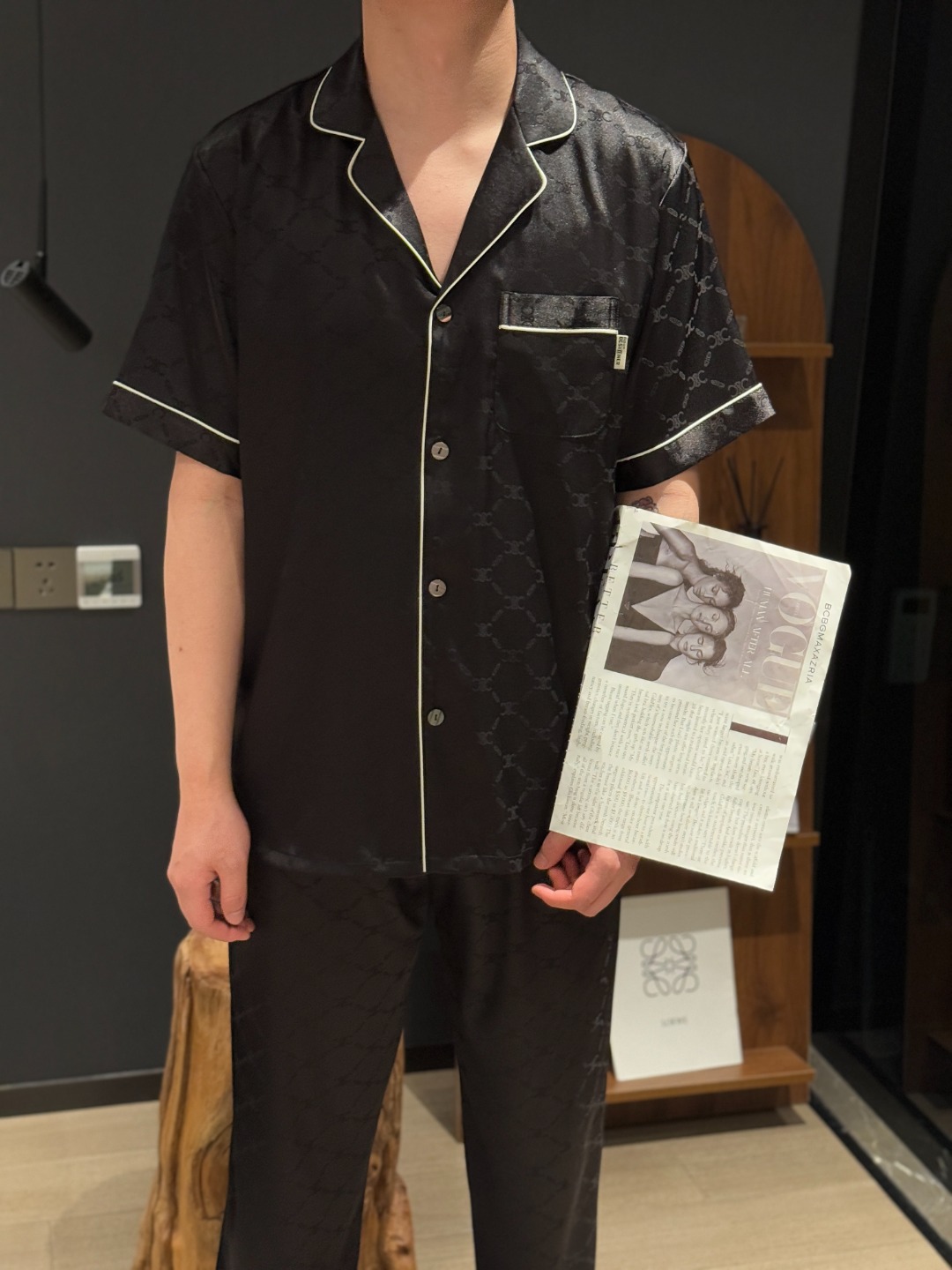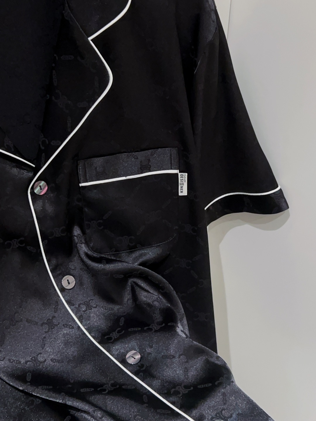 하이 엔드 아이스 실크 커플 잠옷 여성 봄과 여름 얇은 반팔 바지 자카드 세트 아이스 실크 남성용 홈 옷스토어 가기