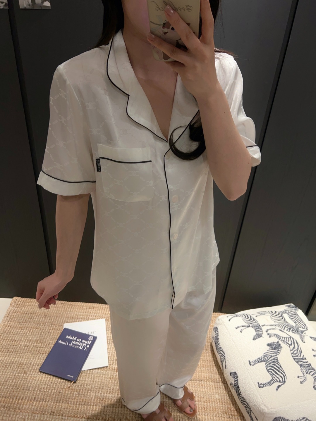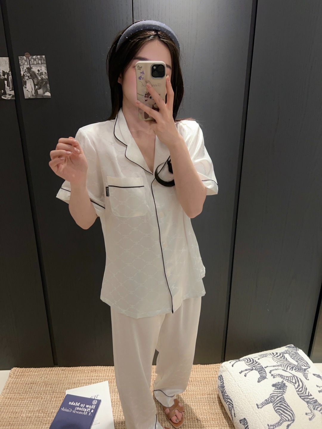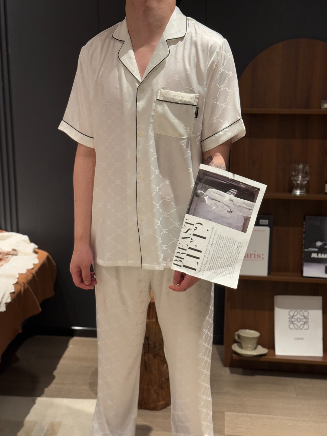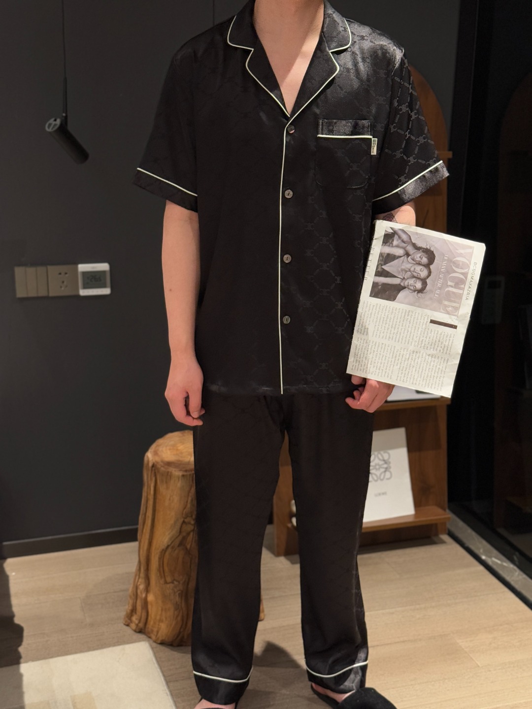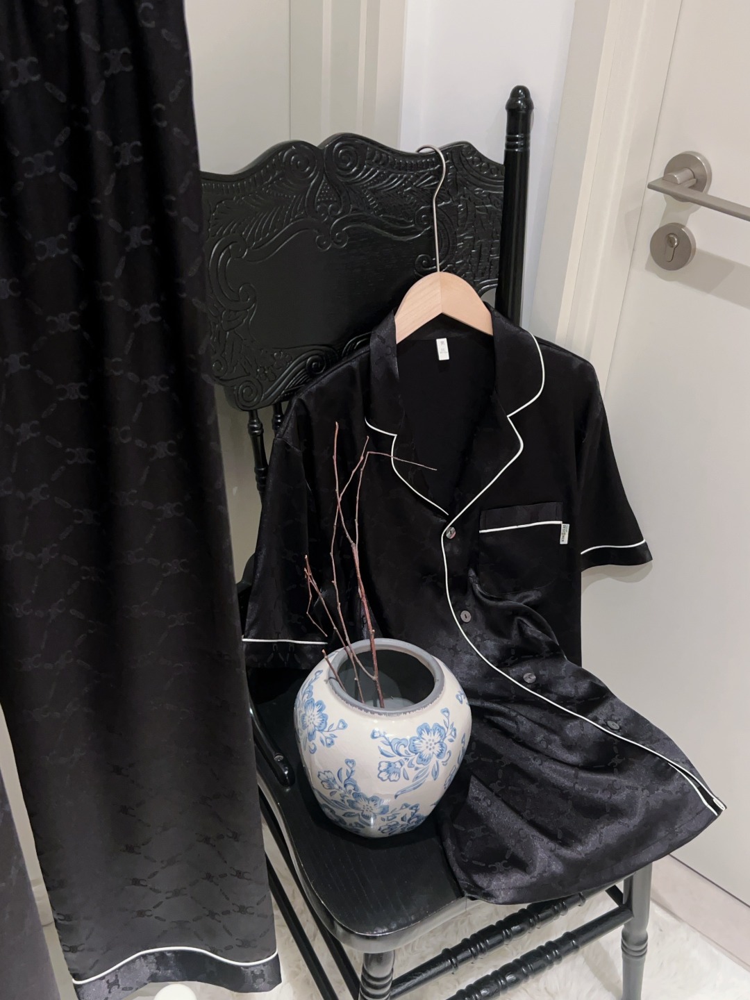 하이 엔드 아이스 실크 커플 잠옷 여성 봄과 여름 얇은 반팔 바지 자카드 세트 아이스 실크 남성용 홈 옷스토어 가기