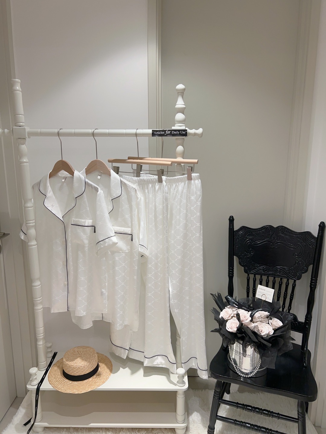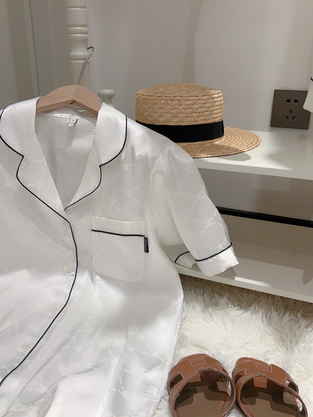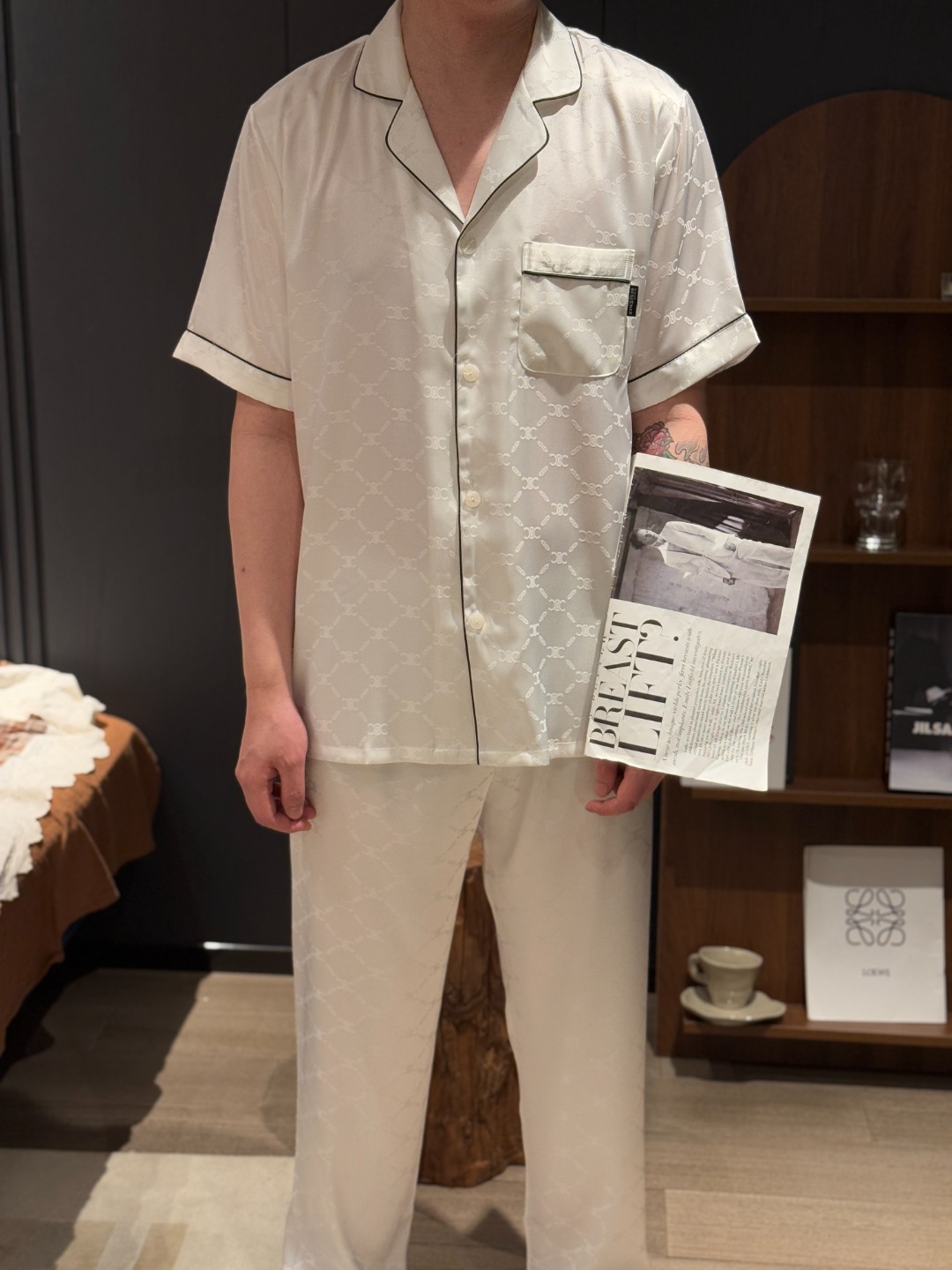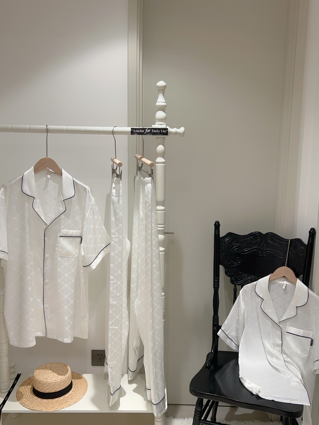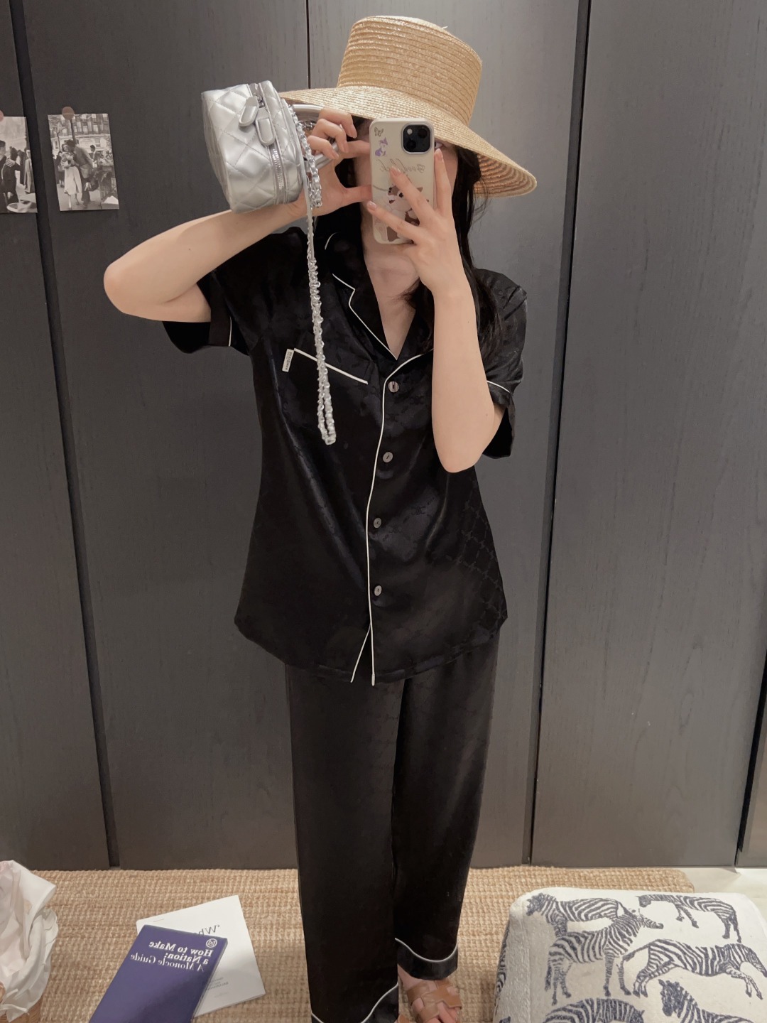 하이 엔드 아이스 실크 커플 잠옷 여성 봄과 여름 얇은 반팔 바지 자카드 세트 아이스 실크 남성용 홈 옷스토어 가기