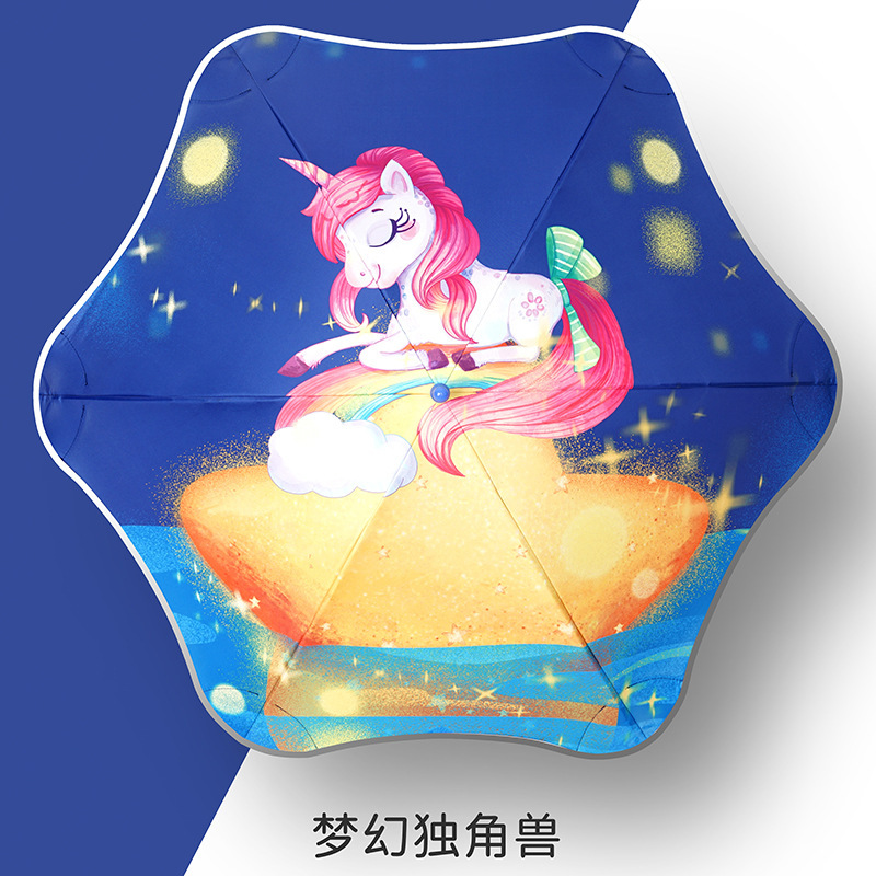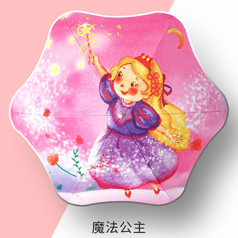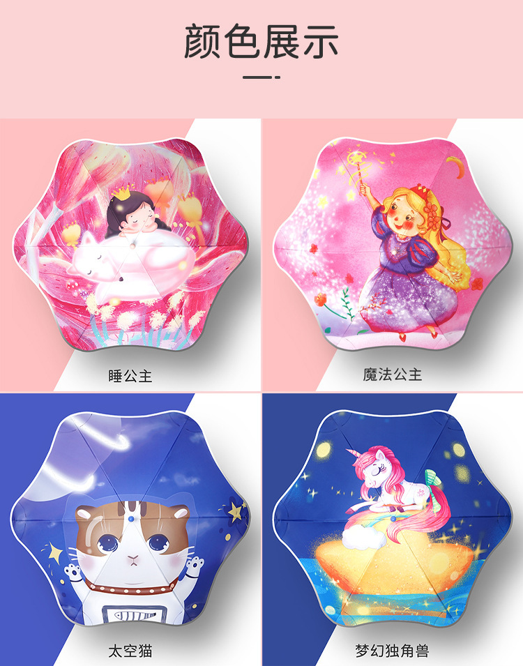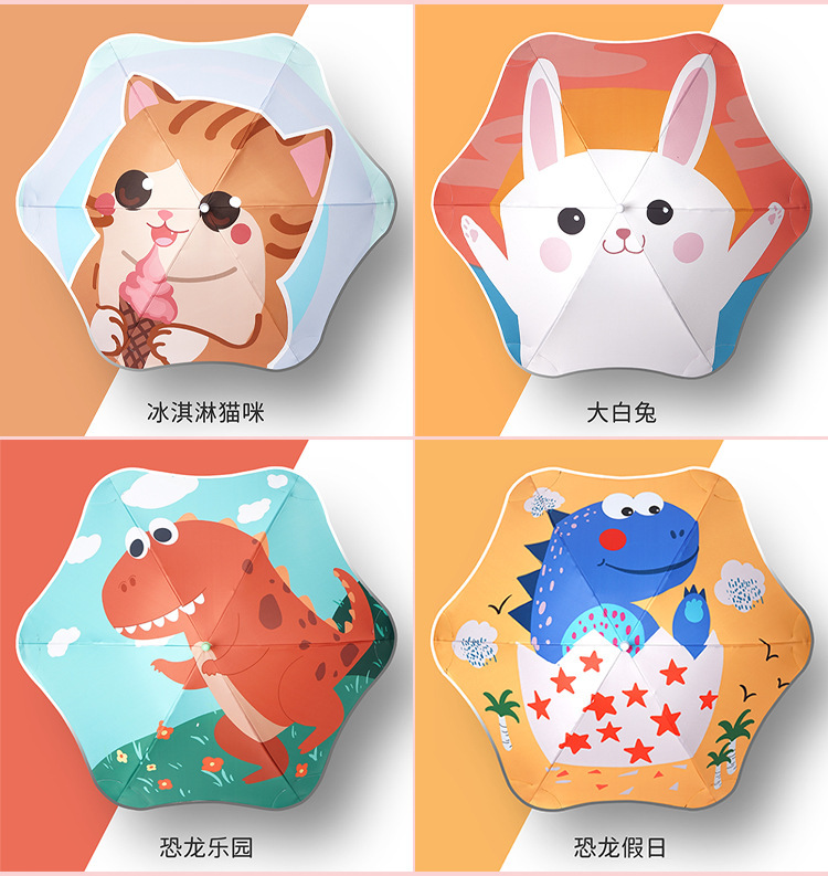 어린이용 양산우산, 손에 상처를 주지 않고 사용하기 쉽고 귀여운 만화 둥근 모서리 야외용 자외선 차단 파라솔