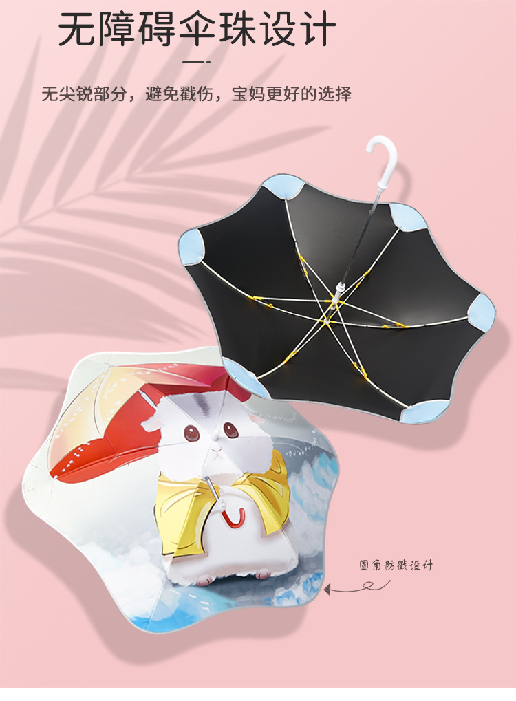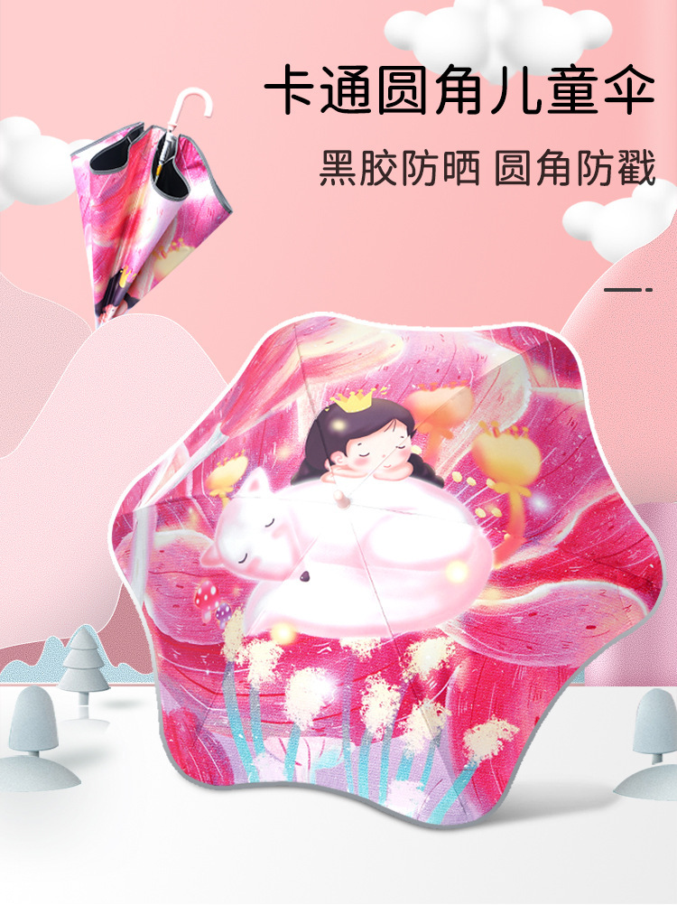 어린이용 양산우산, 손에 상처를 주지 않고 사용하기 쉽고 귀여운 만화 둥근 모서리 야외용 자외선 차단 파라솔스토어 가기