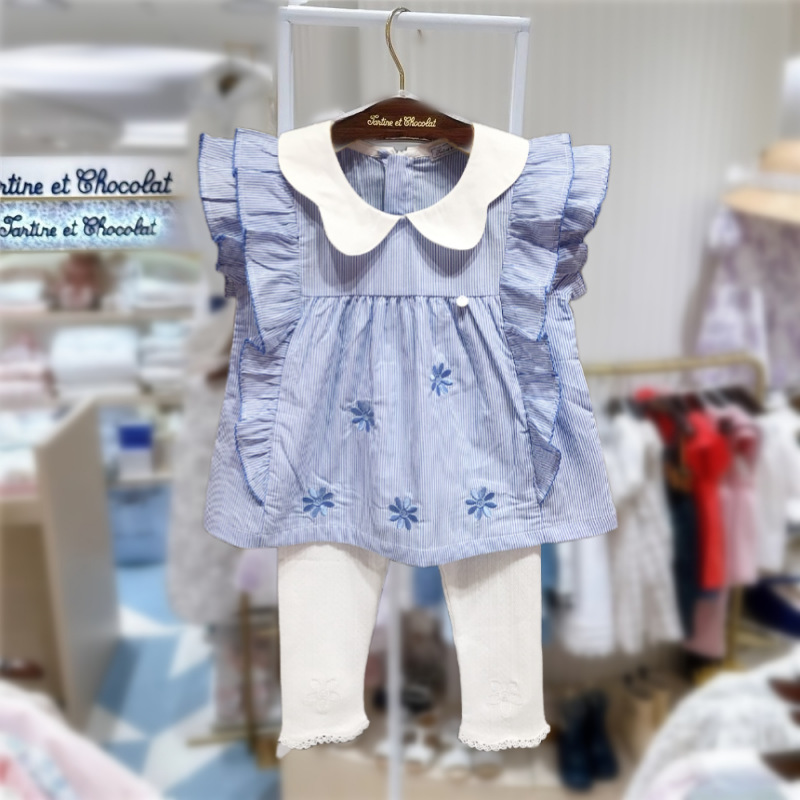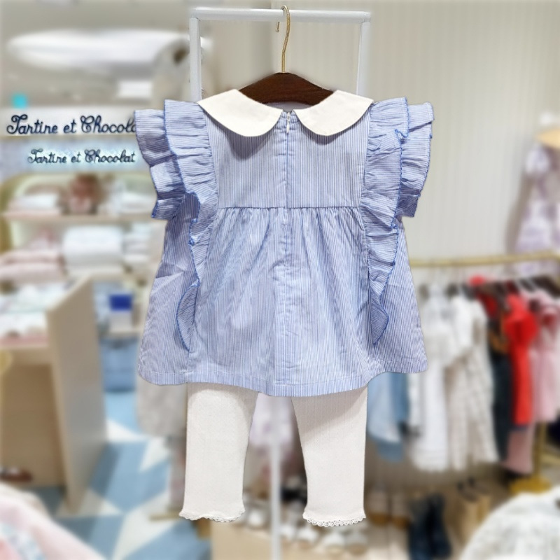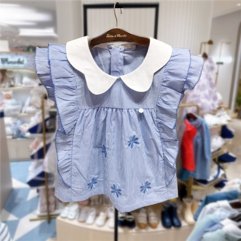한국 스타일 여름 새 소녀 옷깃 Lic 스커트 탑 스타일 티셔츠 MS540101 아동복스토어 가기