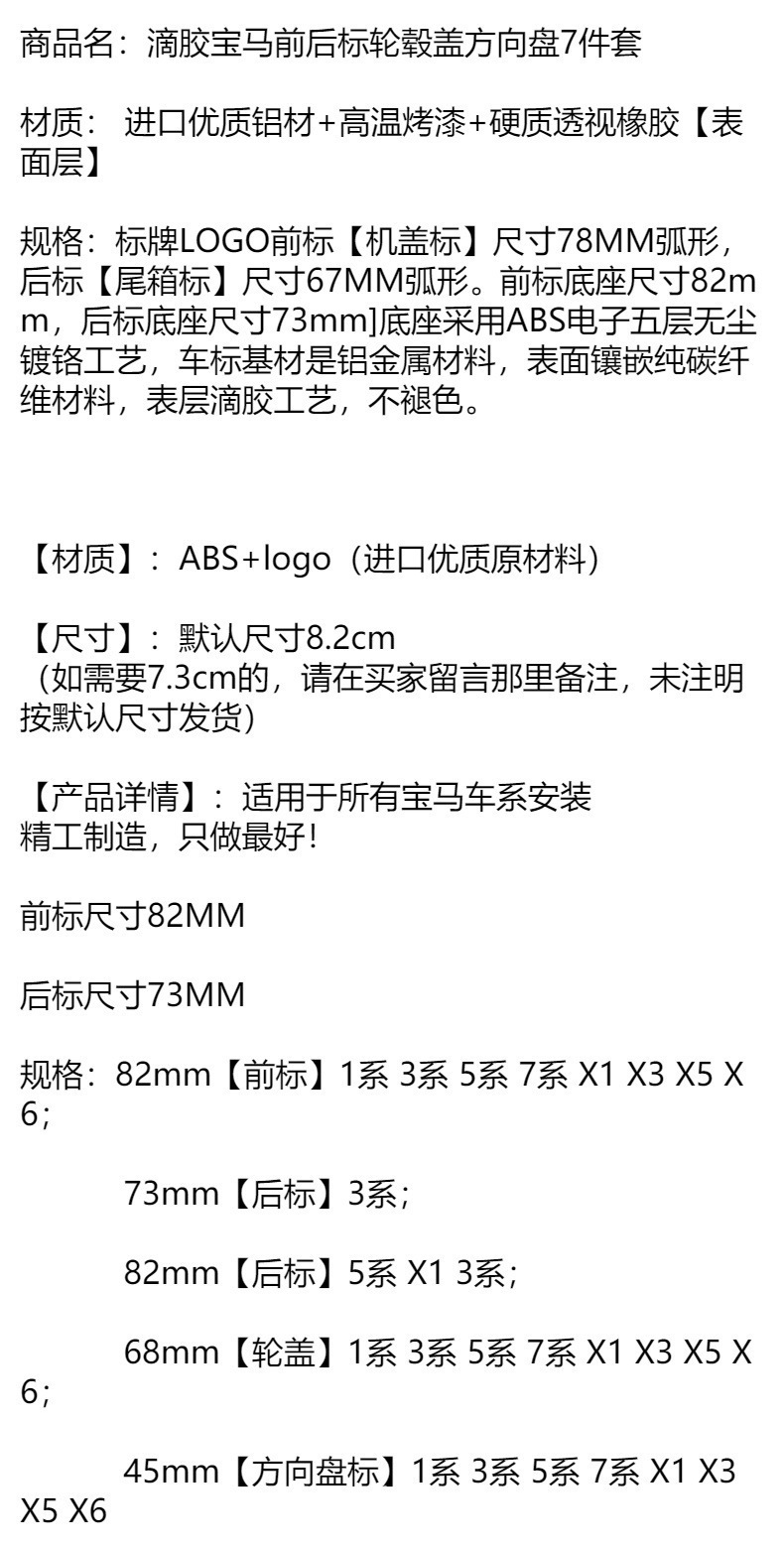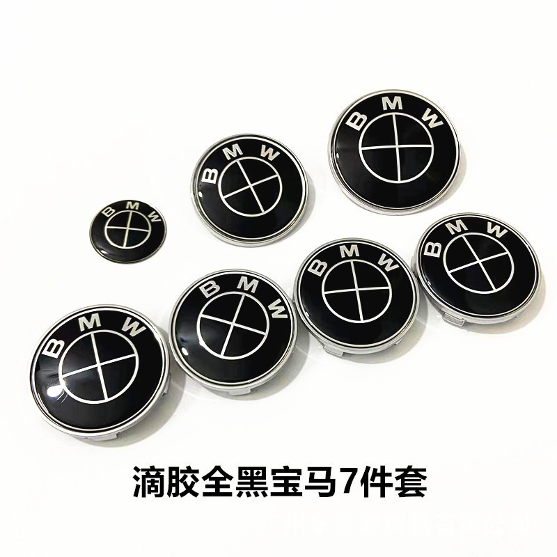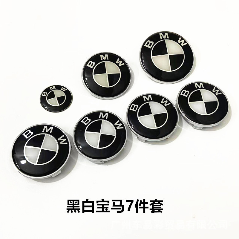 BMW BMW 풀 카 로고 7 피스 세트 3 시리즈 스티어링 휠 스티커 X56 파란색과 흰색 후드 전면 및 후면 테일 로고 휠 허브 커버에 적합스토어 가기