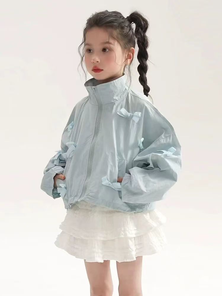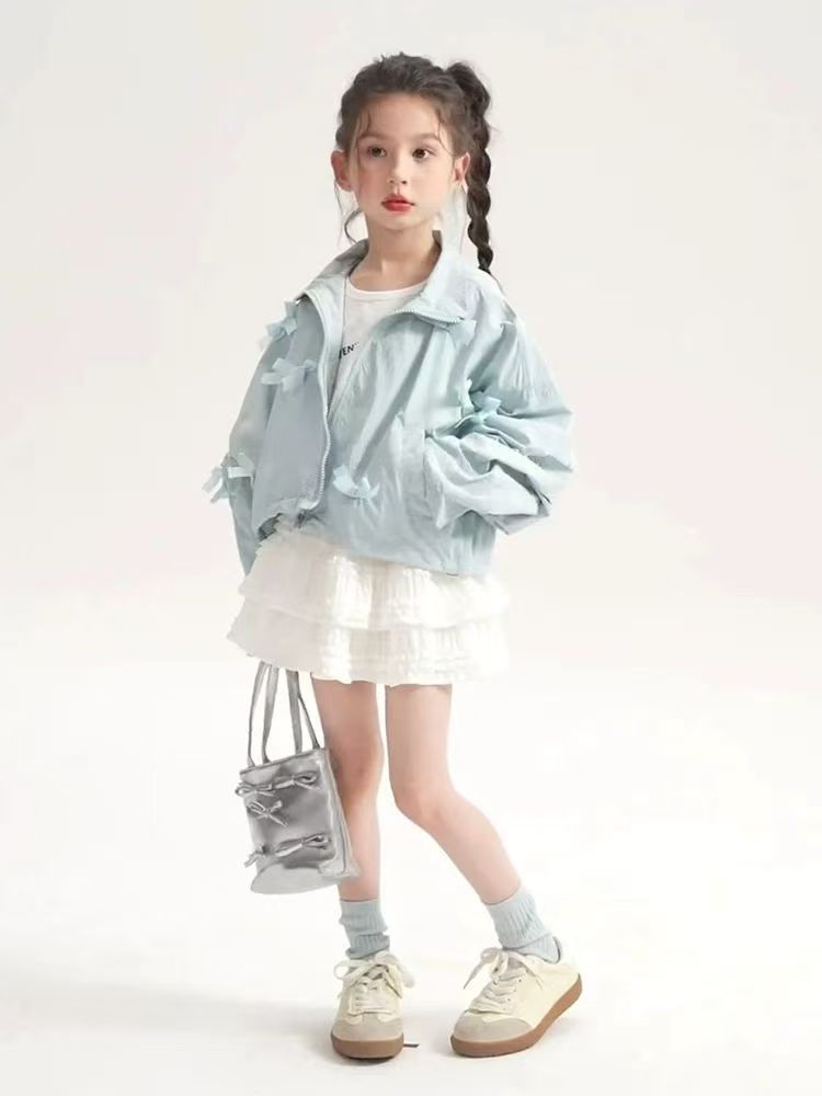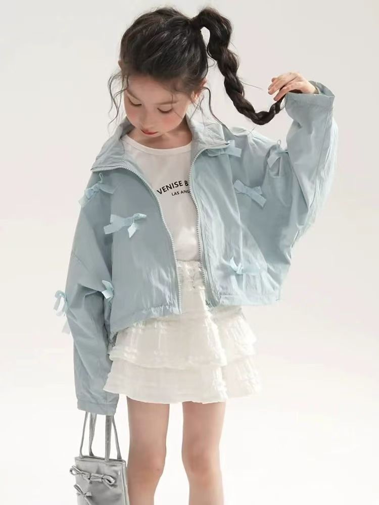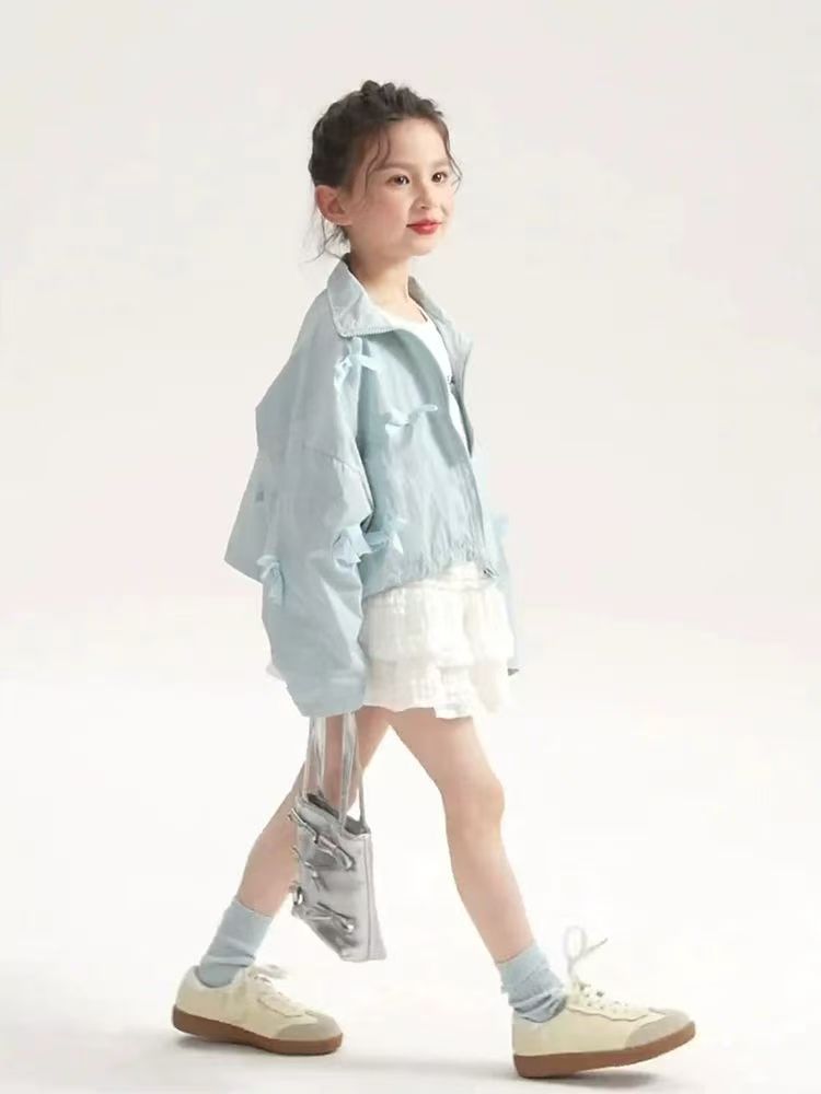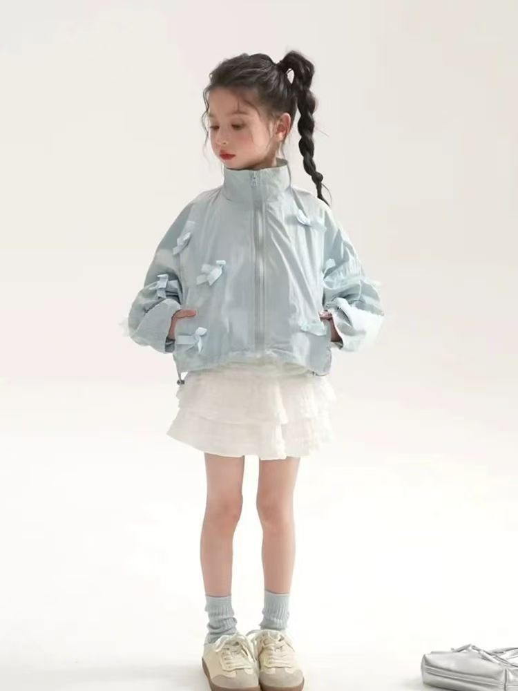 여자 봄 코트 2025 새로운 서양식 한국 스타일 어린이 느슨한 지퍼 셔츠 소녀 봄 활 탑