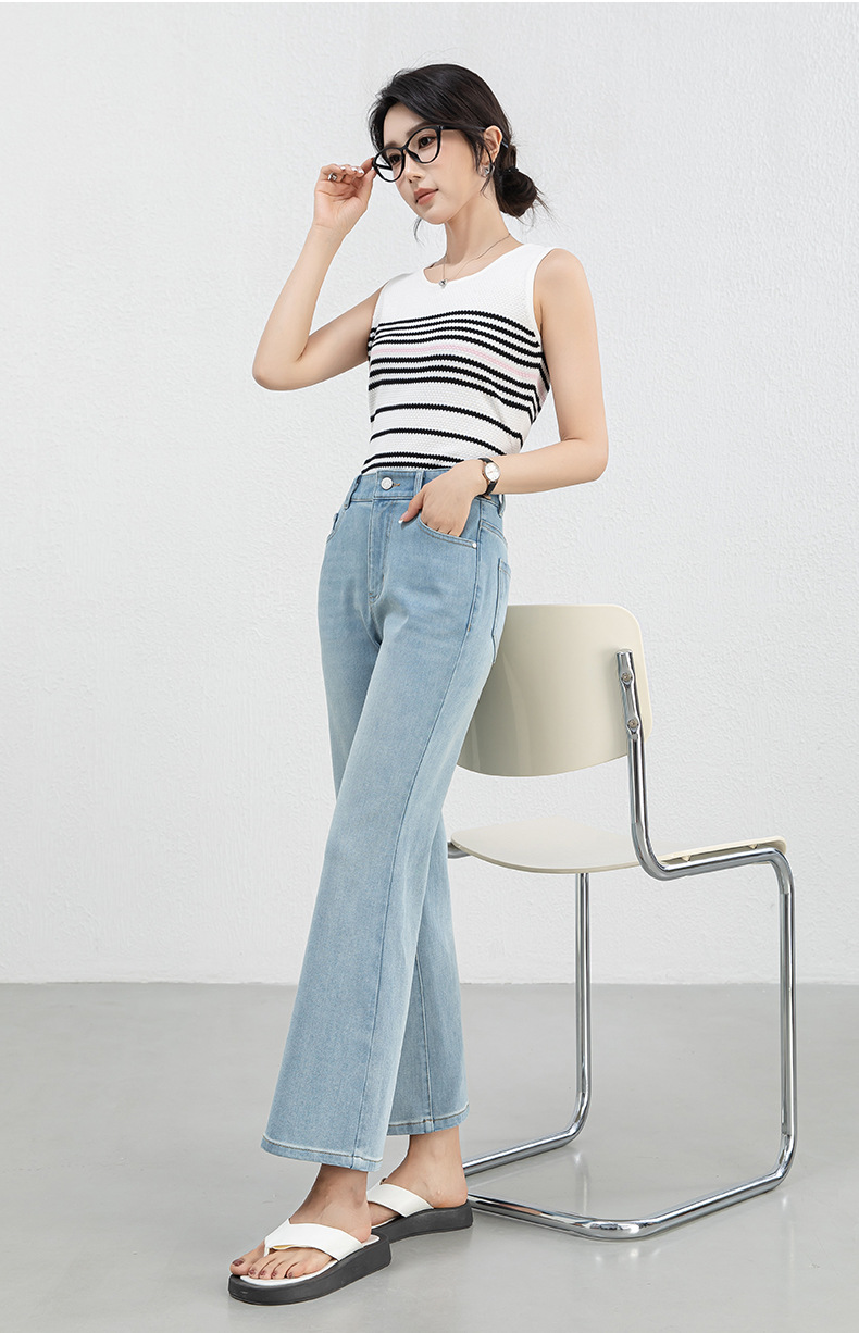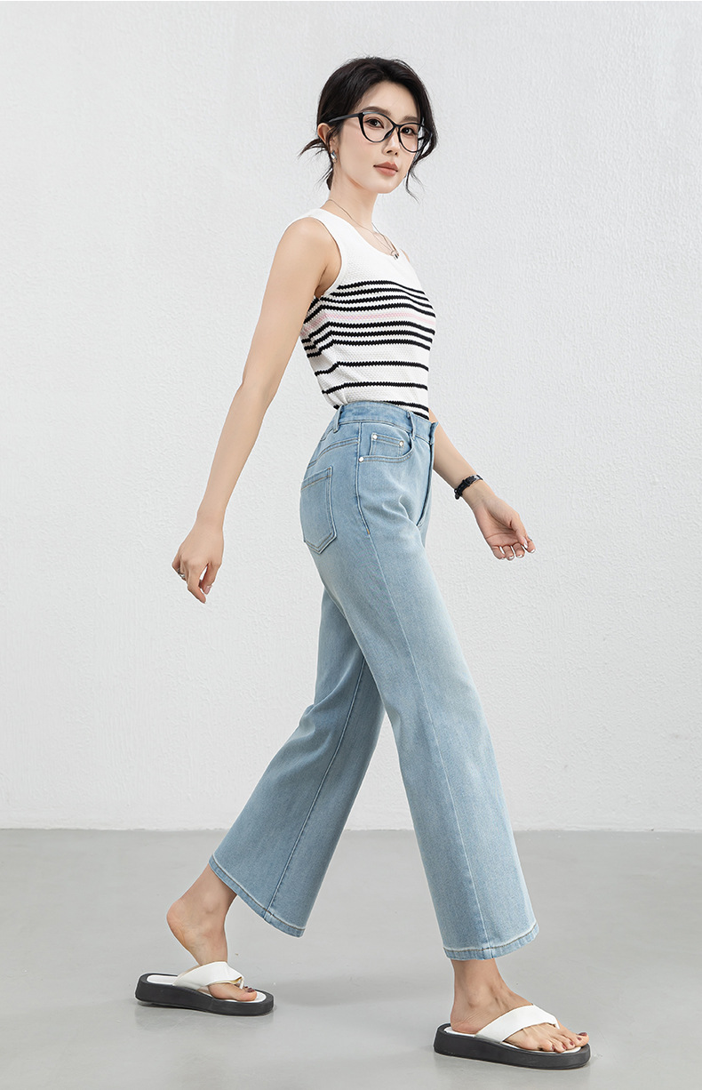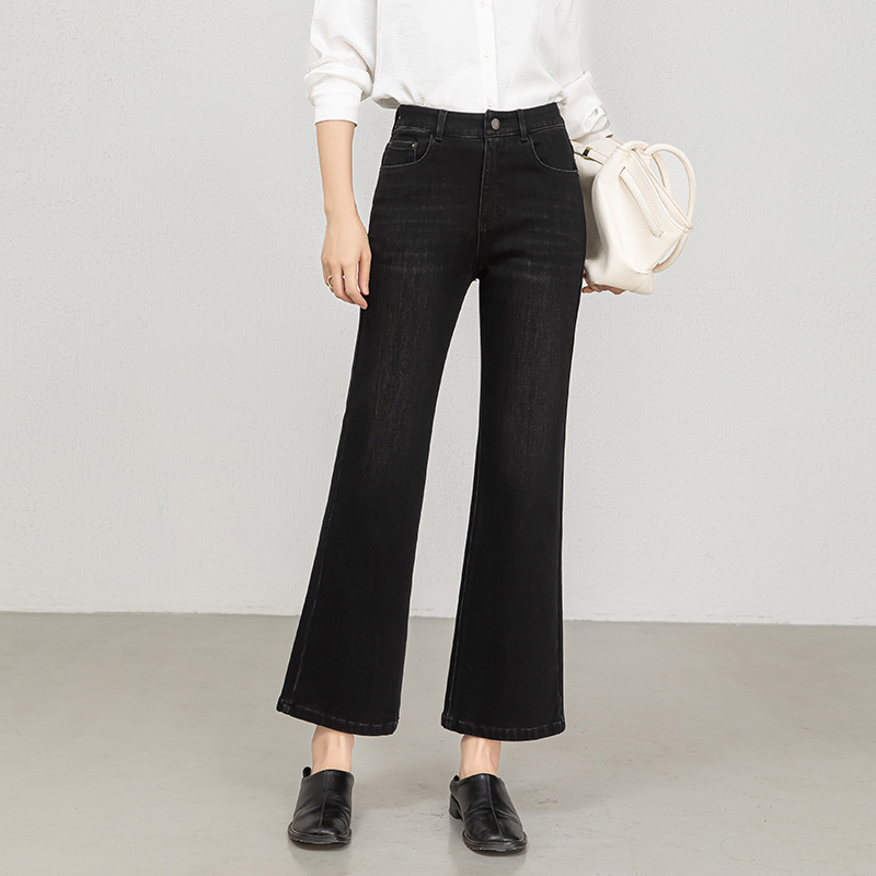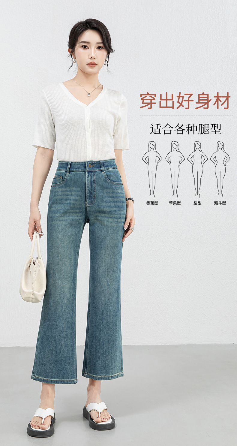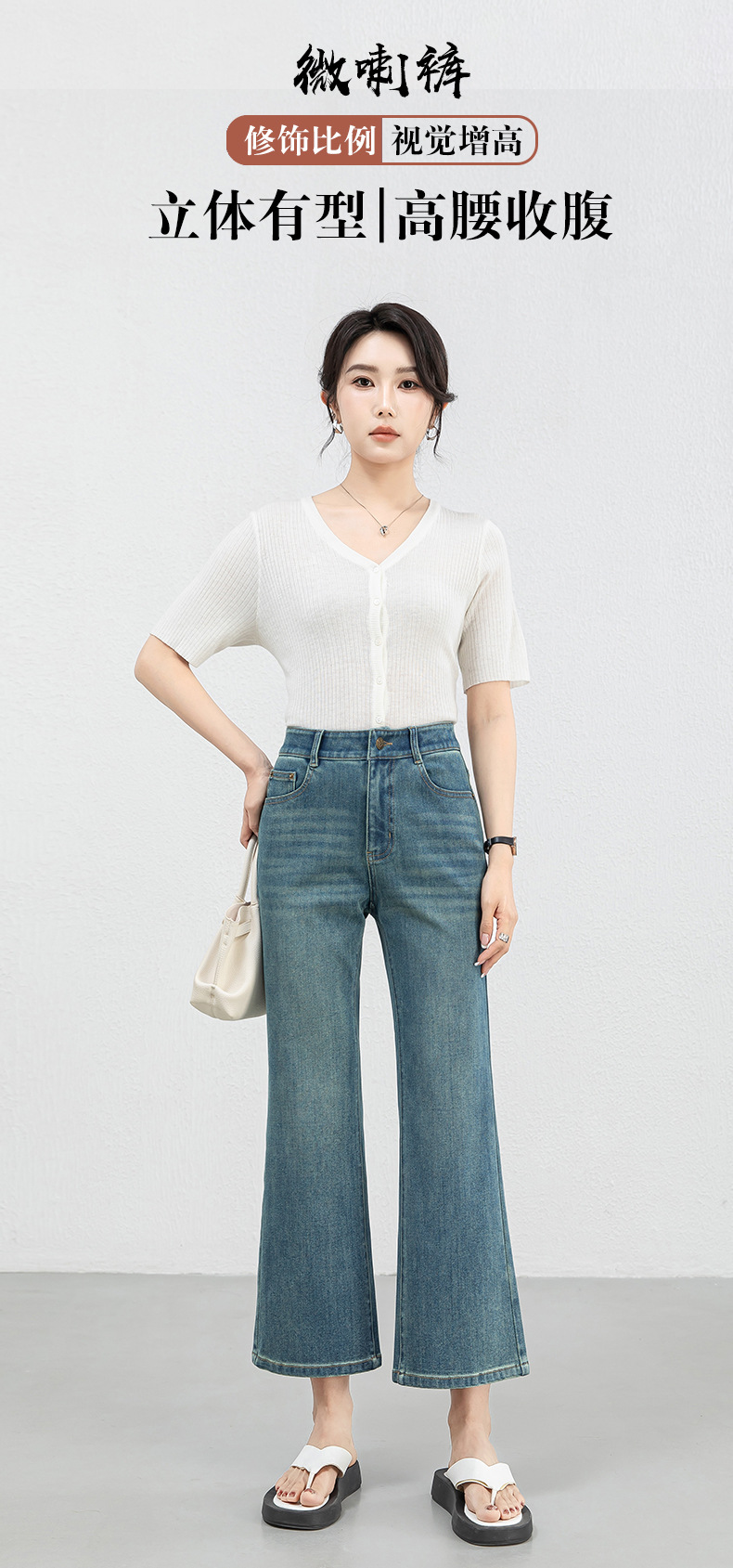 2026년 여름 신상 여성용 미드하이웨이스트 데님 마이크로 플레어 9부 팬츠, 4방향 스트레치 슬림핏 플레어 팬츠 8172