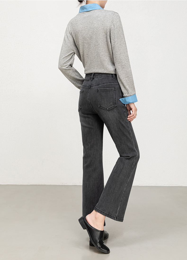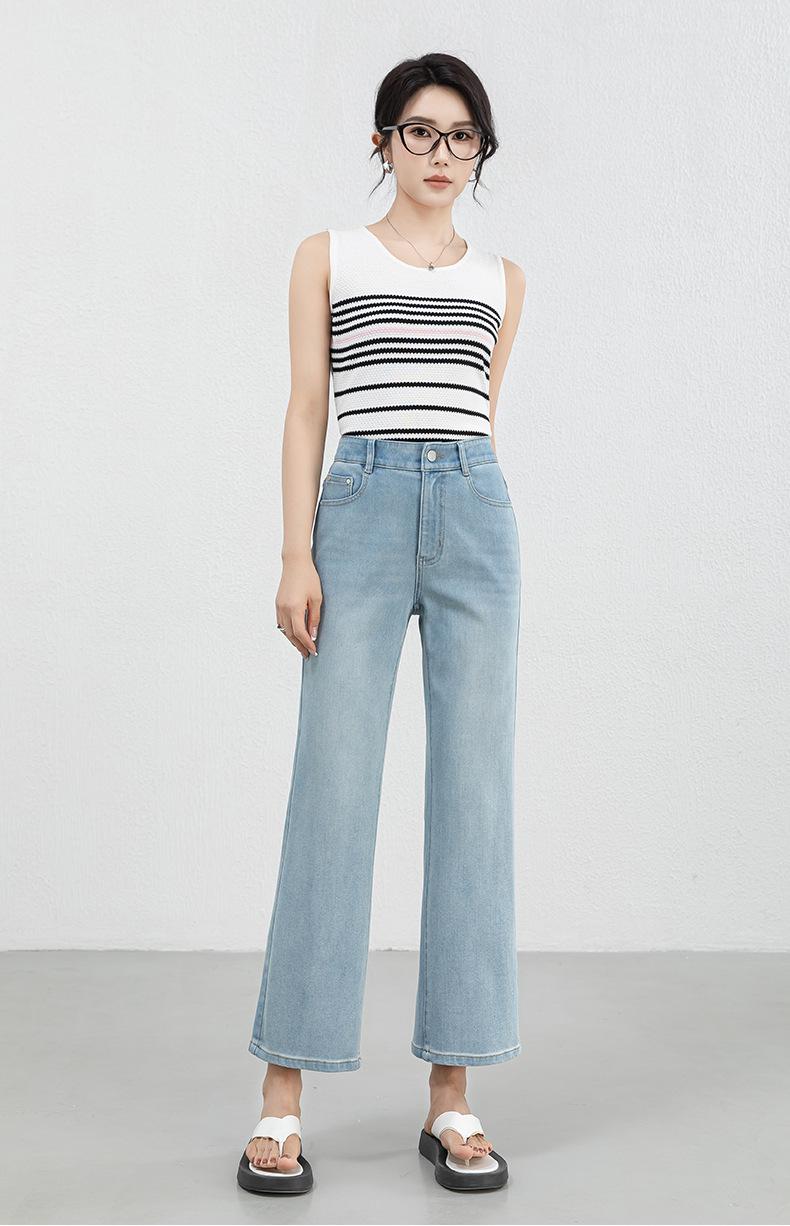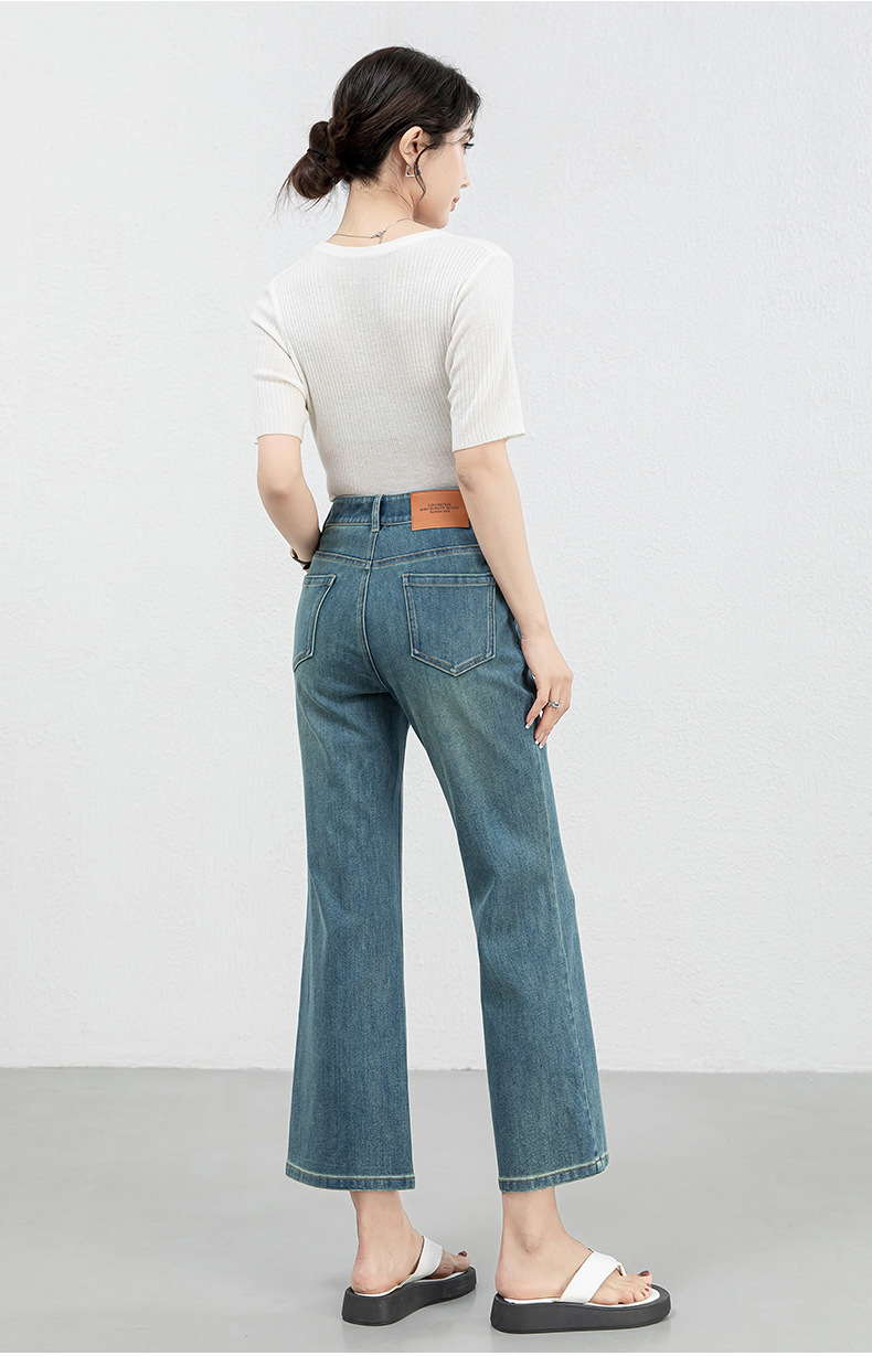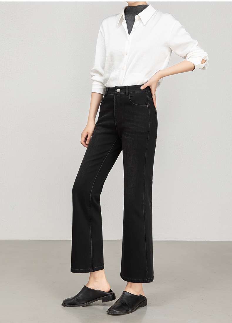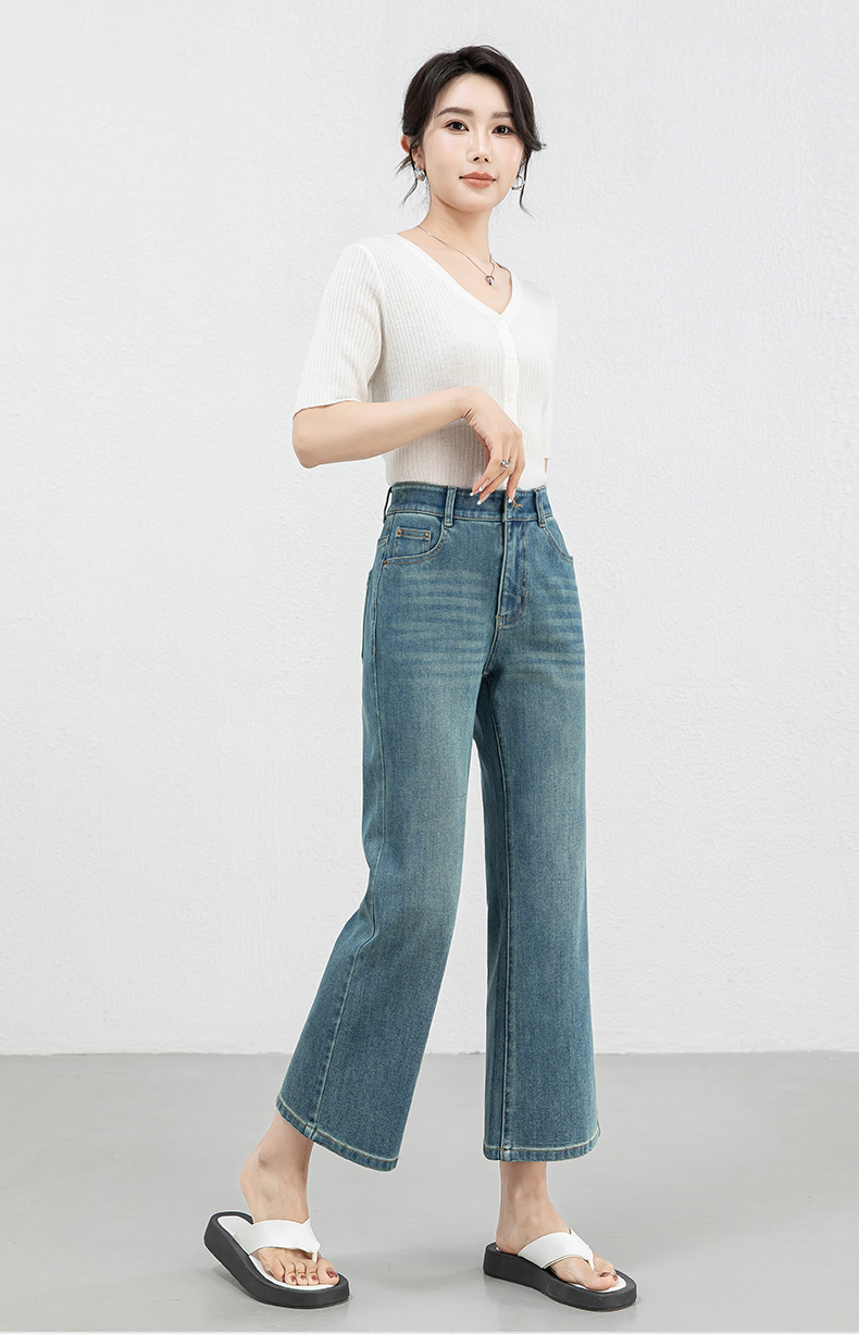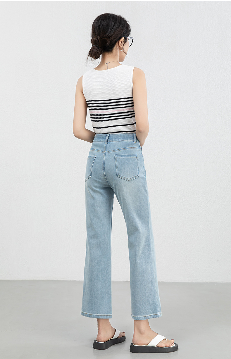 2026년 여름 신상 여성용 미드하이웨이스트 데님 마이크로 플레어 9부 팬츠, 4방향 스트레치 슬림핏 플레어 팬츠 8172