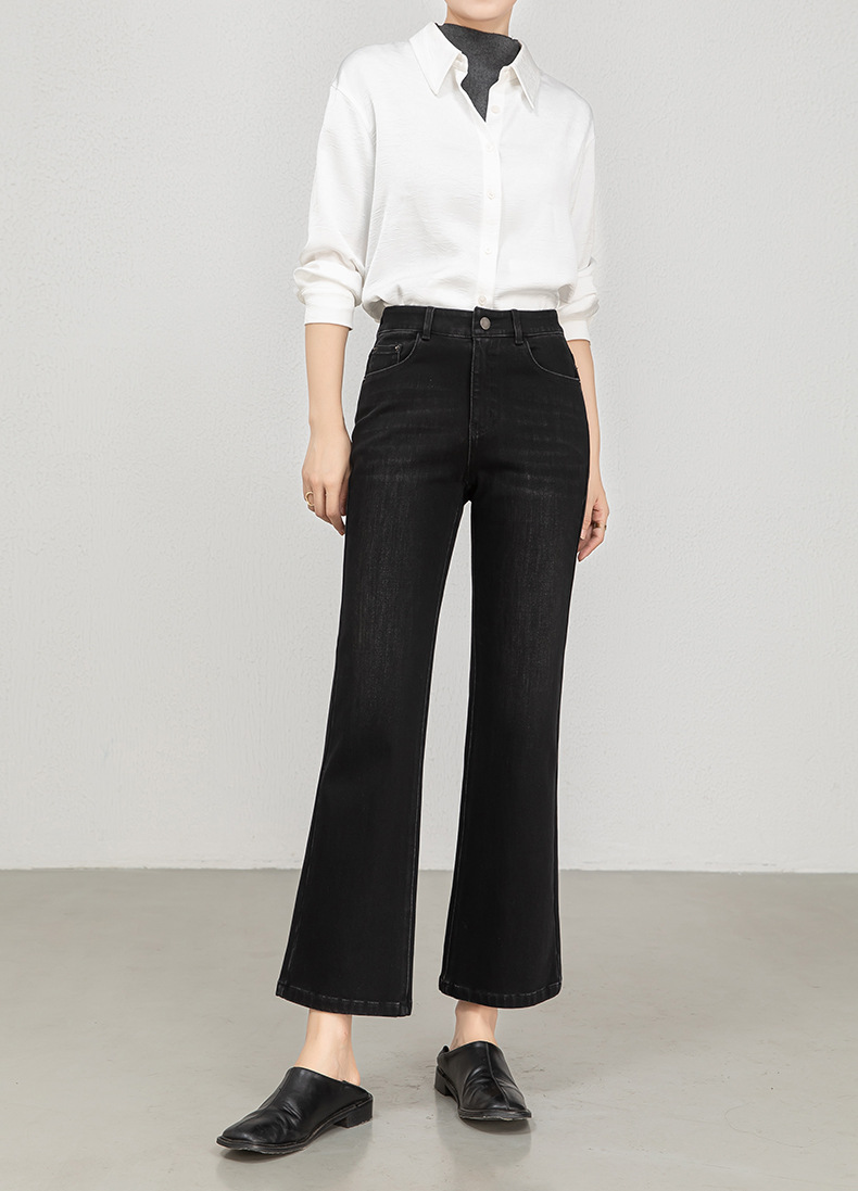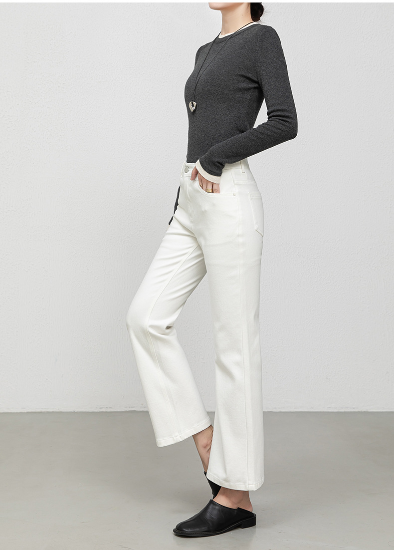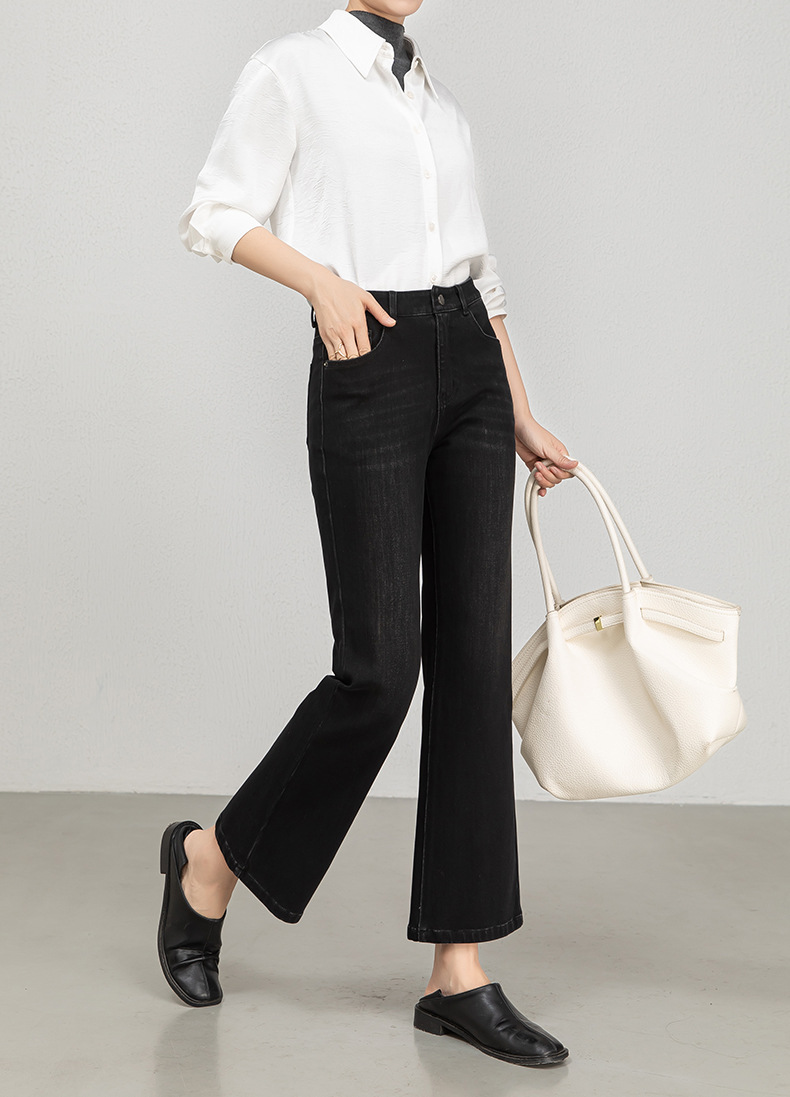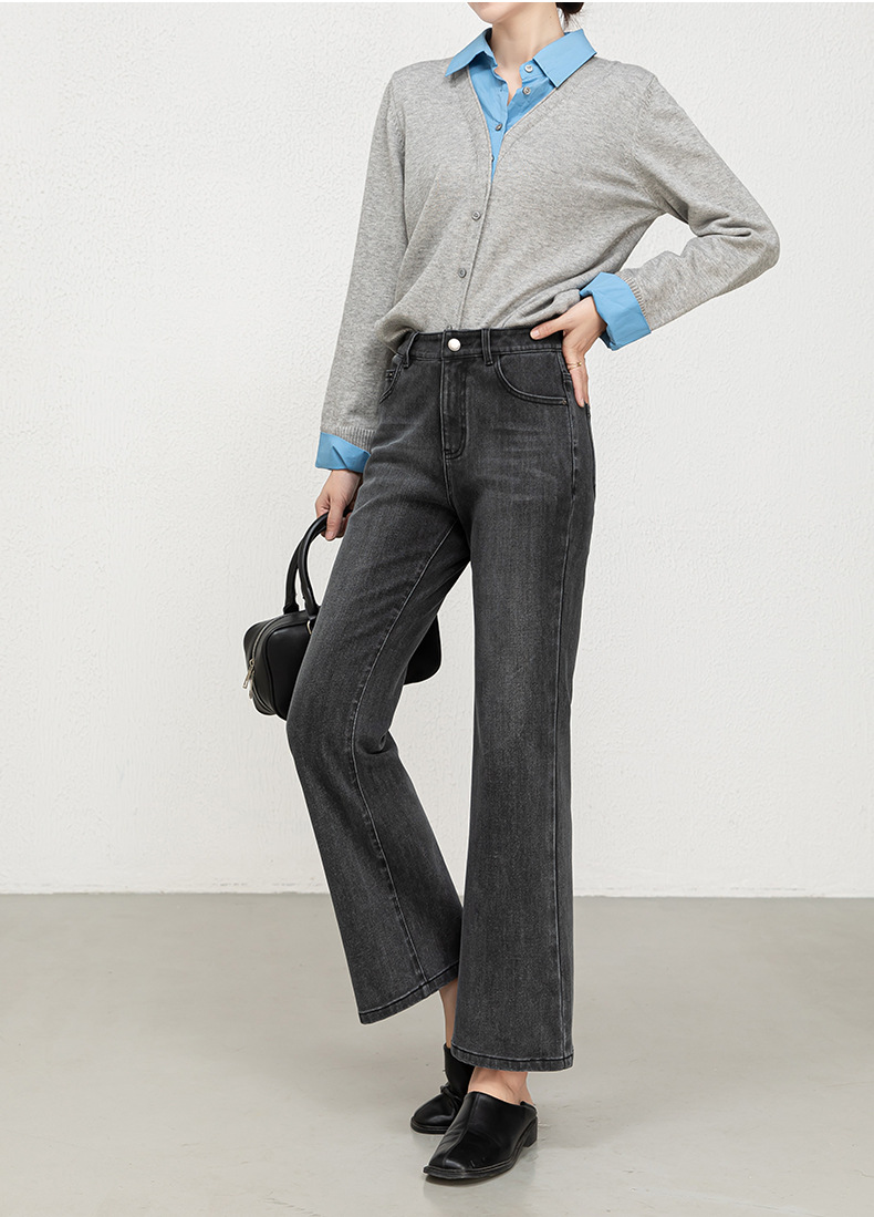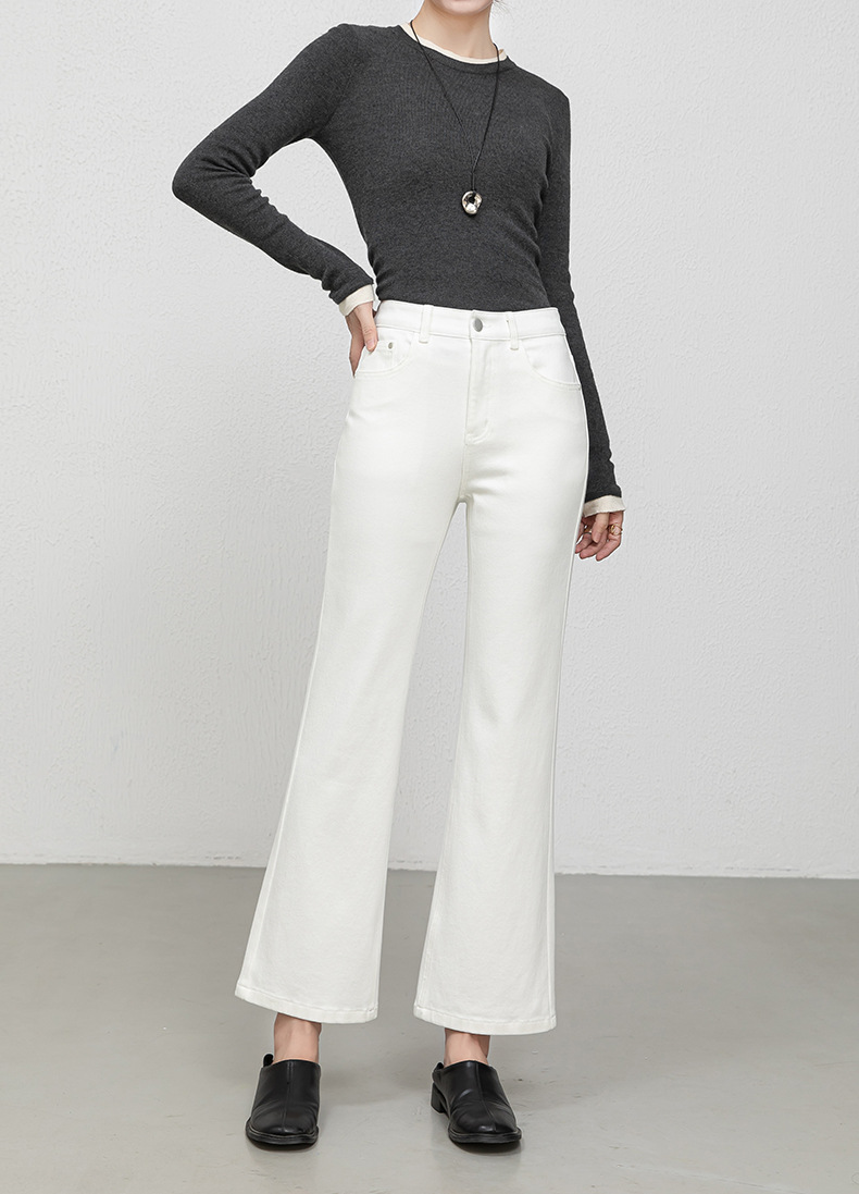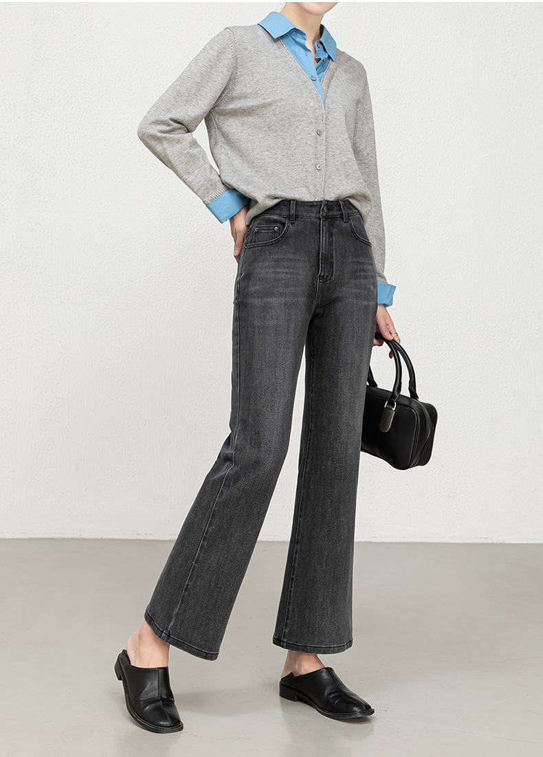 2026년 여름 신상 여성용 미드하이웨이스트 데님 마이크로 플레어 9부 팬츠, 4방향 스트레치 슬림핏 플레어 팬츠 8172