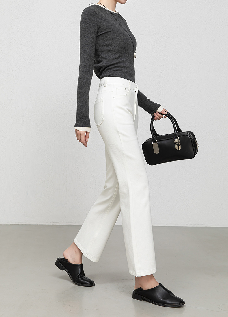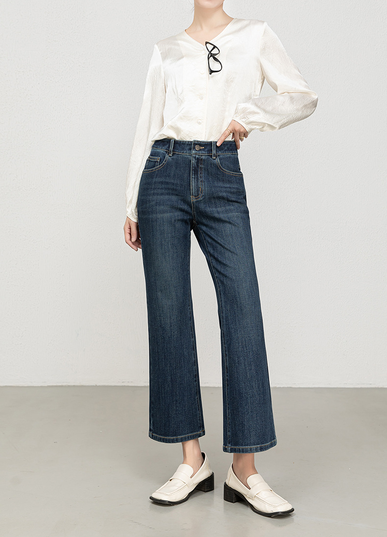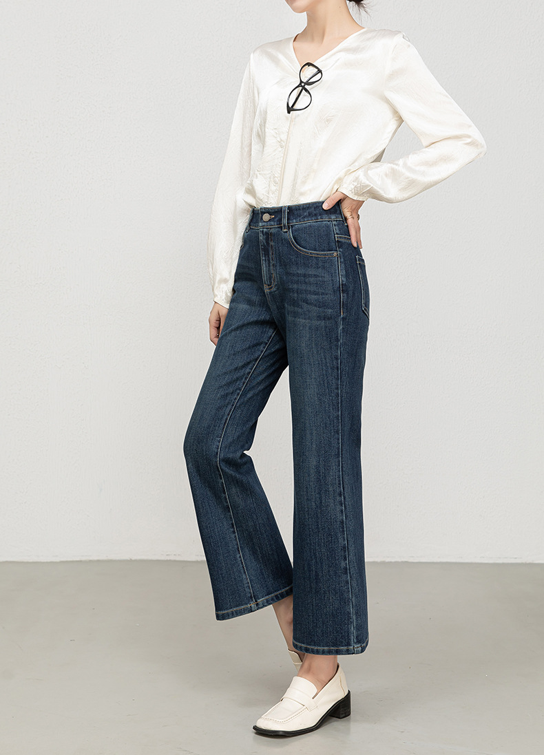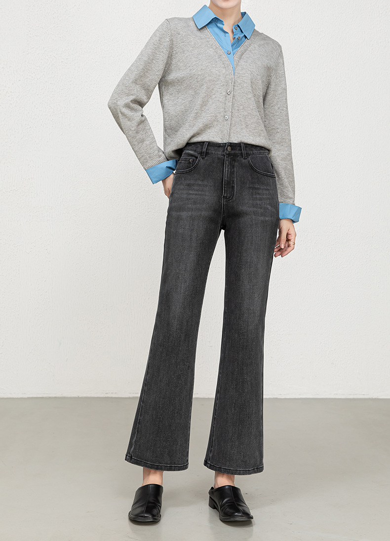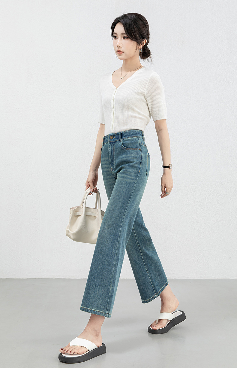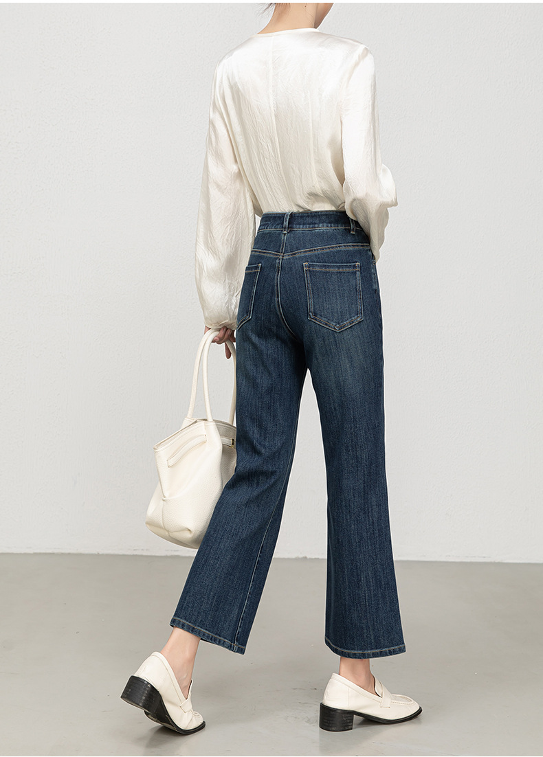 2026년 여름 신상 여성용 미드하이웨이스트 데님 마이크로 플레어 9부 팬츠, 4방향 스트레치 슬림핏 플레어 팬츠 8172