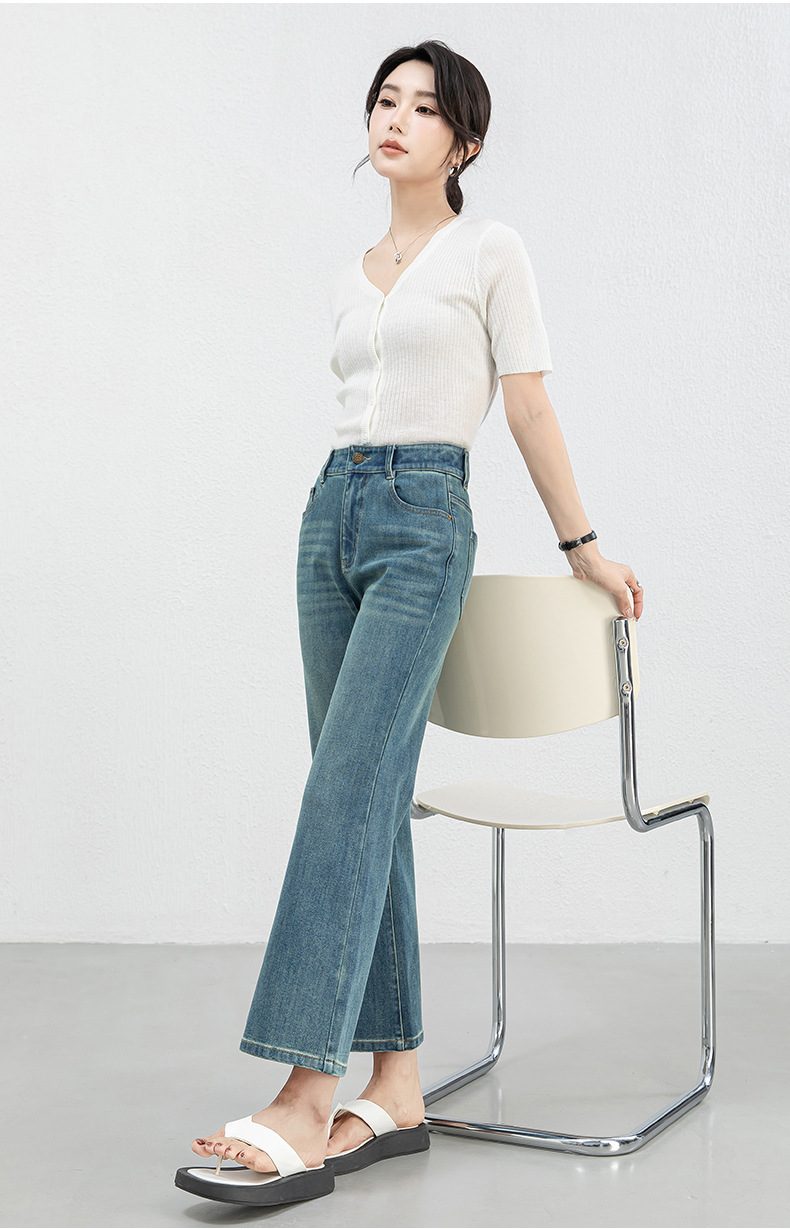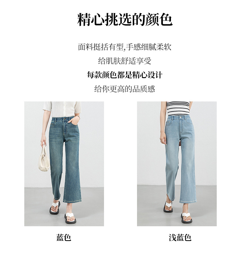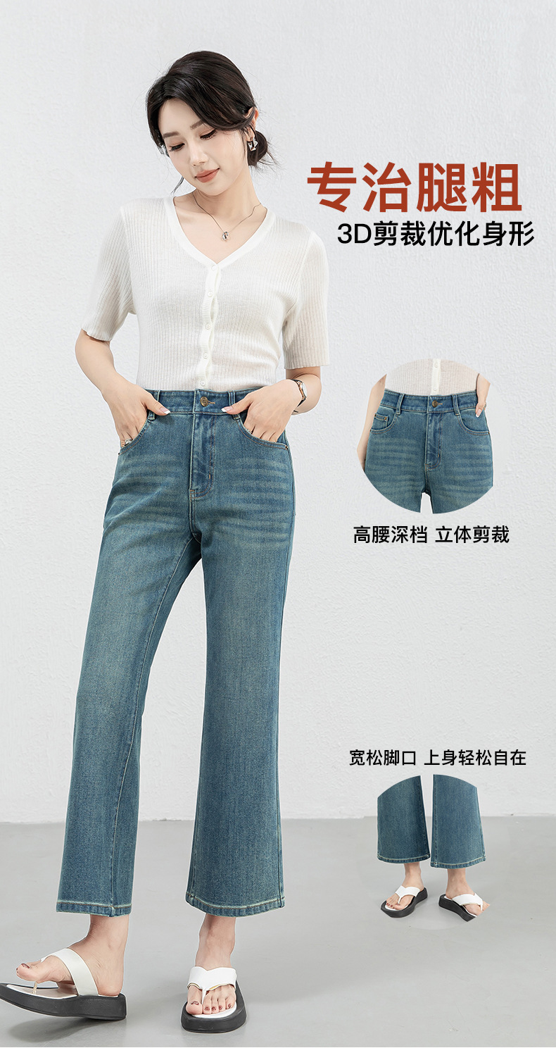 2026년 여름 신상 여성용 미드하이웨이스트 데님 마이크로 플레어 9부 팬츠, 4방향 스트레치 슬림핏 플레어 팬츠 8172스토어 가기
