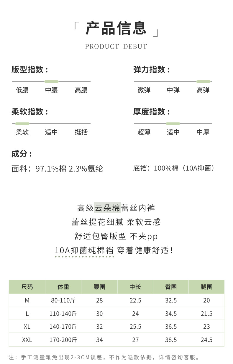 5257 # 여성용 클라우드 코튼 레이스 팬티 100kg 대형 10A 순수 코튼 바닥 가랑이 편안한 엉덩이 커버 클램핑 없음 팬티스토어 가기