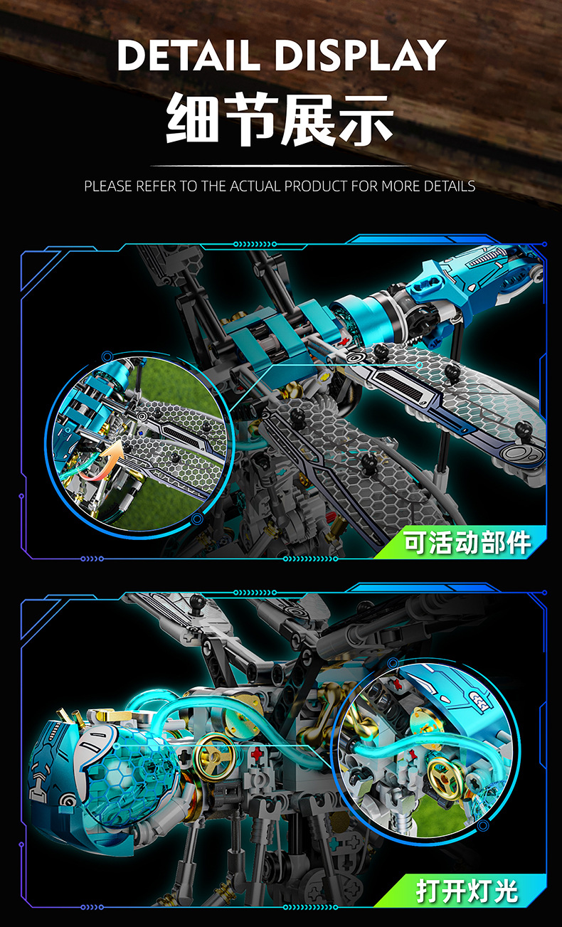 2025 새로운 곤충 건물 블록 기계 잠자리 조립 장난감 입체 퍼즐 모델 소년 생일 선물