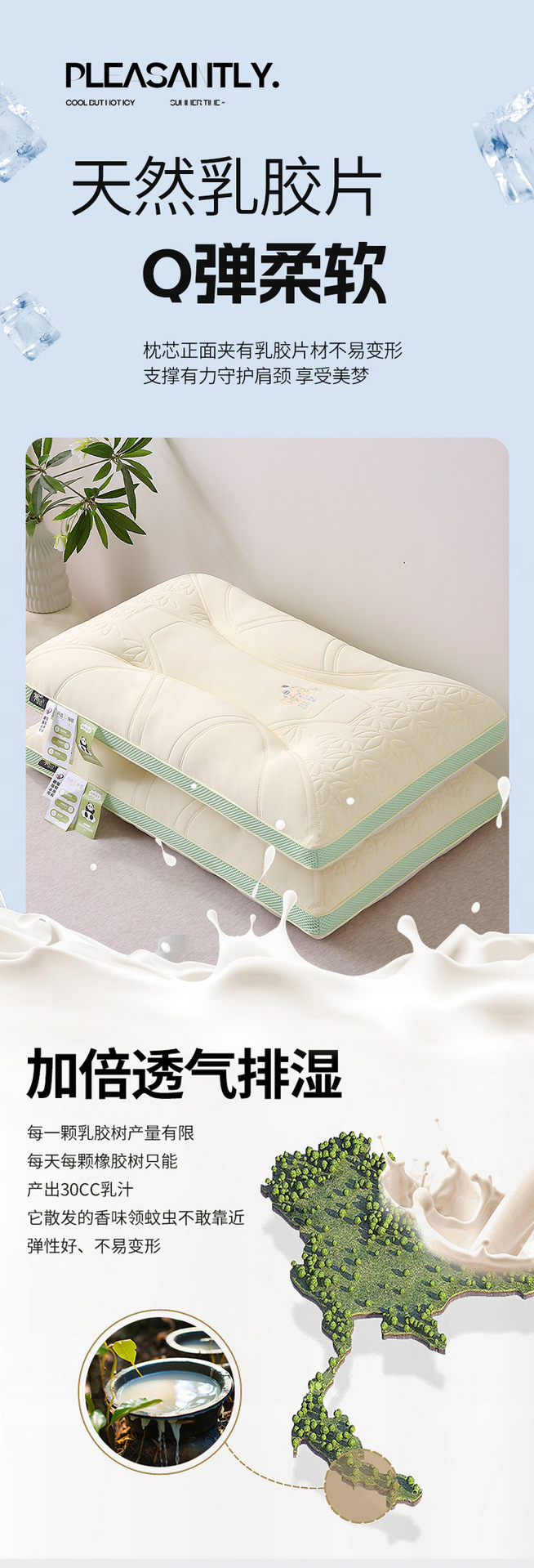 새로운 유형 A 쿨 실크 성인 목 보호 베개 핵심 항균 안티 진드기 비 형광 얼음 실크 라텍스 층 베개 코어