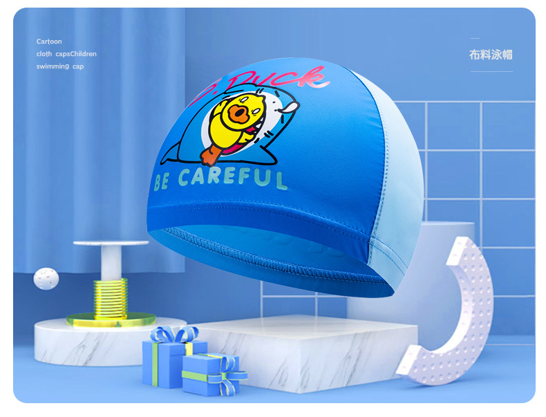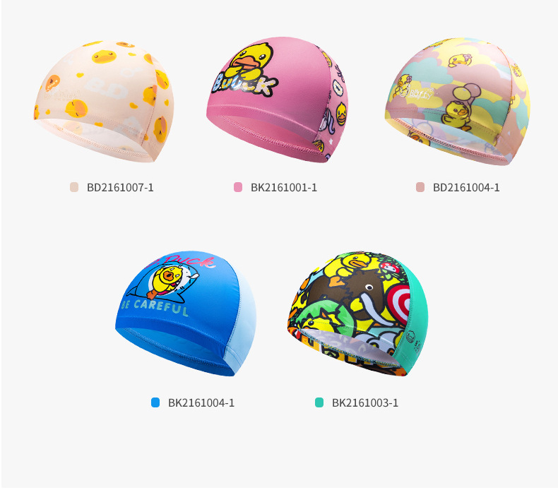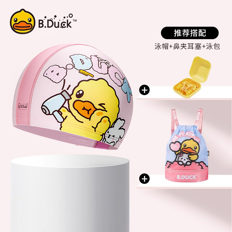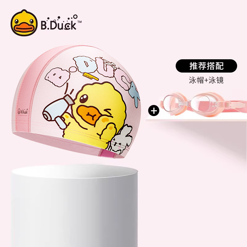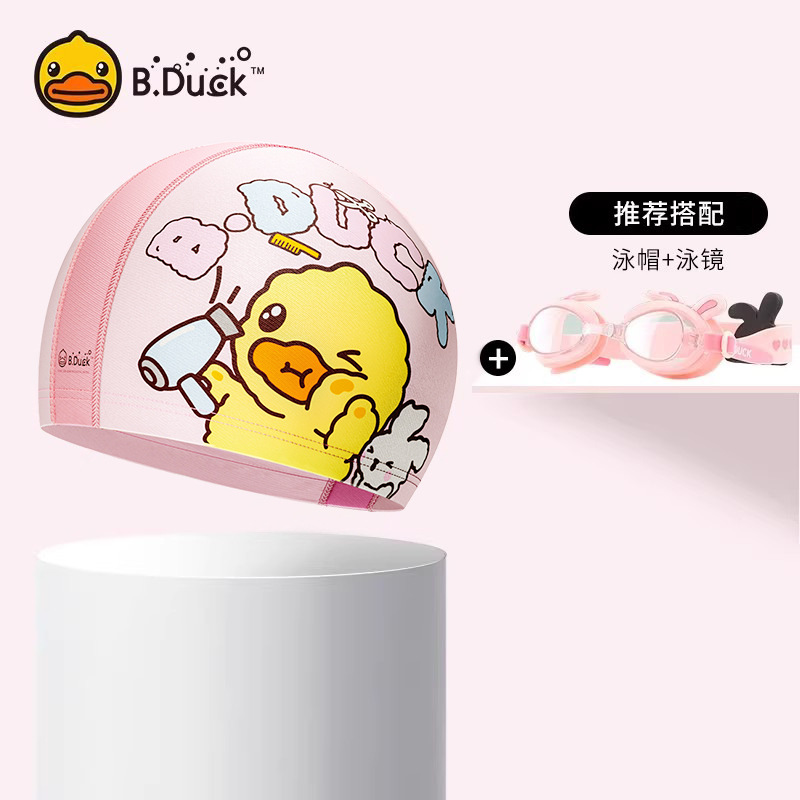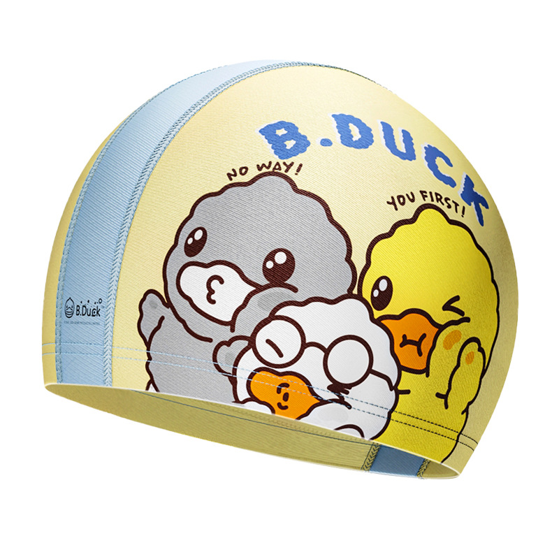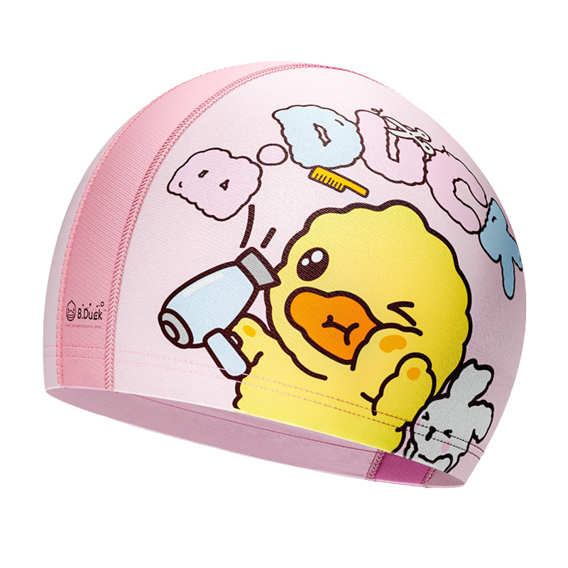 B.Duck 어린이 수영 모자 소년의 머리가 없는 자외선 차단제 새로운 귀여운 소녀의 긴 머리 전문 수영 장비스토어 가기