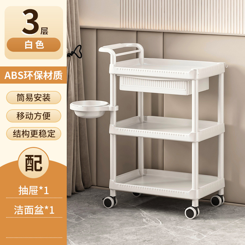 • A-1 따뜻한 흰색 다기능-82CMT-03 3단 미용 카트 + 서랍 + 세면대