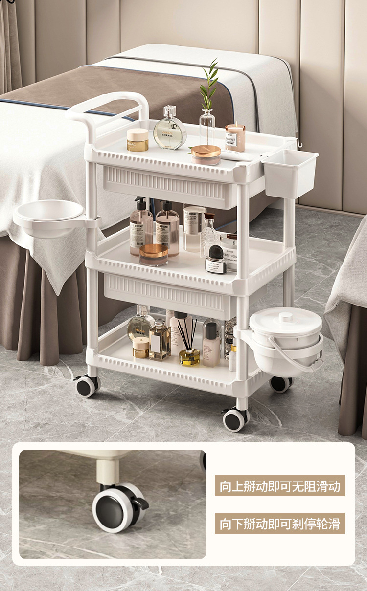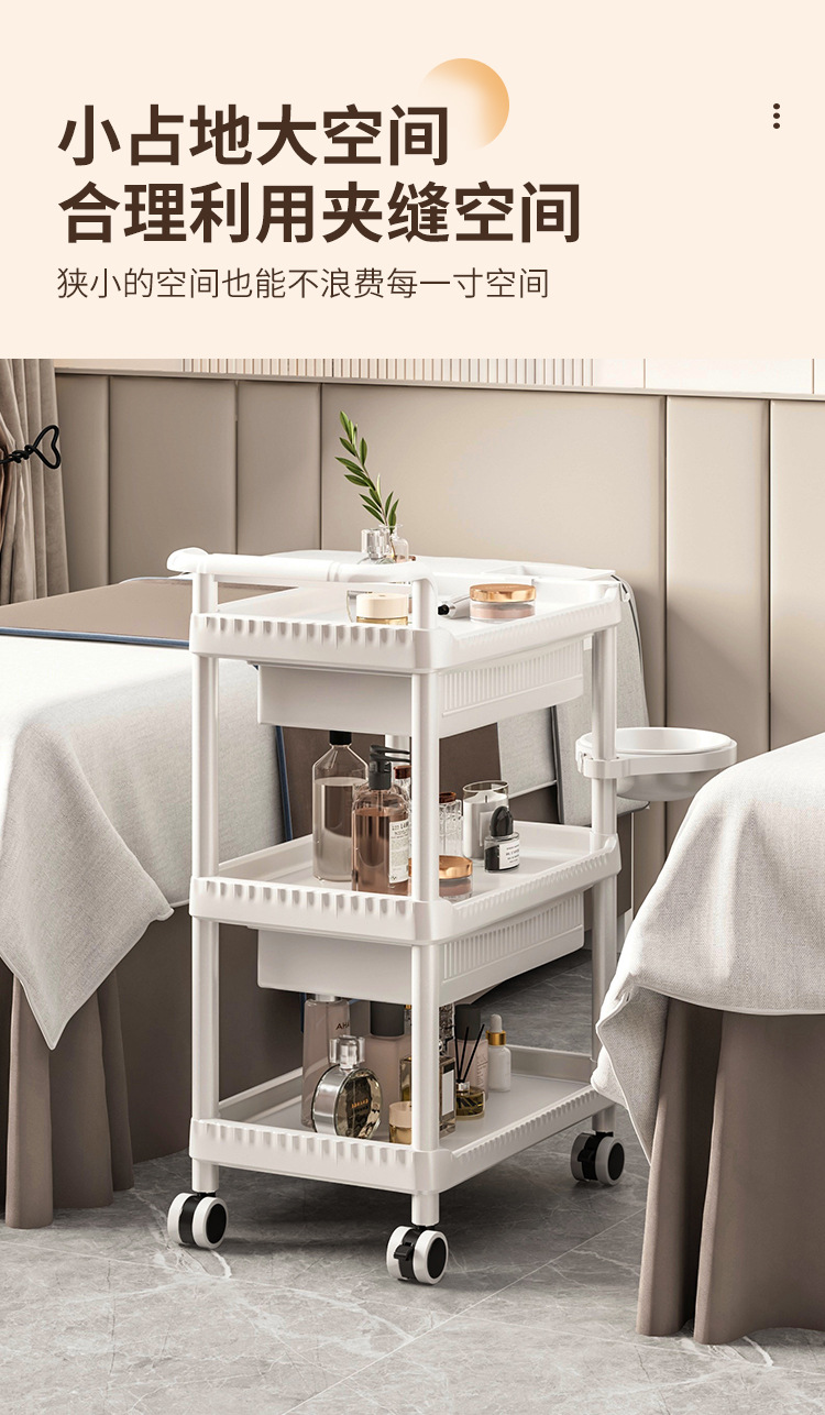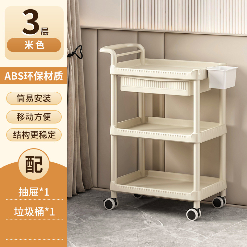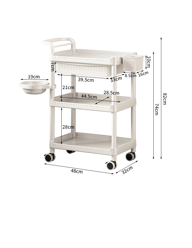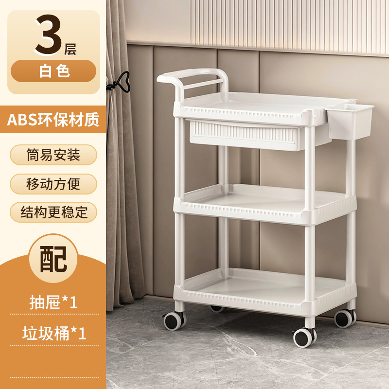 • A-1 따뜻한 흰색 다기능-82CMT-04 3단 미용 카트 + 서랍 + 쓰레기통