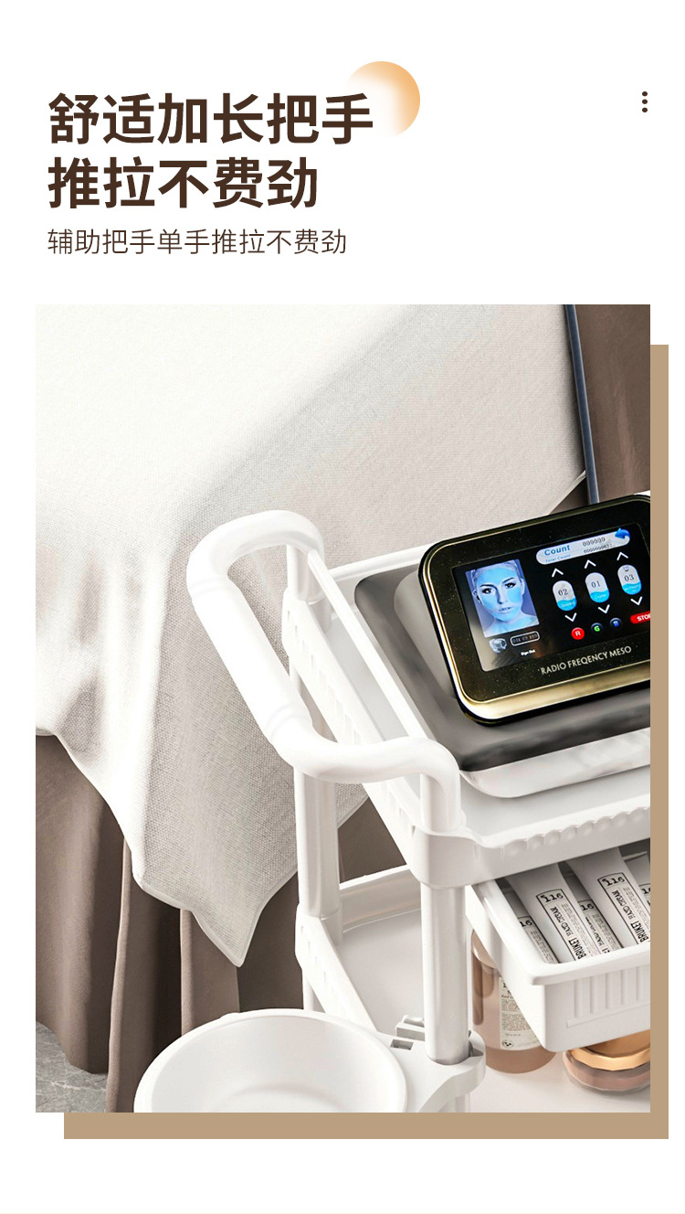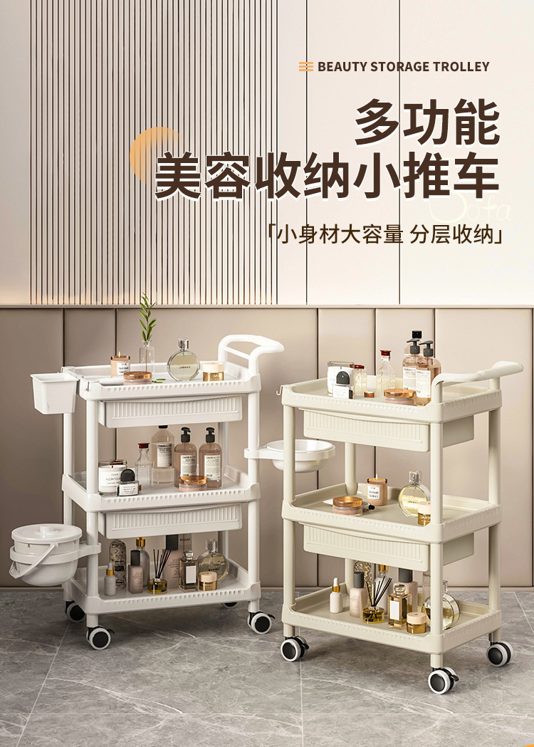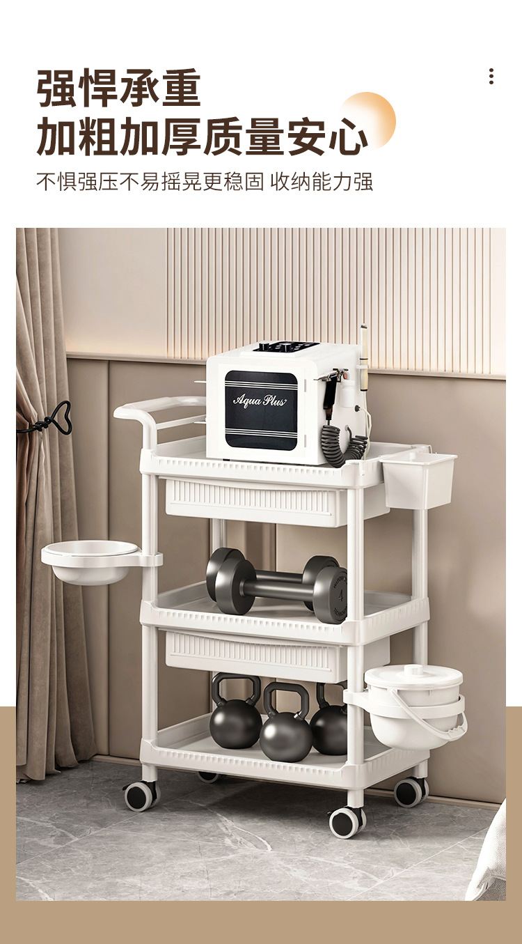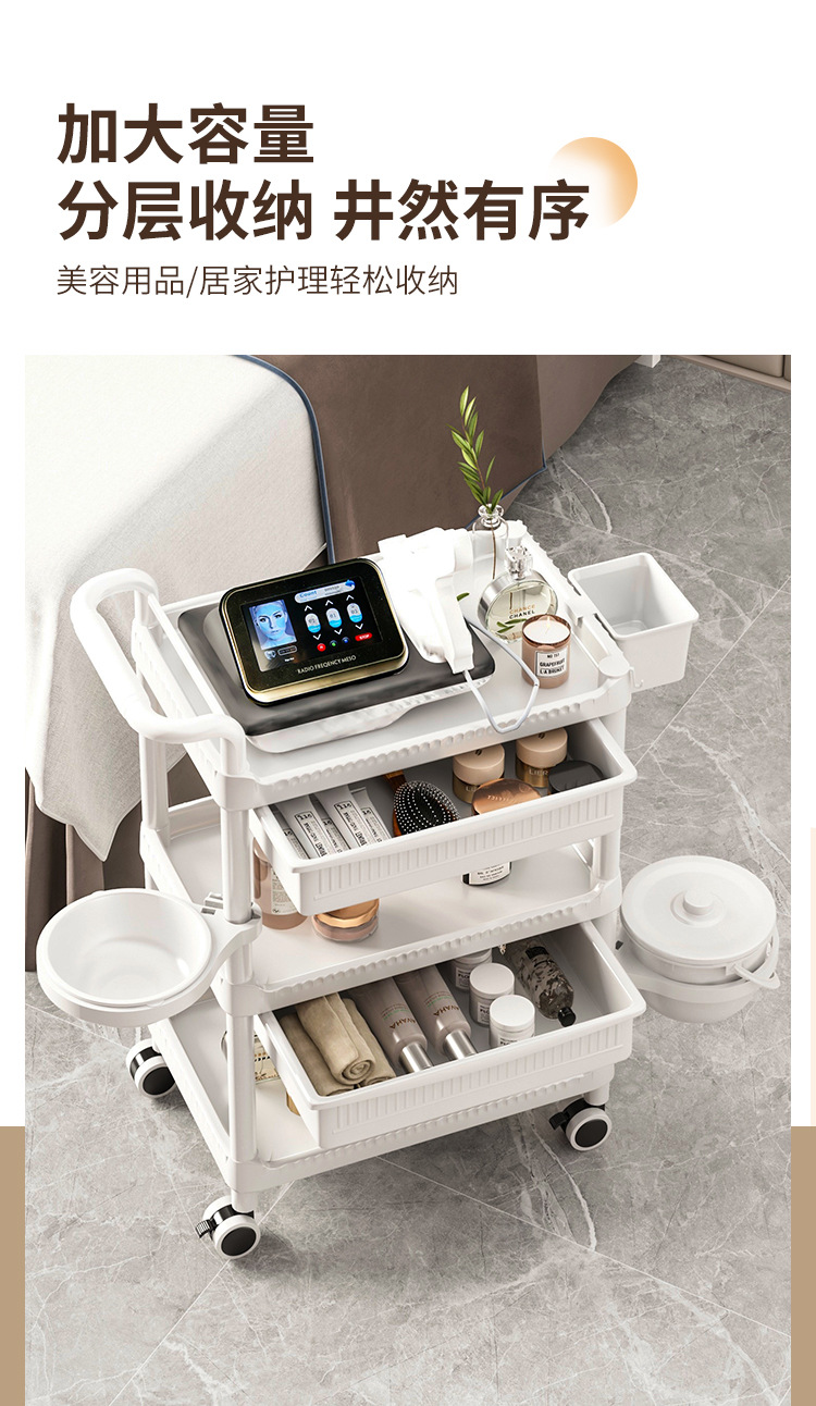 • A-1 따뜻한 흰색 다기능-82CMT-04 3단 미용 카트 + 서랍 + 쓰레기통