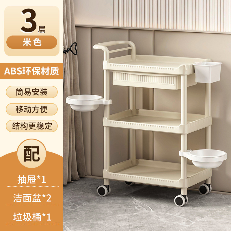 • A- 2m 노란색 샷 [ABS 재질]--82CMT-03 3단 미용 카트 + 서랍 + 세면대