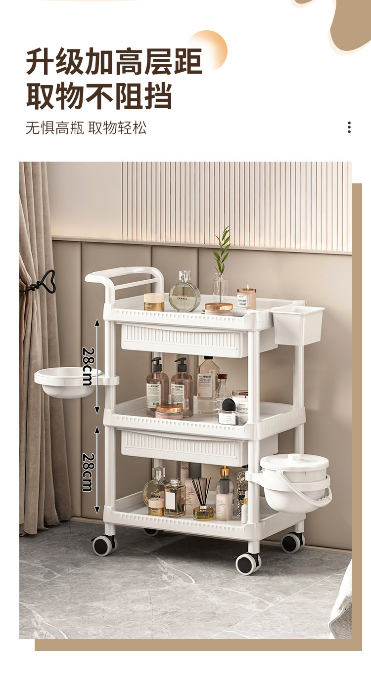 • A-1 따뜻한 흰색 다기능-82CM-3단 미용 카트 + 이중 서랍