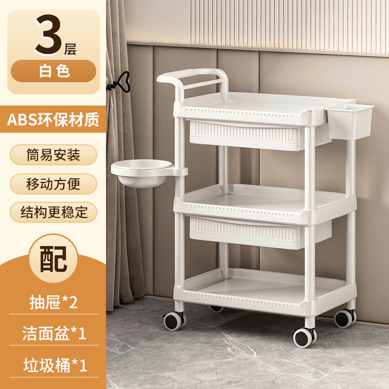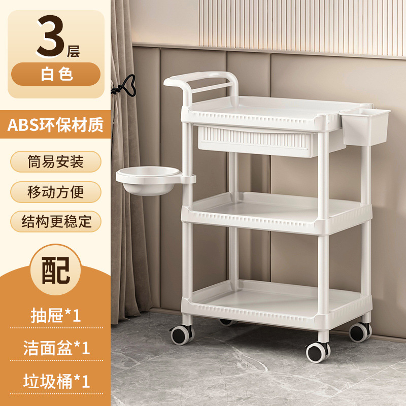 • A-1 따뜻한 흰색 다기능-82CM-3단 미용 카트+이중 서랍+쓰레기통+세면대