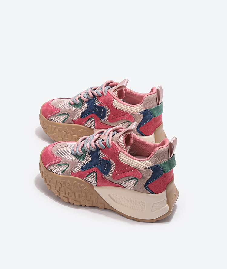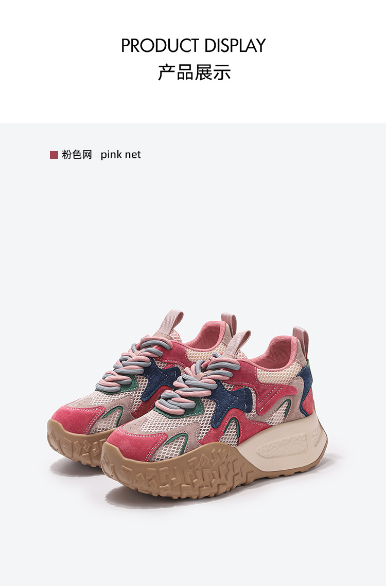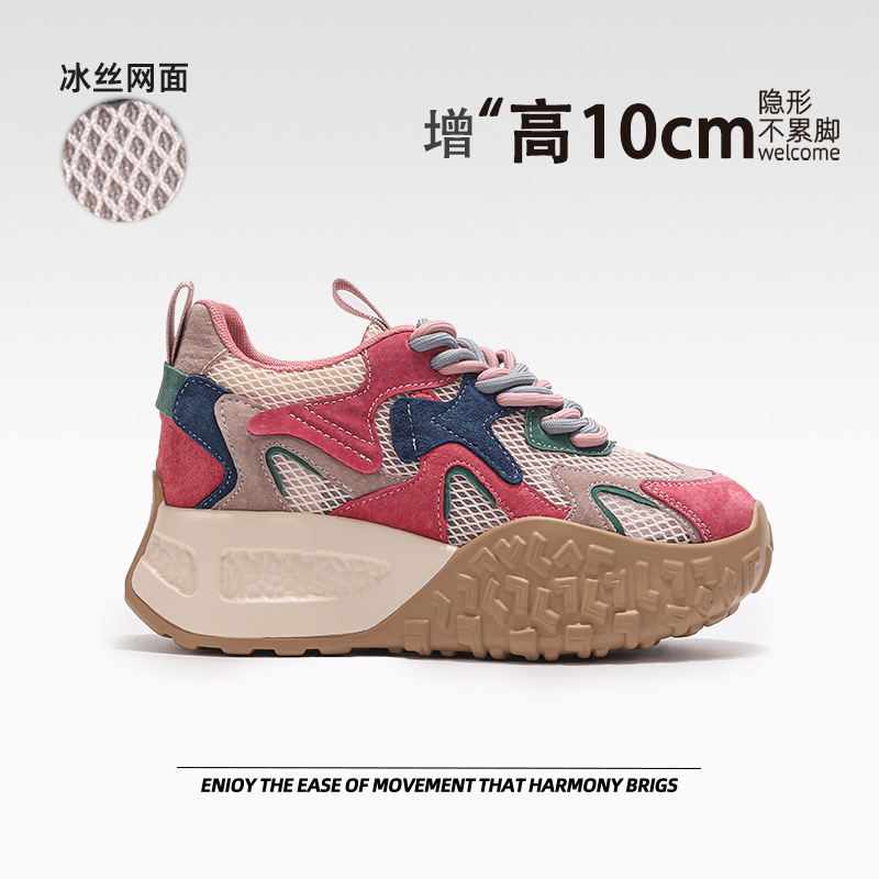 작은 두꺼운 단독 높이 증가 포레스트 검프 신발 여성의 2025 새로운 레트로 콘트라스트 컬러 메쉬 캐주얼 스포츠 패션 아빠스토어 가기