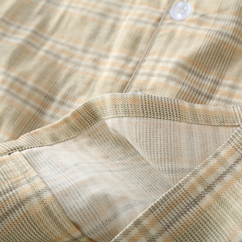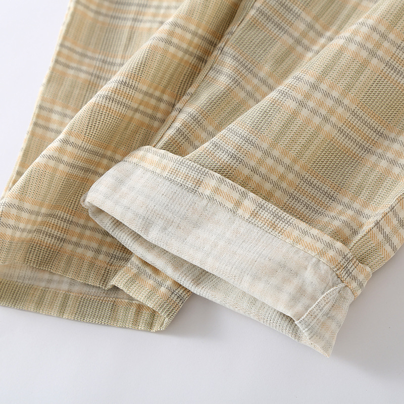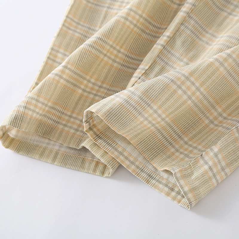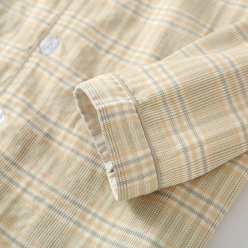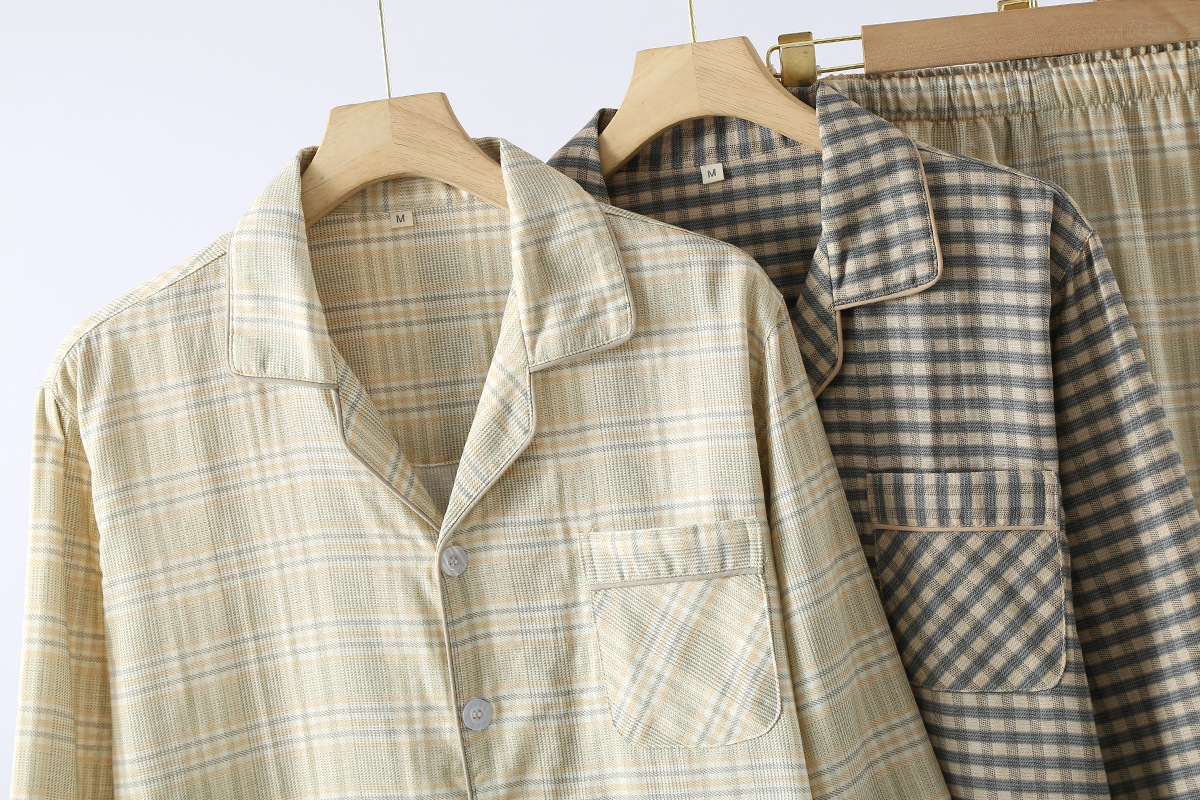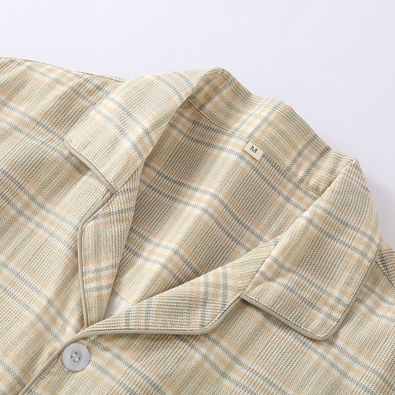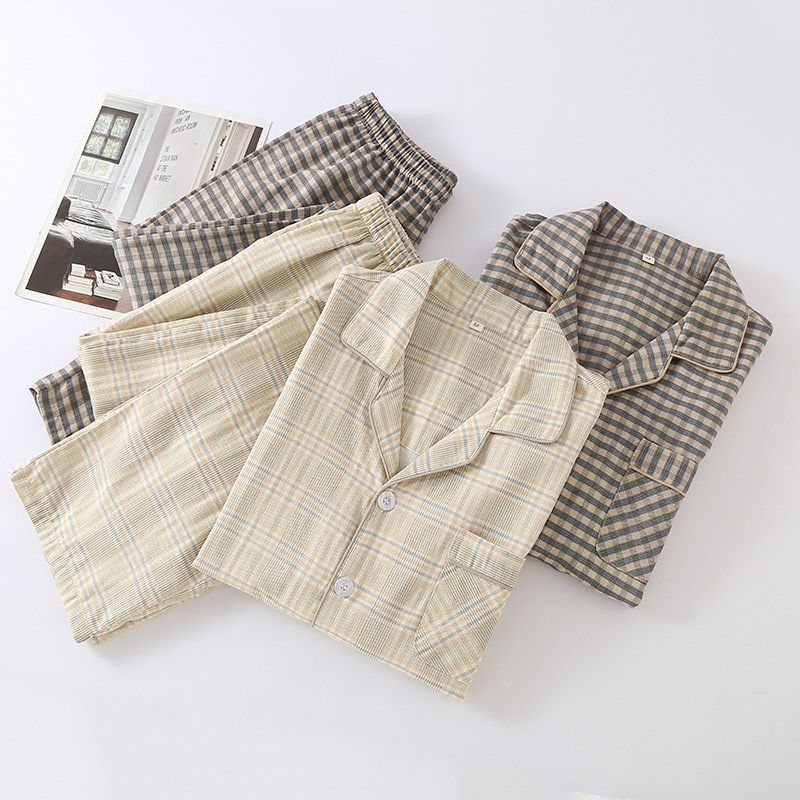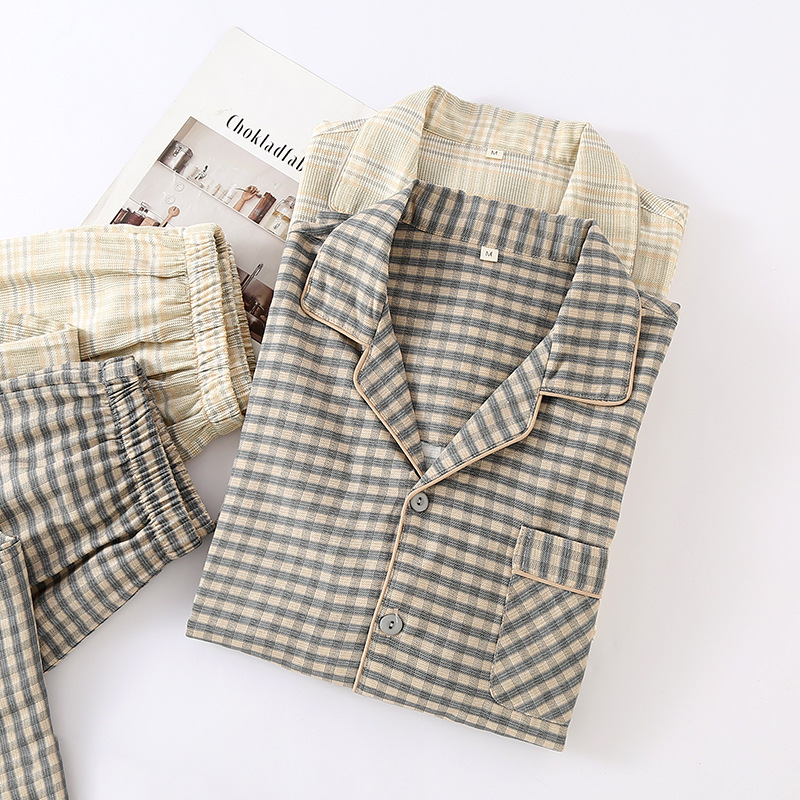 일본 격자 무늬 커플 잠옷 남자의 봄과 가을 순면 얇은 여름 남자의 가을과 겨울 긴 소매 홈 의류 세트