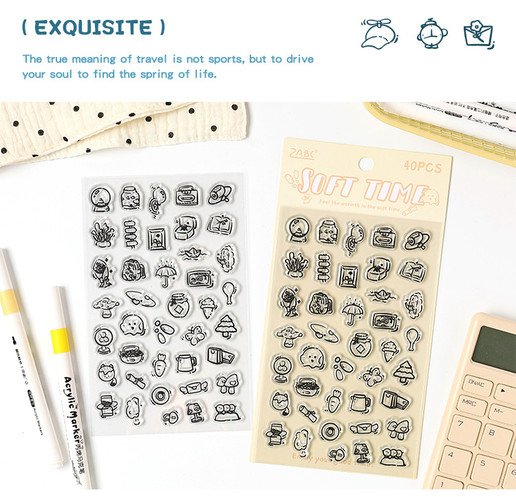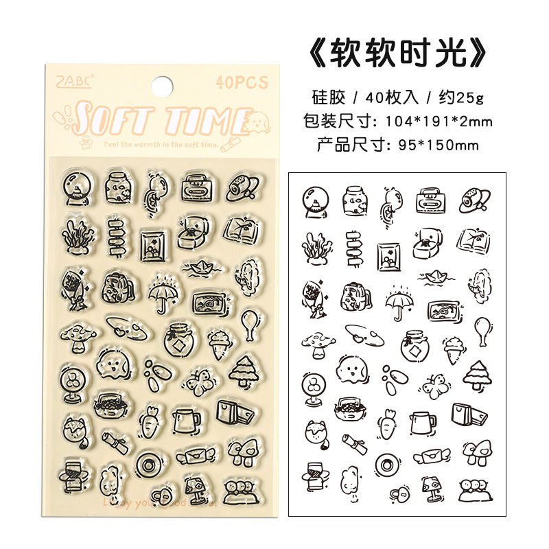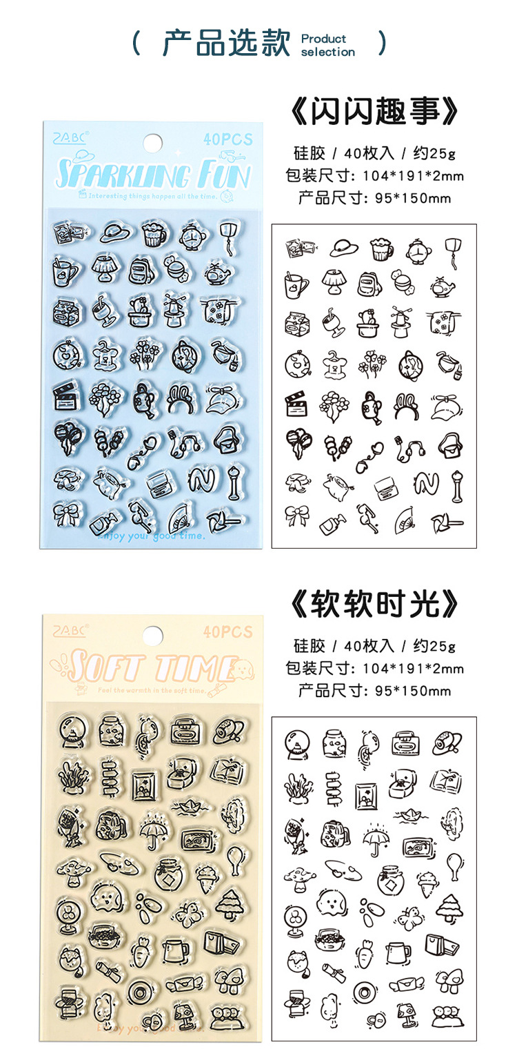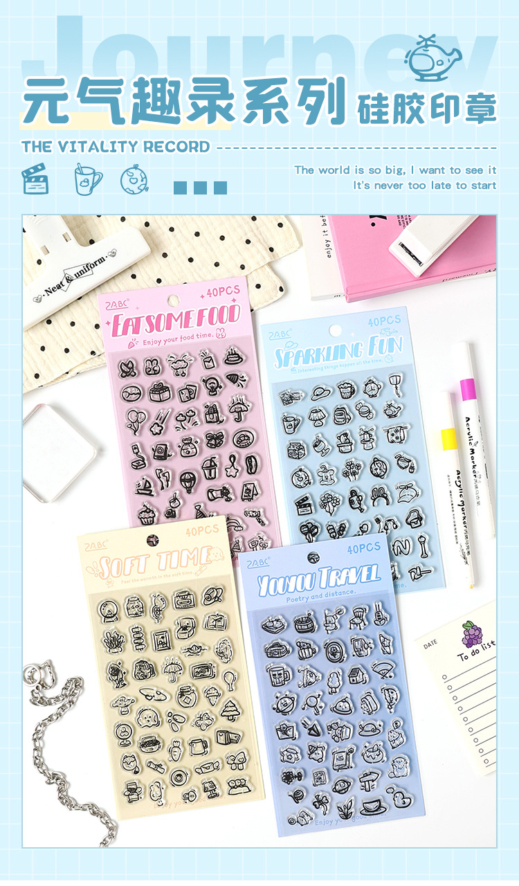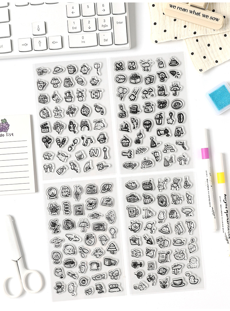 Yuanqi Qulu 투명 실리콘 스탬프 국경 간 복고풍 작은 물건 핸드북 스탬프 diy 재미있는 스탬프 인쇄스토어 가기