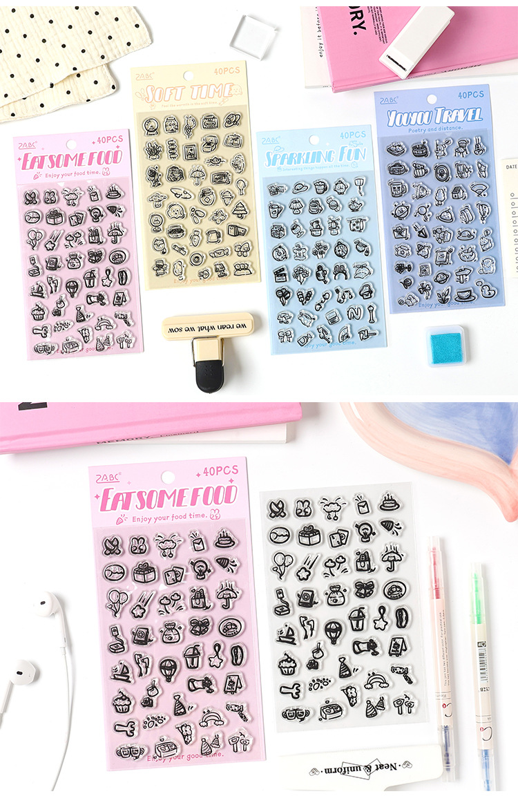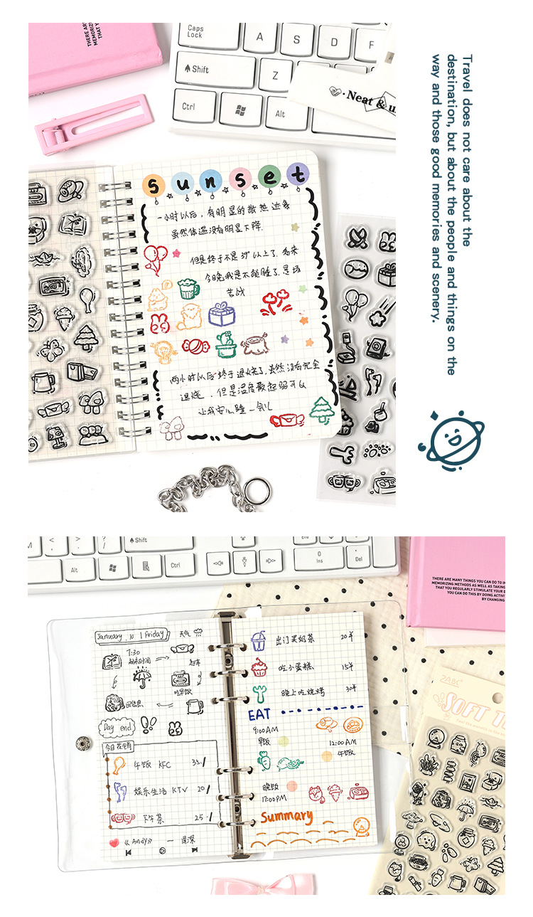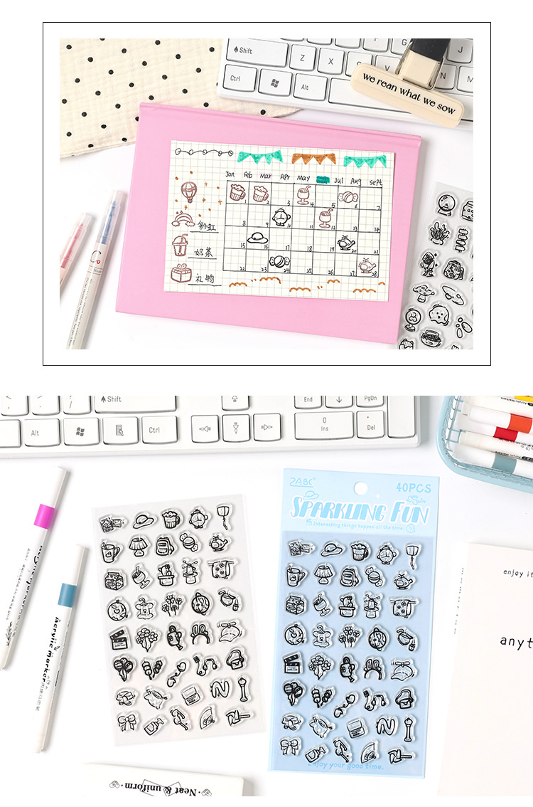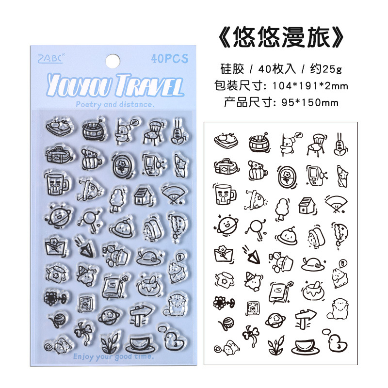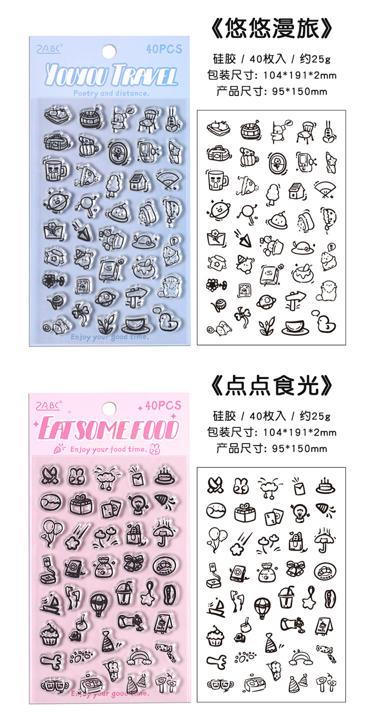 Yuanqi Qulu 투명 실리콘 스탬프 국경 간 복고풍 작은 물건 핸드북 스탬프 diy 재미있는 스탬프 인쇄스토어 가기