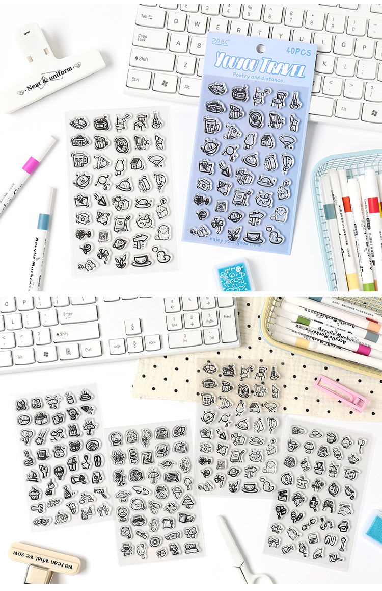 Yuanqi Qulu 투명 실리콘 스탬프 국경 간 복고풍 작은 물건 핸드북 스탬프 diy 재미있는 스탬프 인쇄