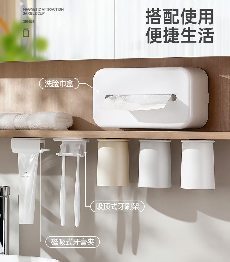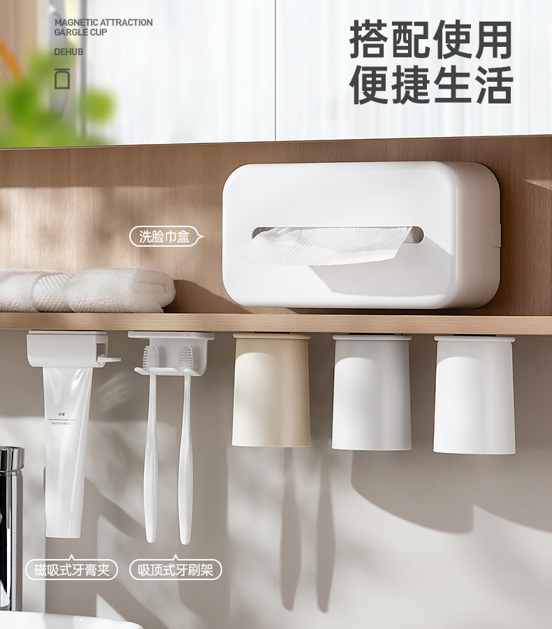 자석식 세척컵 2025년 신형 양치컵 가정용 거꾸로 걸이형 칫솔 보관대