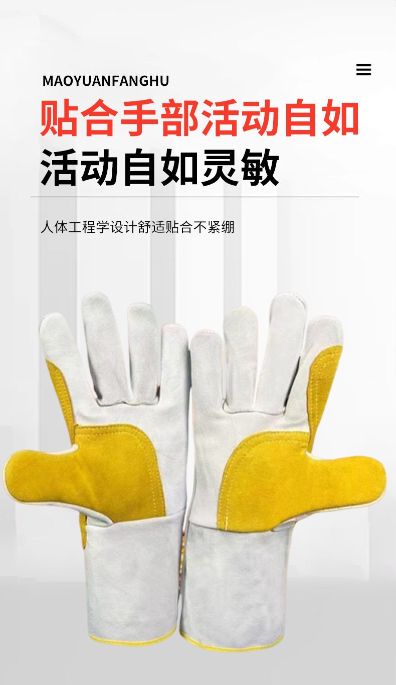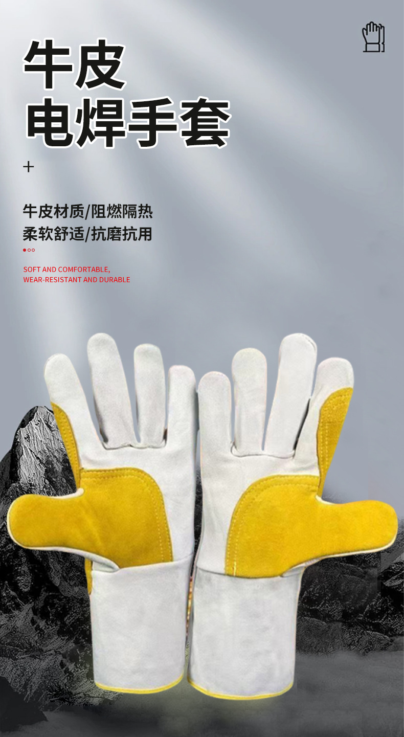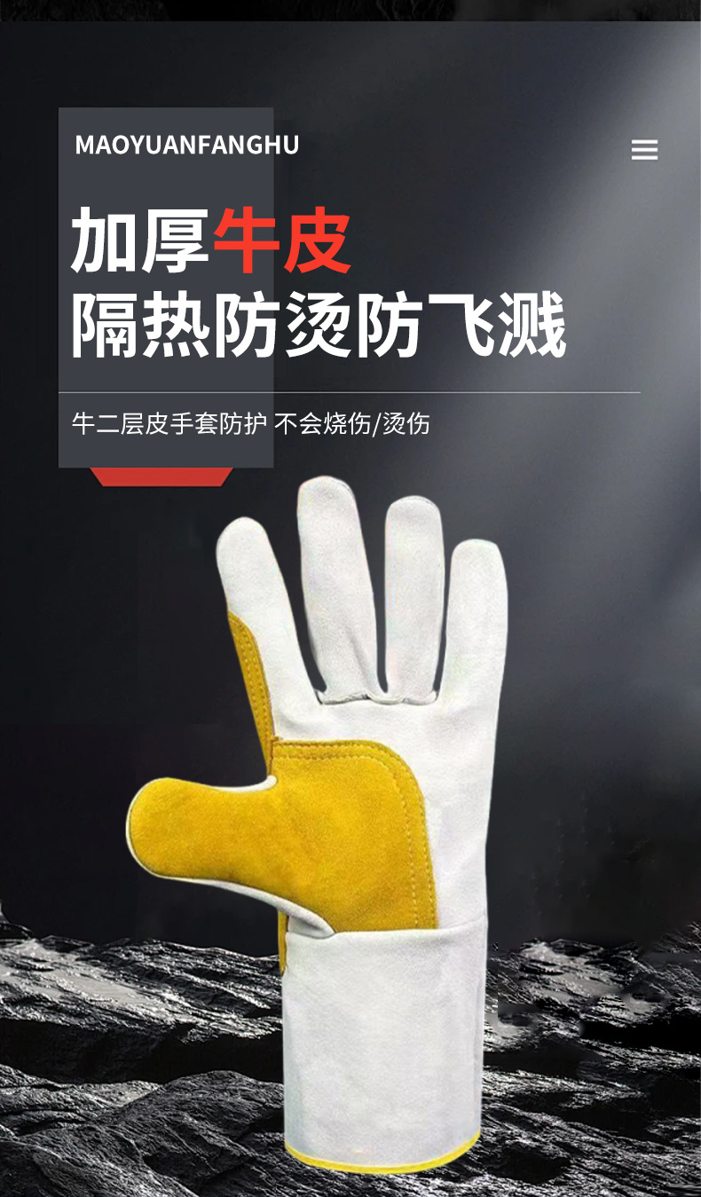 공장 직접 공급 용접 장갑 소가죽 내화성 이중층 두껍고 길어진 용접 장갑은 고온 및 화상 방지에 강합니다.스토어 가기