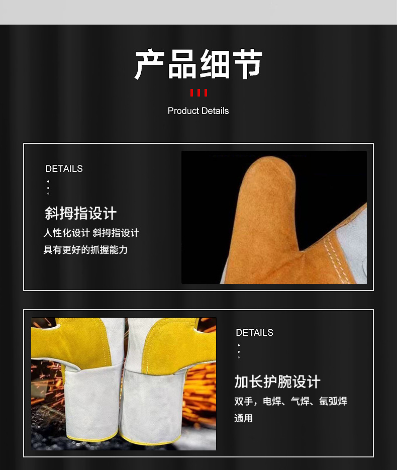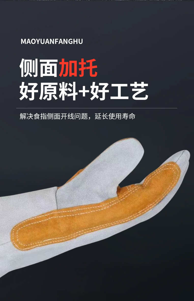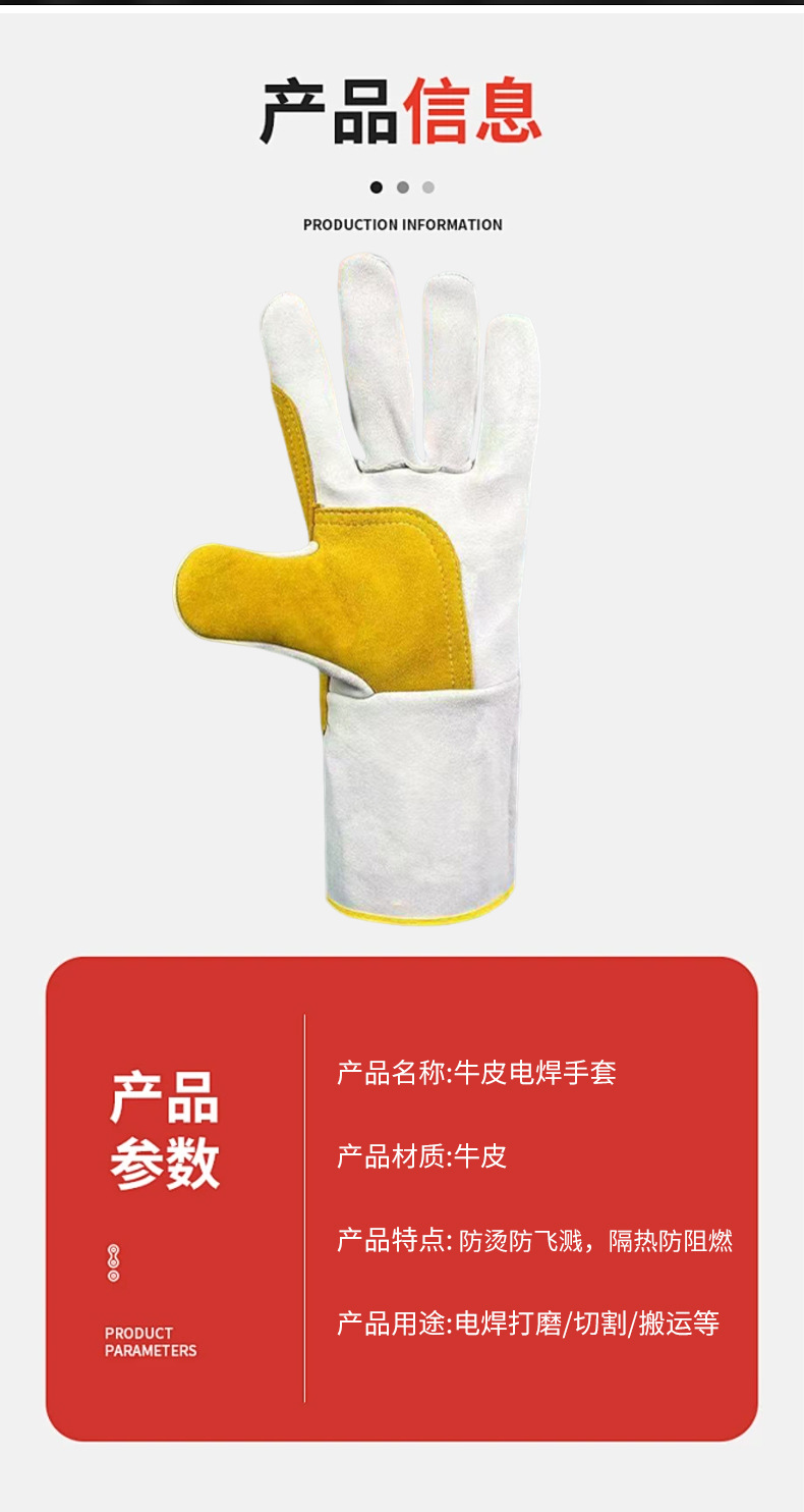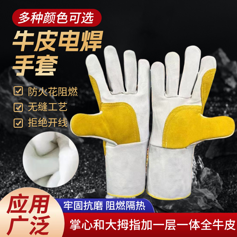 공장 직접 공급 용접 장갑 소가죽 내화성 이중층 두껍고 길어진 용접 장갑은 고온 및 화상 방지에 강합니다.스토어 가기