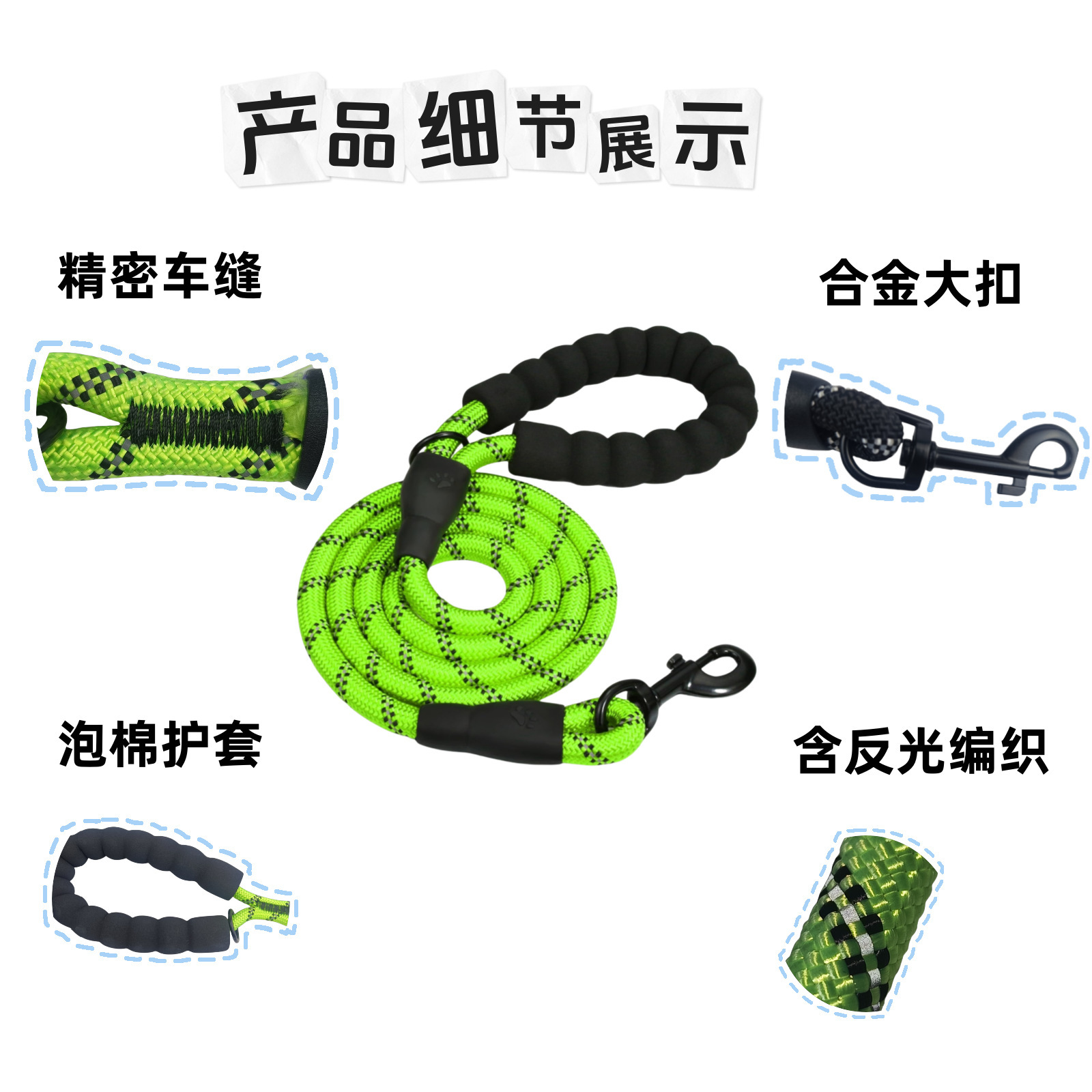 아마존 견인 로프 나일론 반사 원형 로프 도매 중형 및 대형견 산책용 로프 분실 방지용 개 목줄스토어 가기