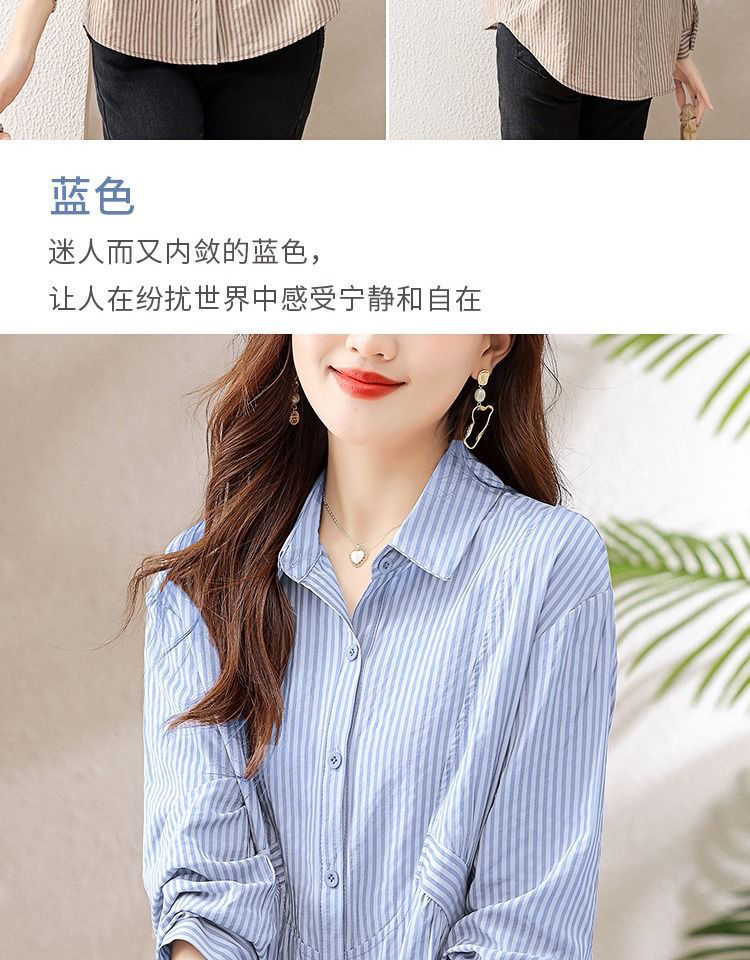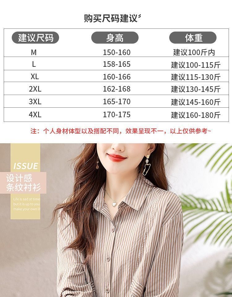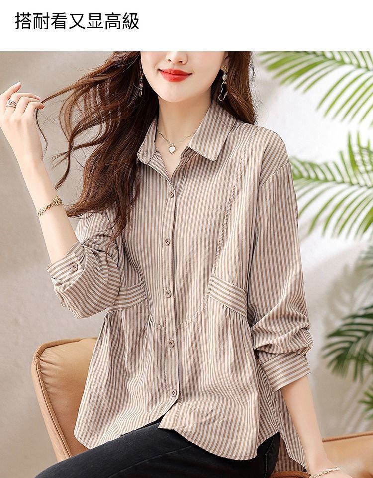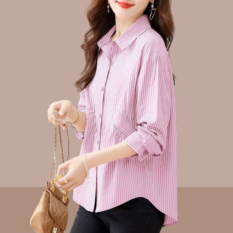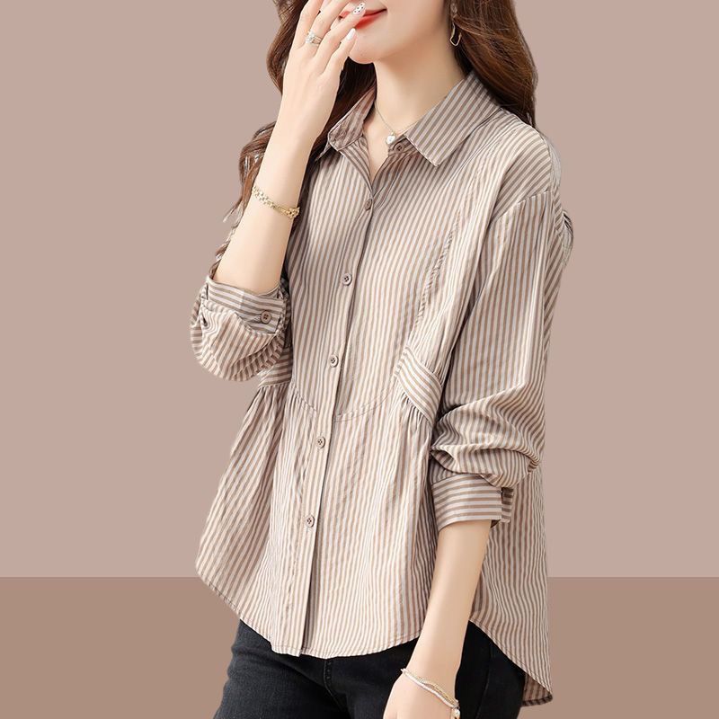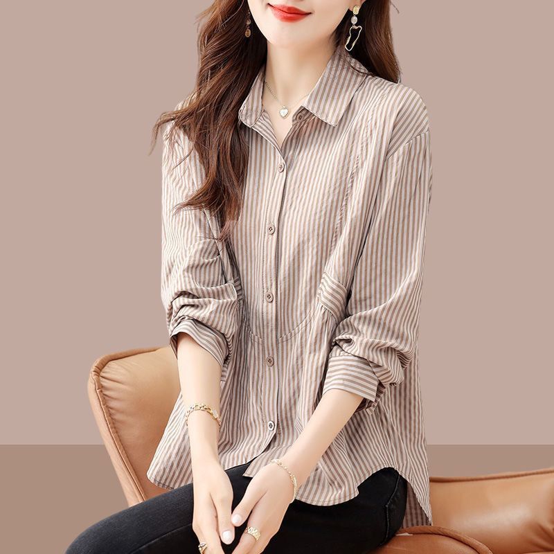 여성 셔츠 2025 봄과 가을 새로운 디자인 센스 틈새 최고 패션 세련된 배 덮개 슬림 줄무늬 셔츠스토어 가기