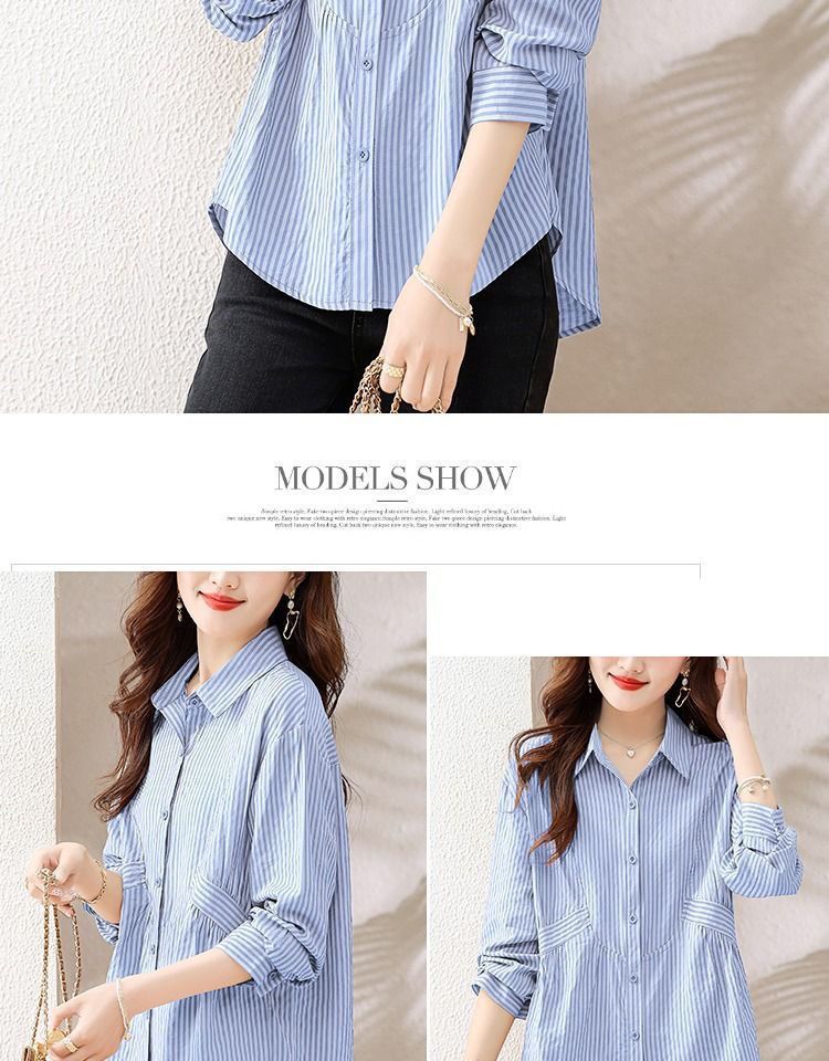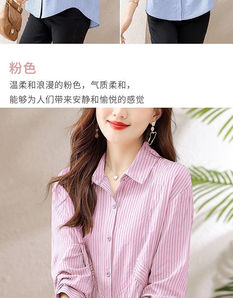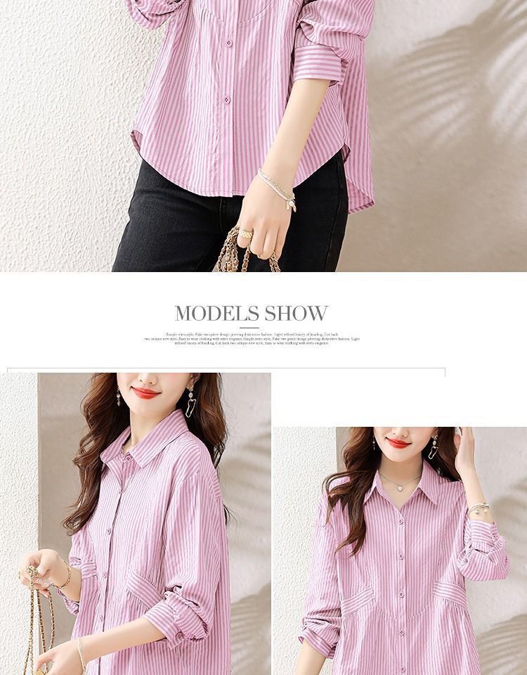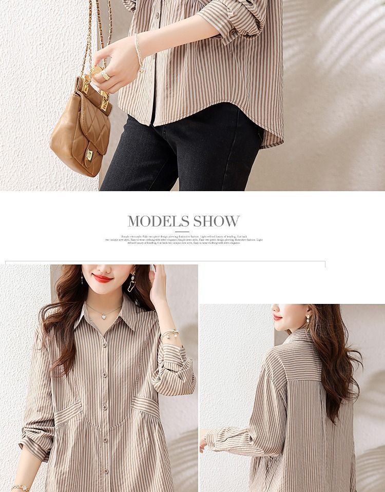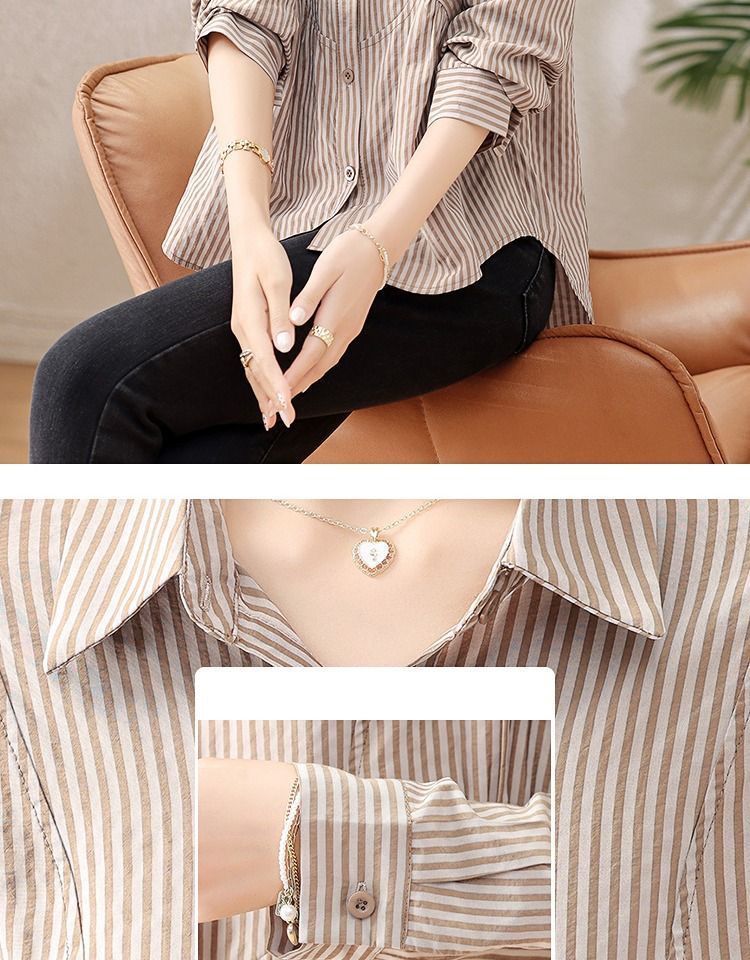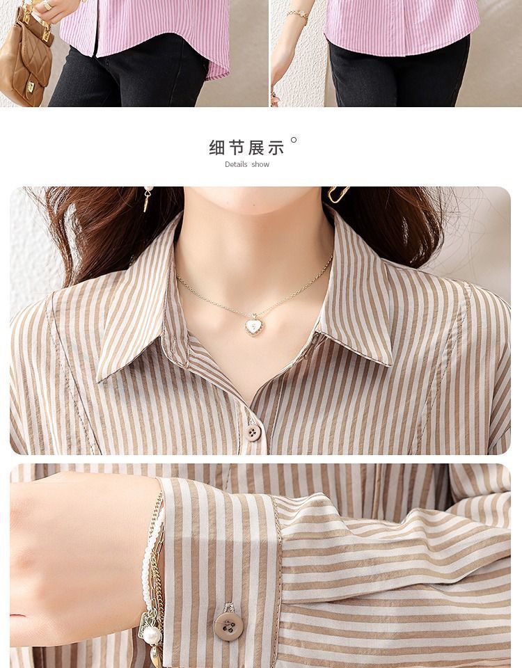 여성 셔츠 2025 봄과 가을 새로운 디자인 센스 틈새 최고 패션 세련된 배 덮개 슬림 줄무늬 셔츠스토어 가기