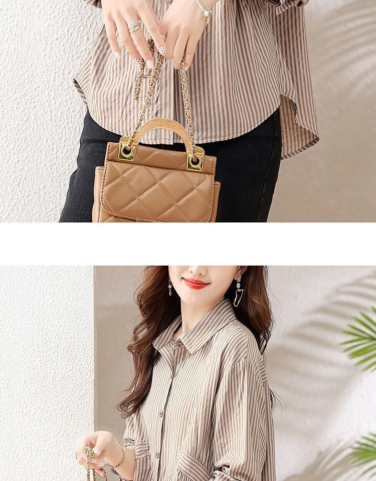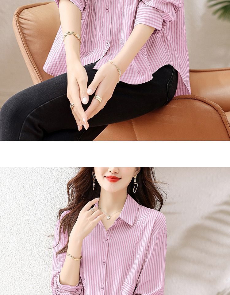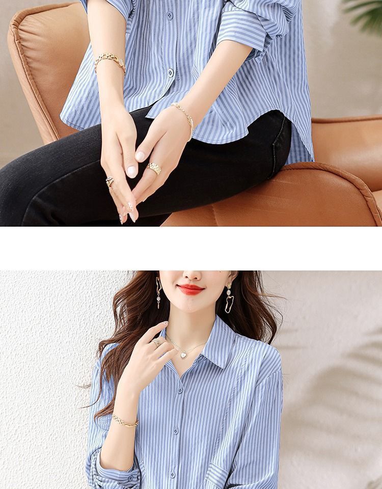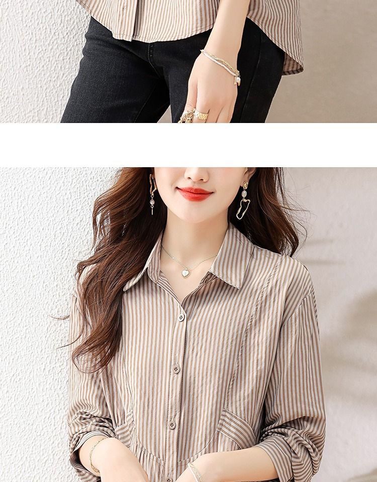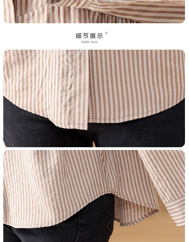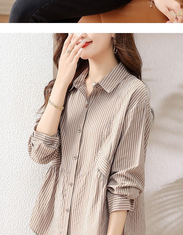여성 셔츠 2025 봄과 가을 새로운 디자인 센스 틈새 최고 패션 세련된 배 덮개 슬림 줄무늬 셔츠스토어 가기