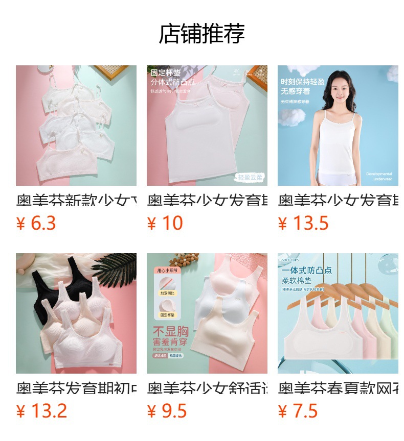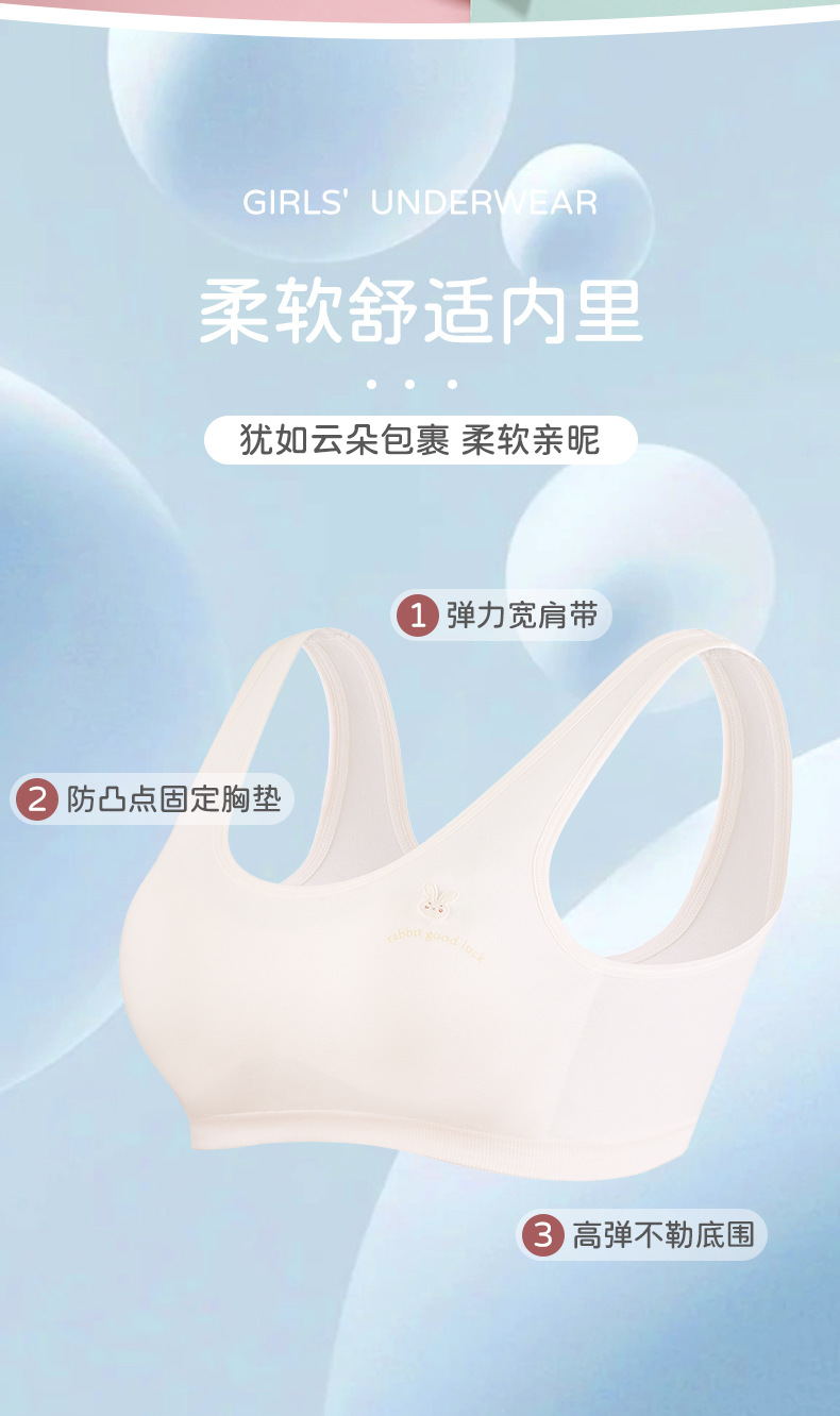 여아용 브라, 심리스 고정컵, 발달기, 돌출방지, 아름다운 등, 넓은 어깨조끼, 중학생 스포츠 베이스 속옷스토어 가기