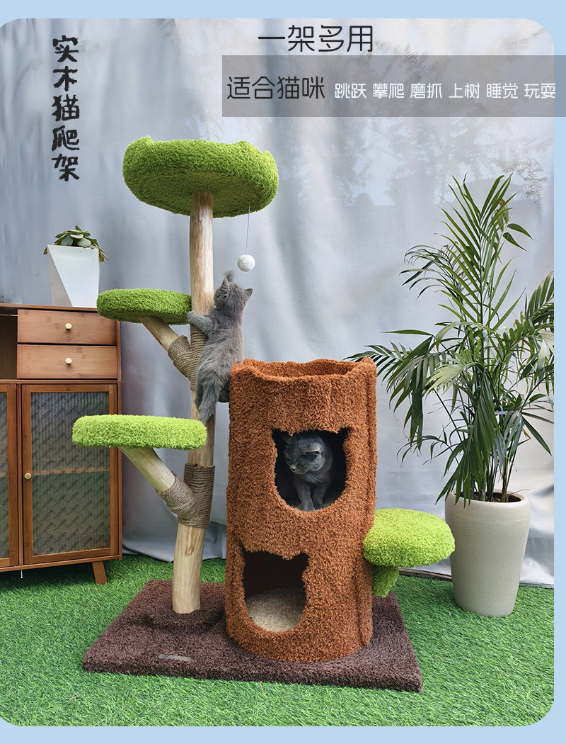 원목 고양이 클라이밍 프레임, 고양이 둥지, 고양이 트리, 일체형, 공간 절약형, 사이잘라 고양이 점프 플랫폼, 고양이 장난감, 나무 구멍 시리즈