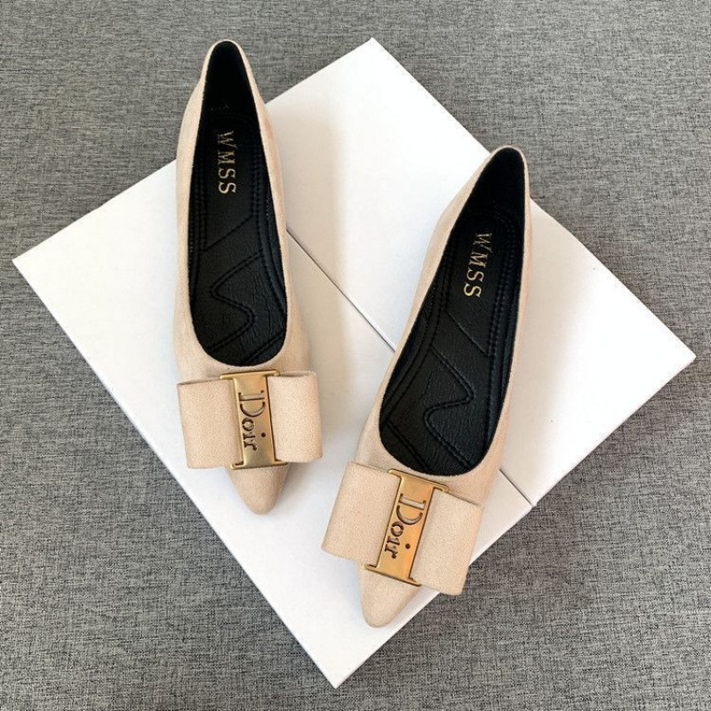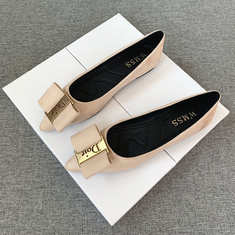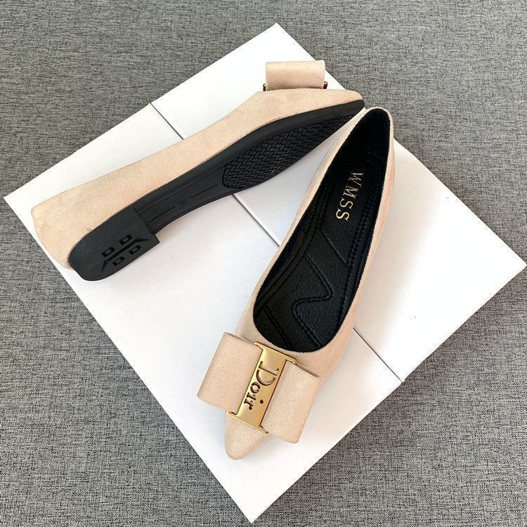 여성용 플랫 슈즈 2025 새로운 여름 스타일 다용도 중공 얕은 입 뾰족한 신발 부드러운 가죽 사계절 슈즈 부드러운 밑창 비니 신발