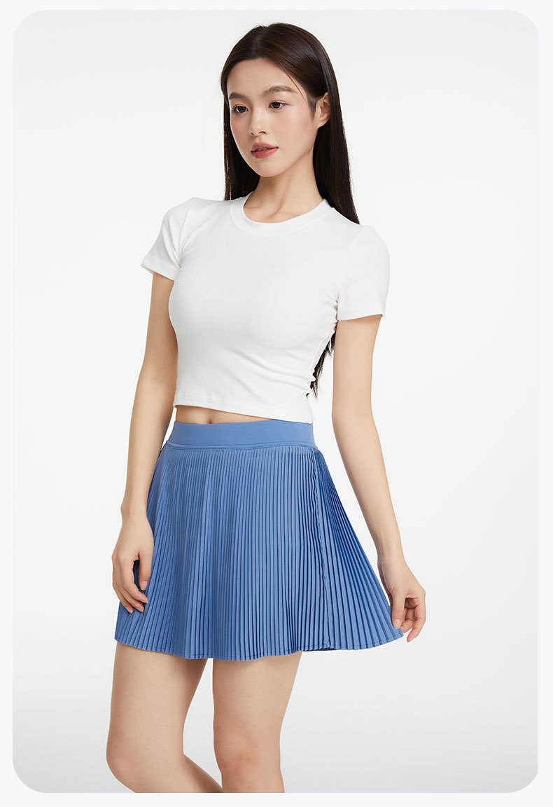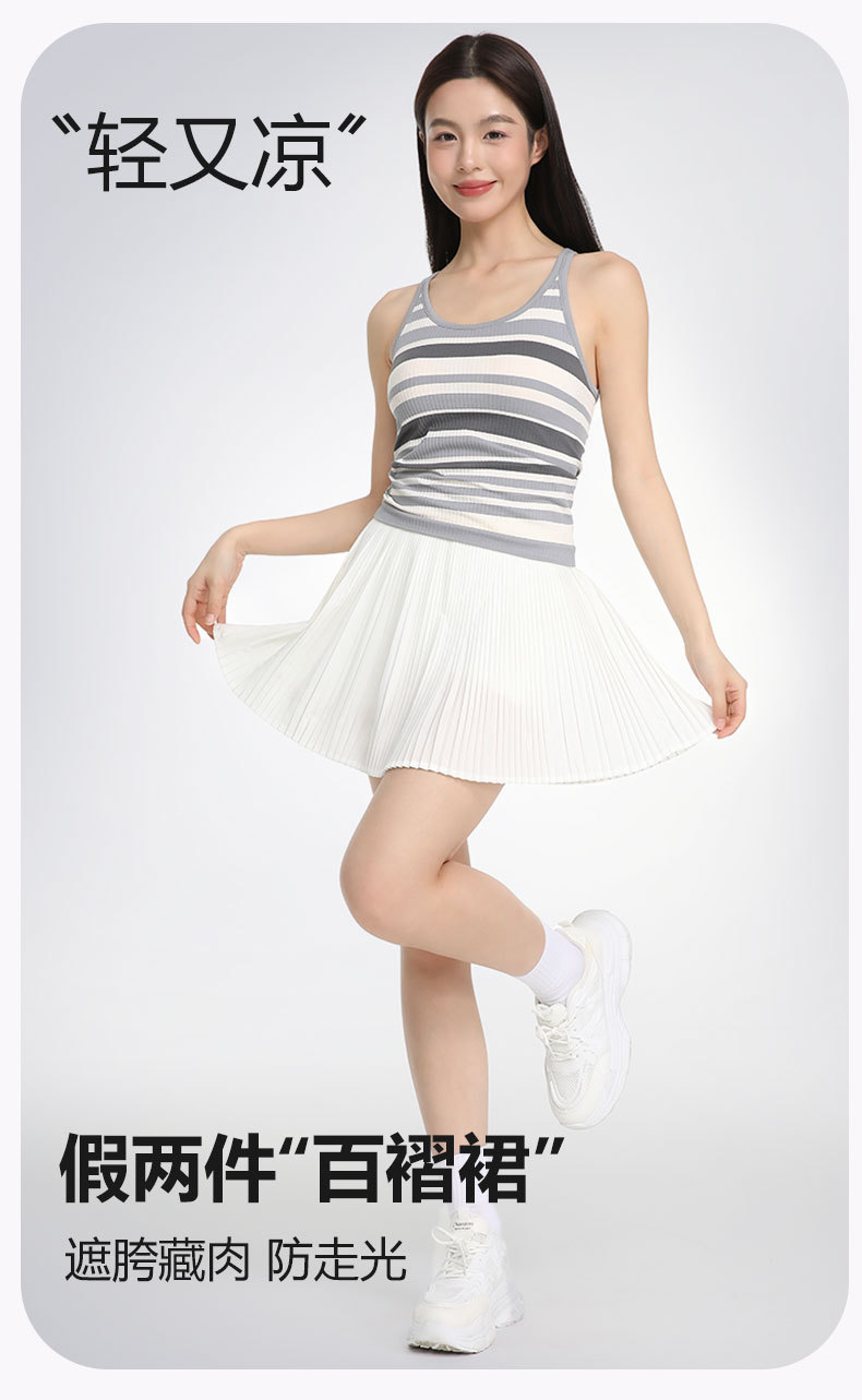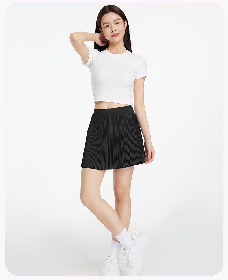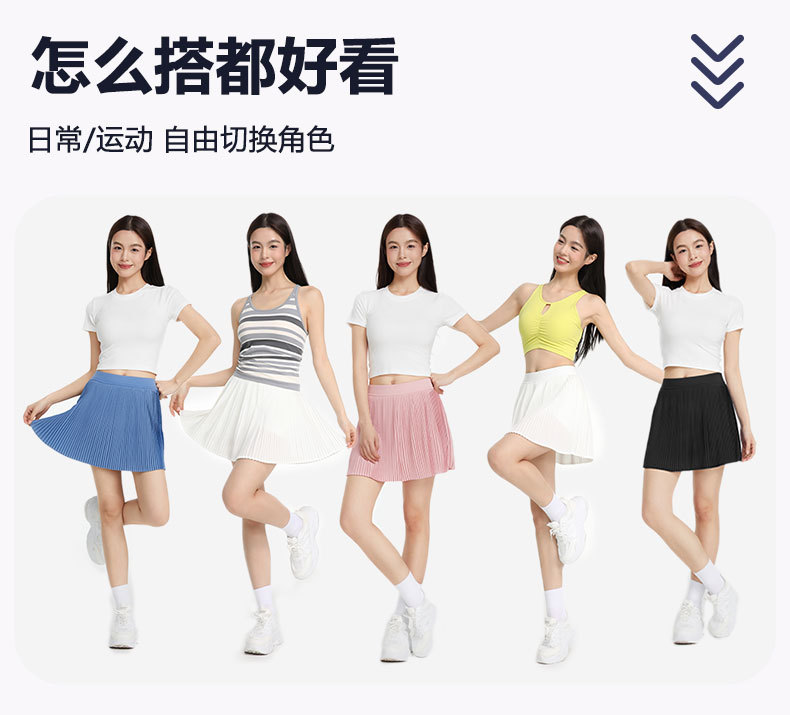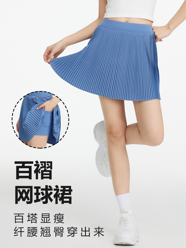 ✅국경 간 새로운 주름 테니스 스커트 여성의 가짜 두 가지 가벼운 스포츠 피트니스 스커트 빠른 건조 배드민턴 골프 쇼트