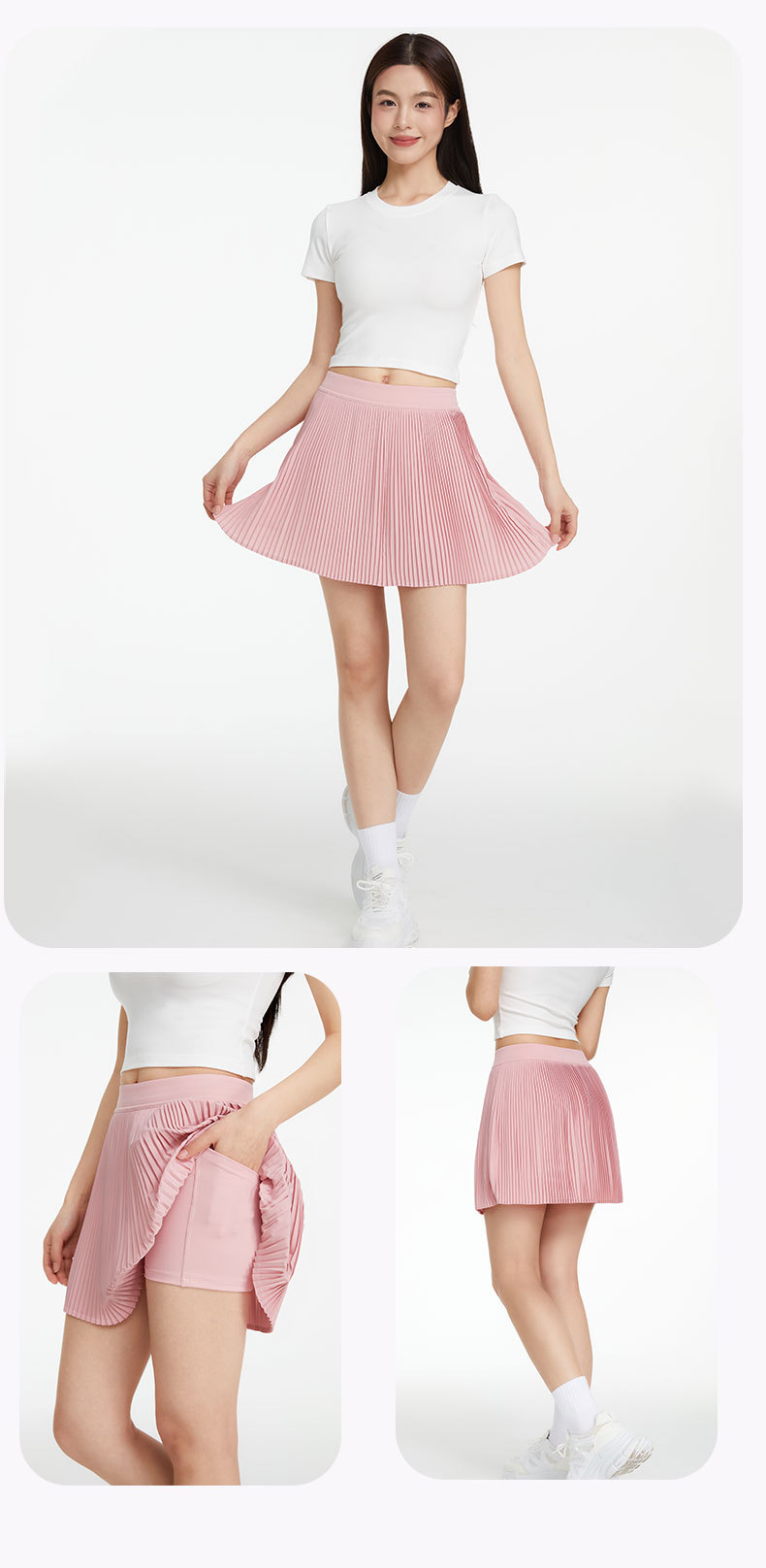 ✅국경 간 새로운 주름 테니스 스커트 여성의 가짜 두 가지 가벼운 스포츠 피트니스 스커트 빠른 건조 배드민턴 골프 쇼트스토어 가기
