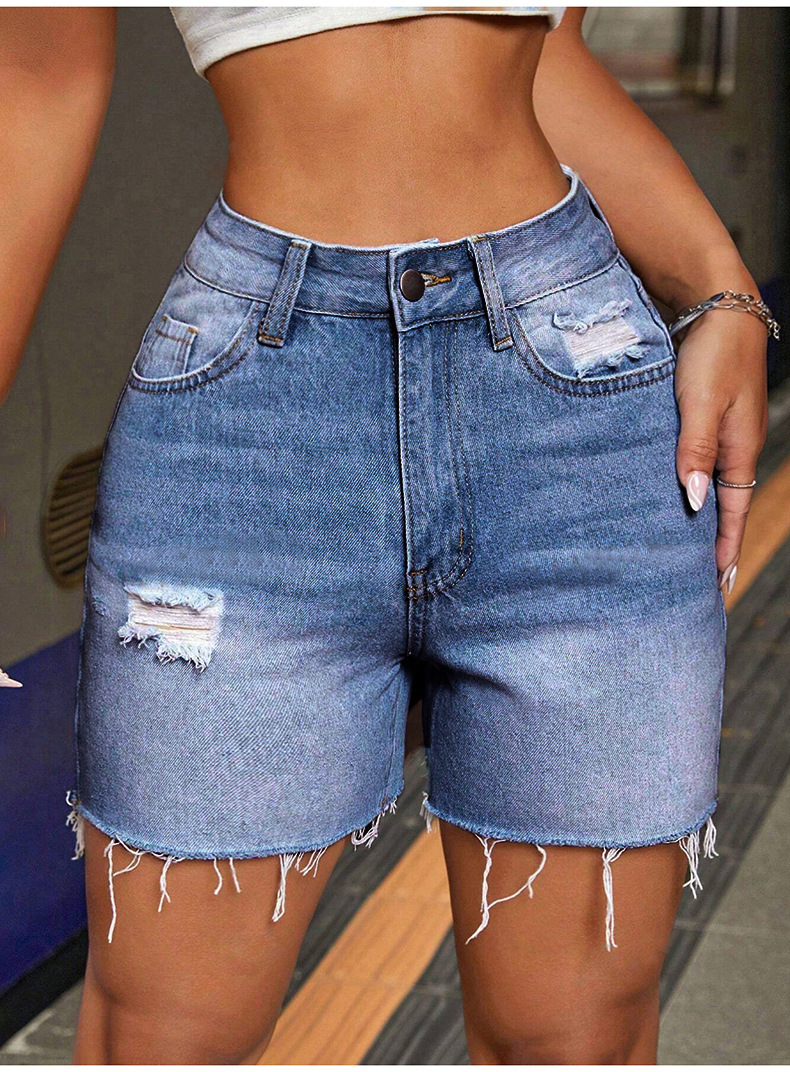 2025 국경 유럽 및 미국 TEMU 여름 거리 높은 탄성 높은 허리 5 점 바지 구멍 데님 반바지 여자 슈퍼 핫스토어 가기
