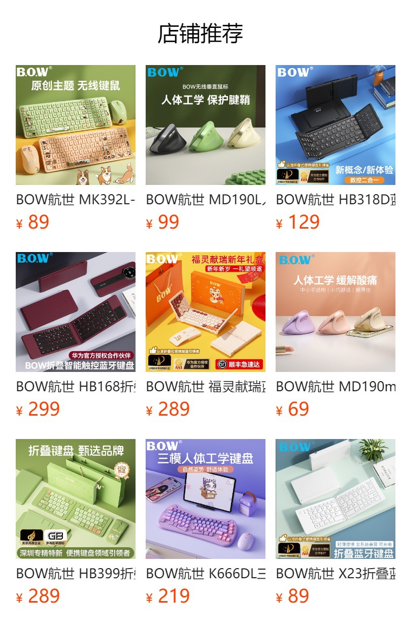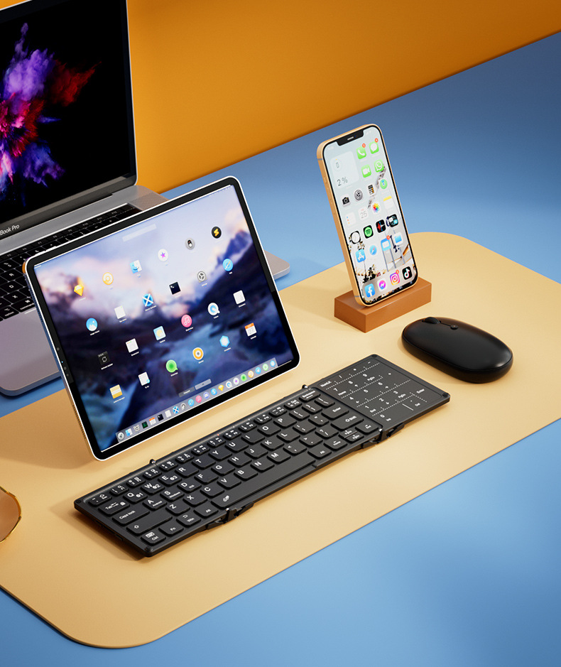 BOW Hangshi HB318D 블루투스 접이식 키보드 마우스 세트 휴대폰 노트북 겸용 선물용 휴대용스토어 가기